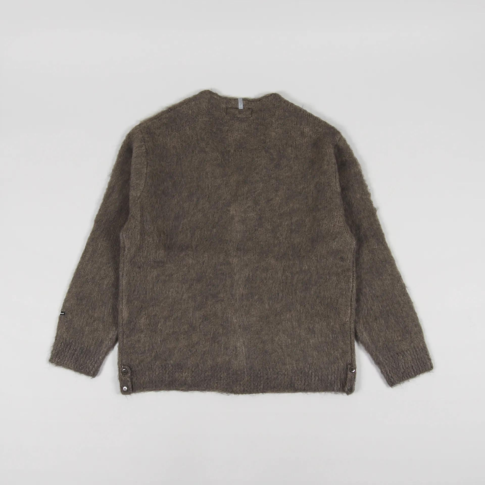A cardigan from American-Japanese outerwear label Manastash, made from a super soft, warm and comfortable blend of 70% acrylic, 12% wool and 18% nylon, with a buttoned front and a ribbed hem and cuffs.