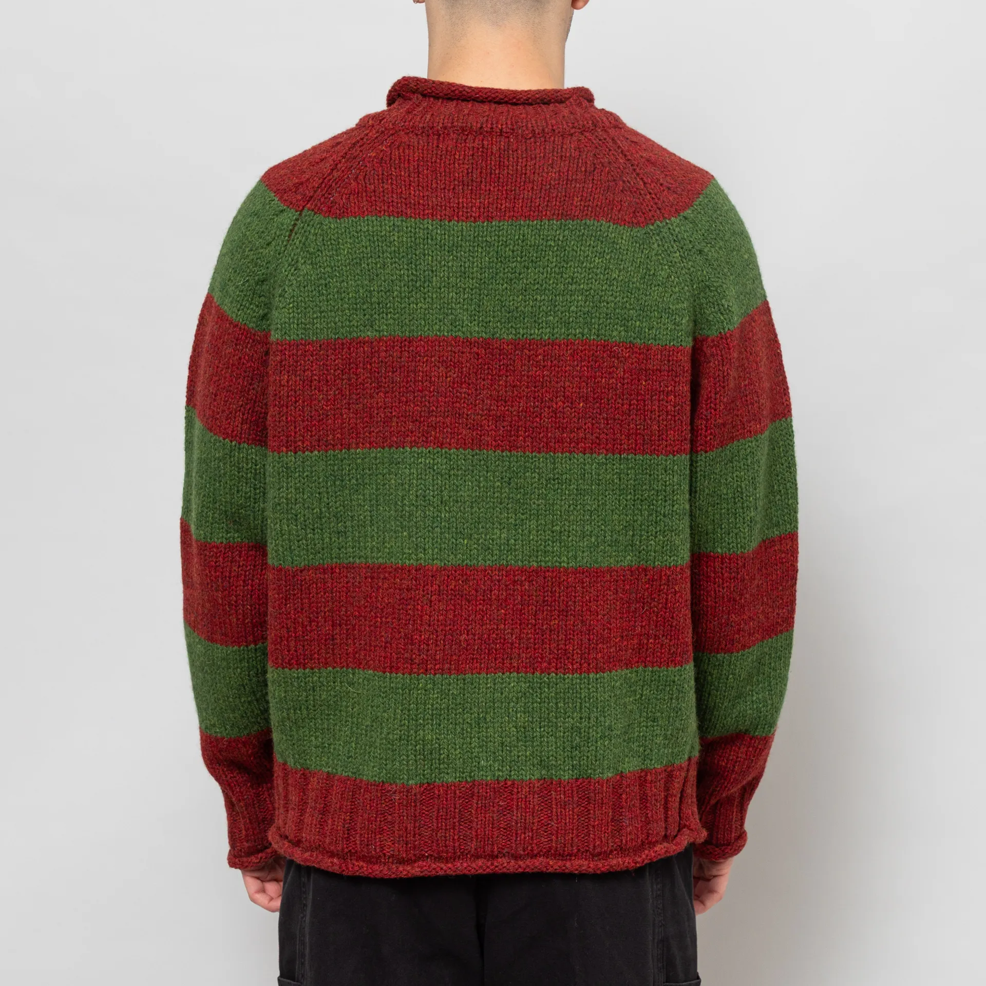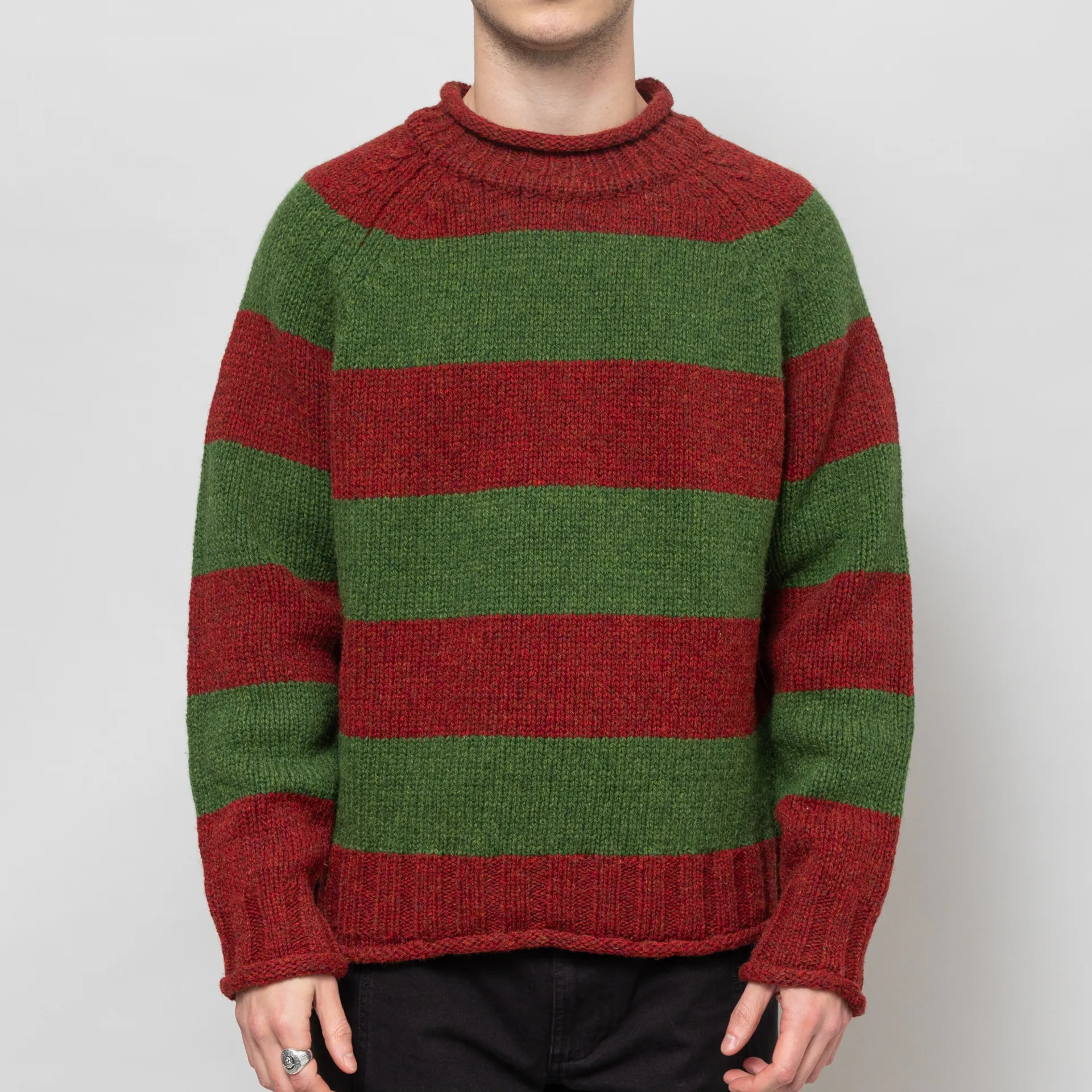 The CJ Hoops Crew is crafted from 100% wool and spun using traditional Donegal yarns, it's naturally breathable and insulating. It's cut in a regular fit for everyday comfort and features an all-over striped design, a roll neck collar, a rolled hem and cuffs, with raglan sleeves for freedom of movement. Finished with a subtle marled appearance throughout.