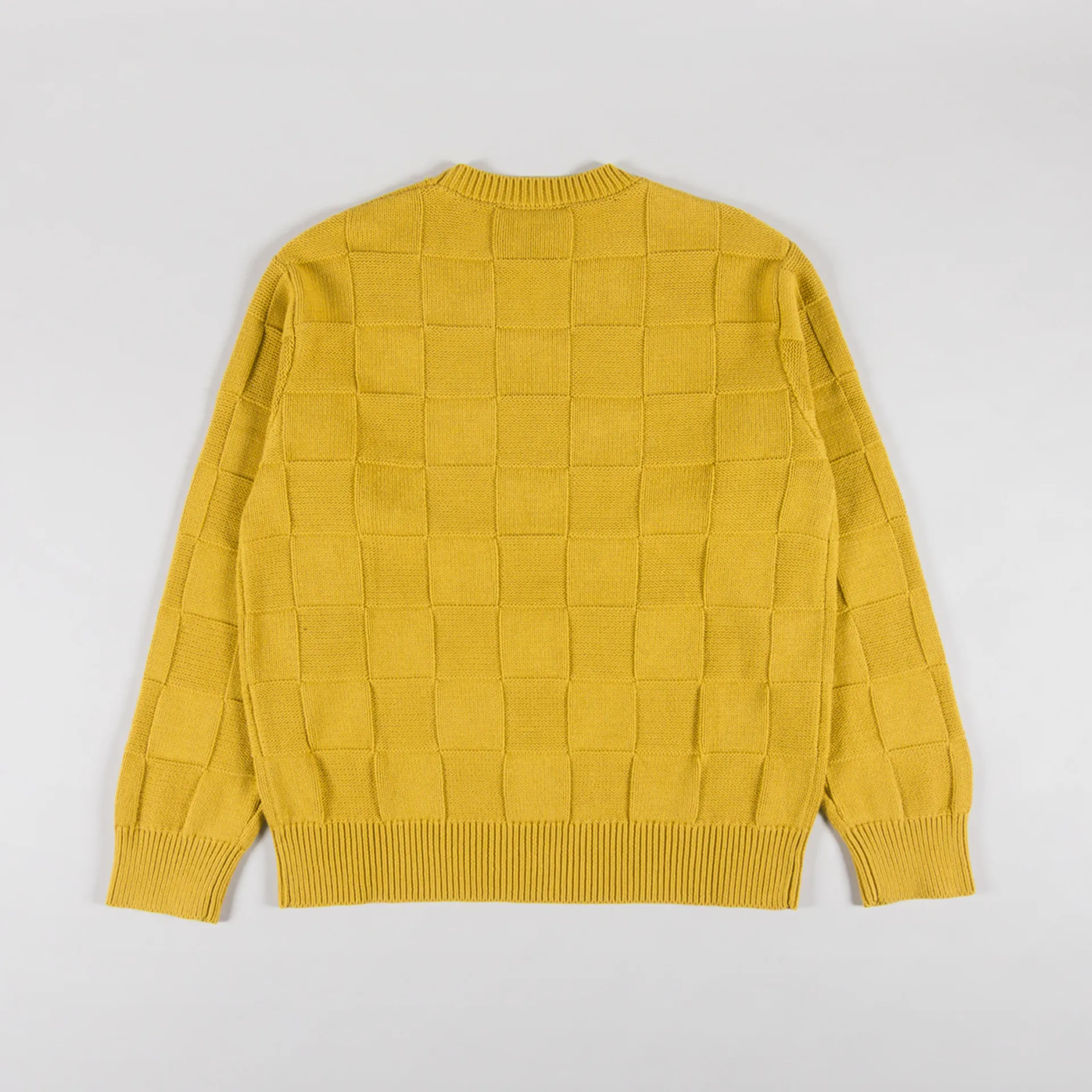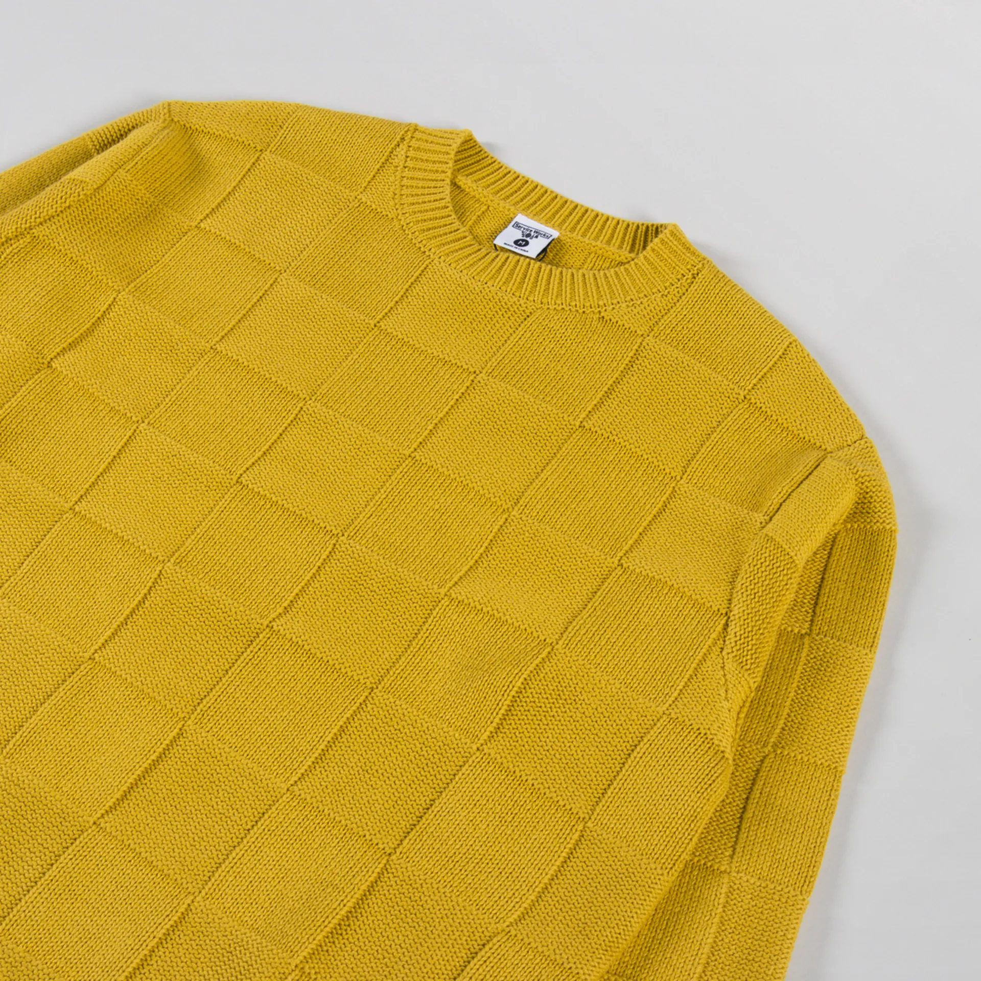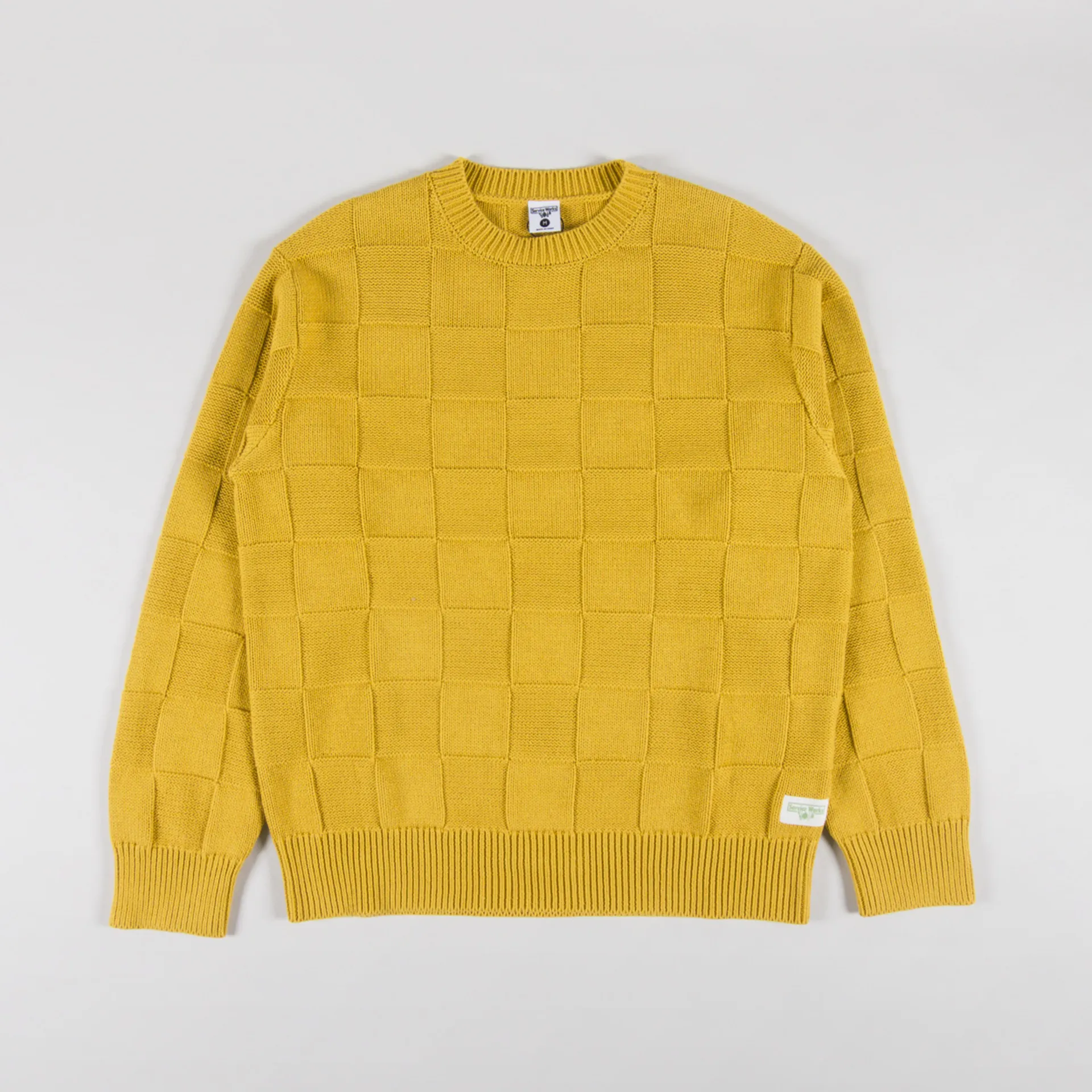 A check knitted sweater from Service Works, constructed from 5GG heavyweight cotton and cut in a regular fit for everyday comfort. It features a ribbed crewneck, hem and cuffs with a woven Service Works patch.