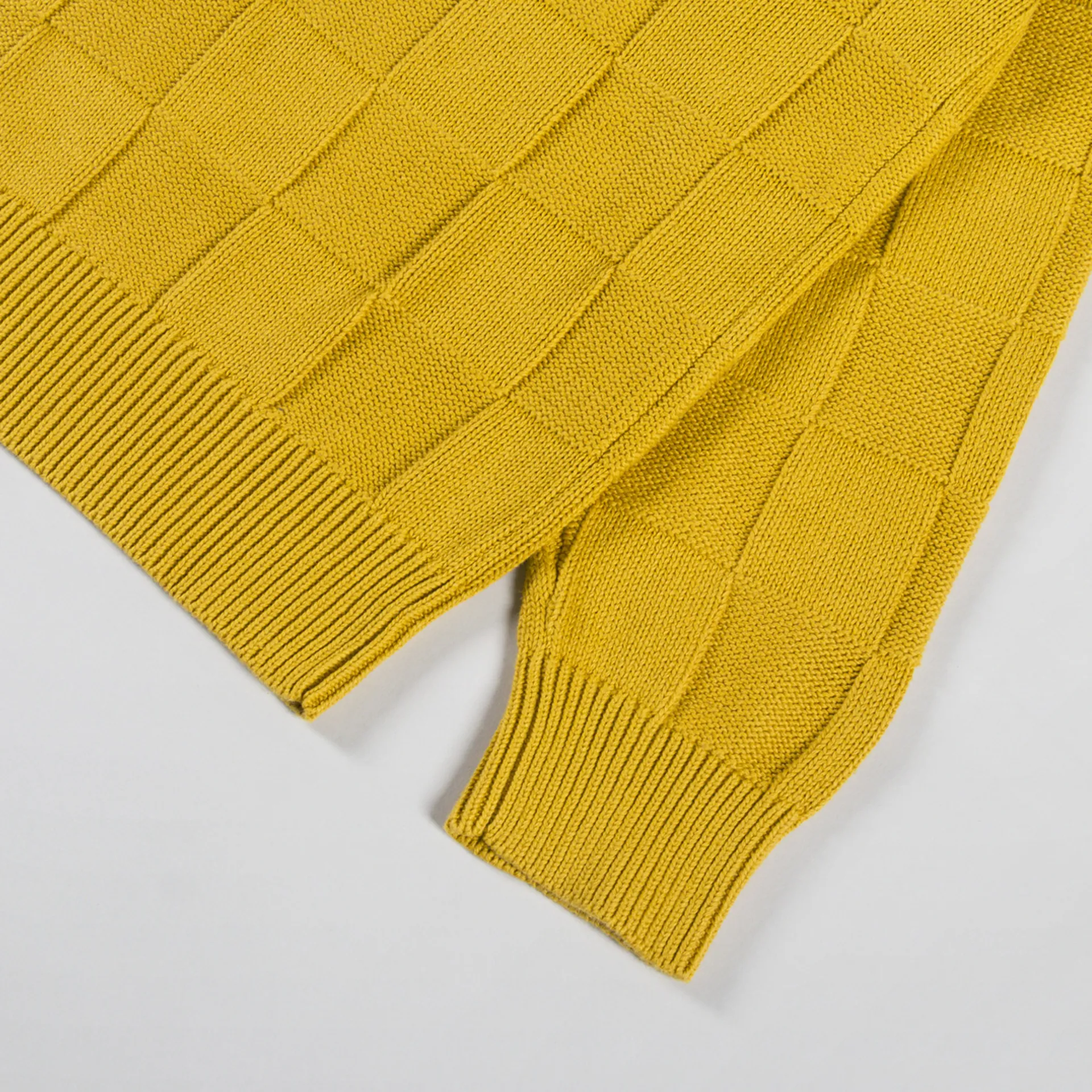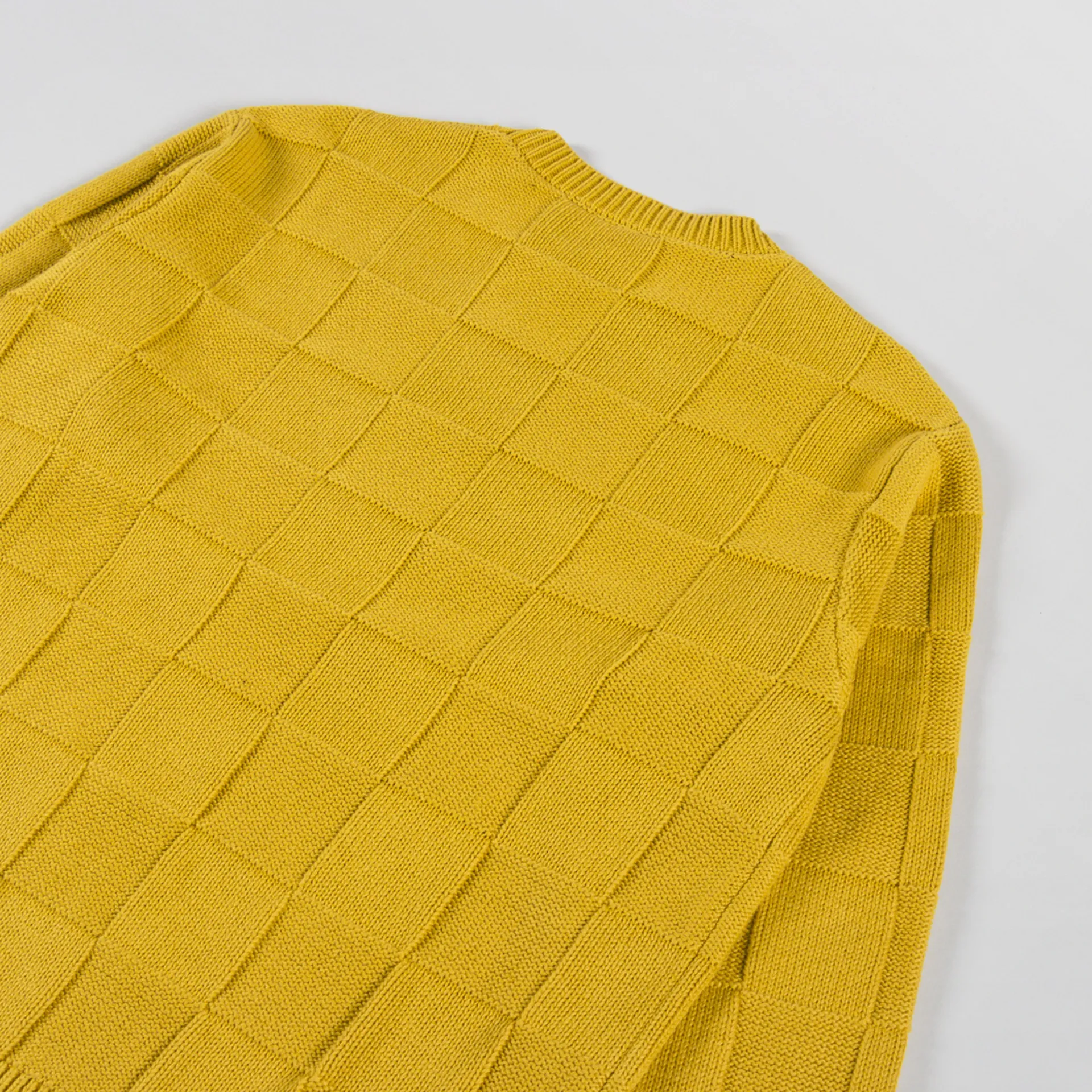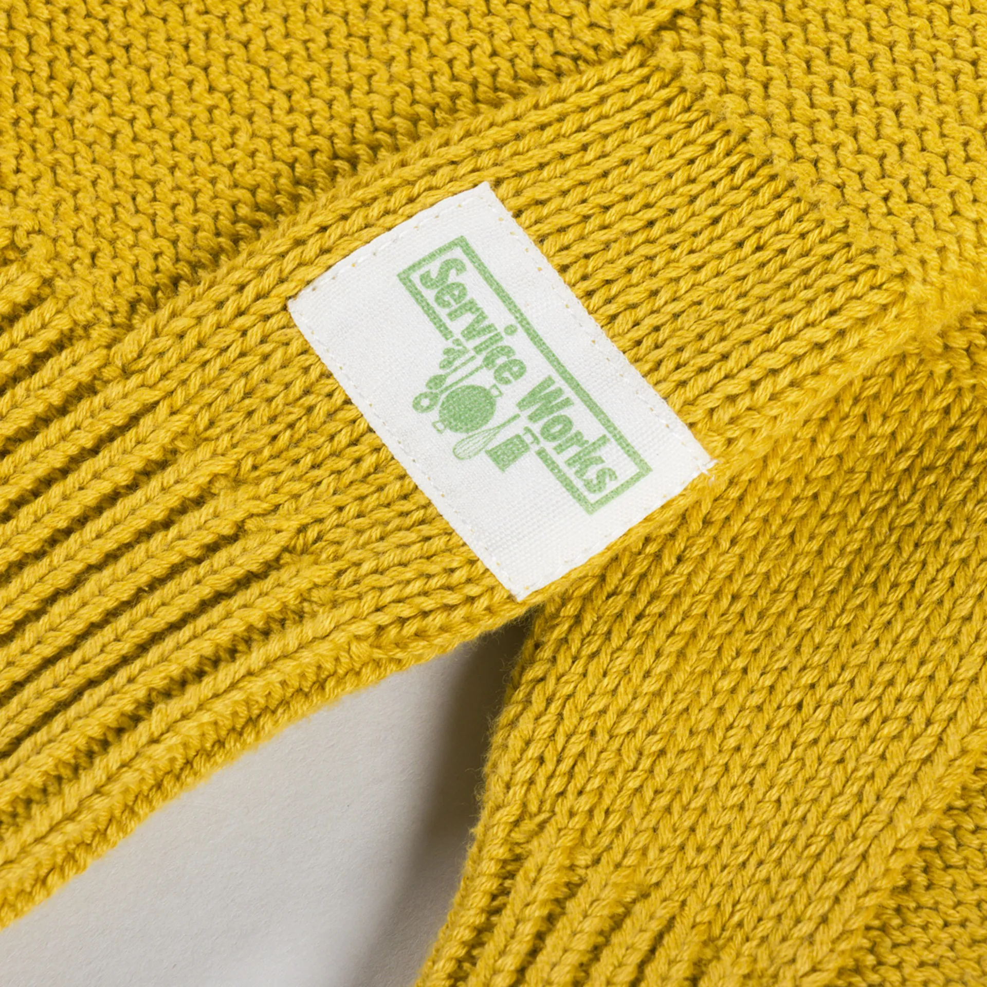 A check knitted sweater from Service Works, constructed from 5GG heavyweight cotton and cut in a regular fit for everyday comfort. It features a ribbed crewneck, hem and cuffs with a woven Service Works patch.