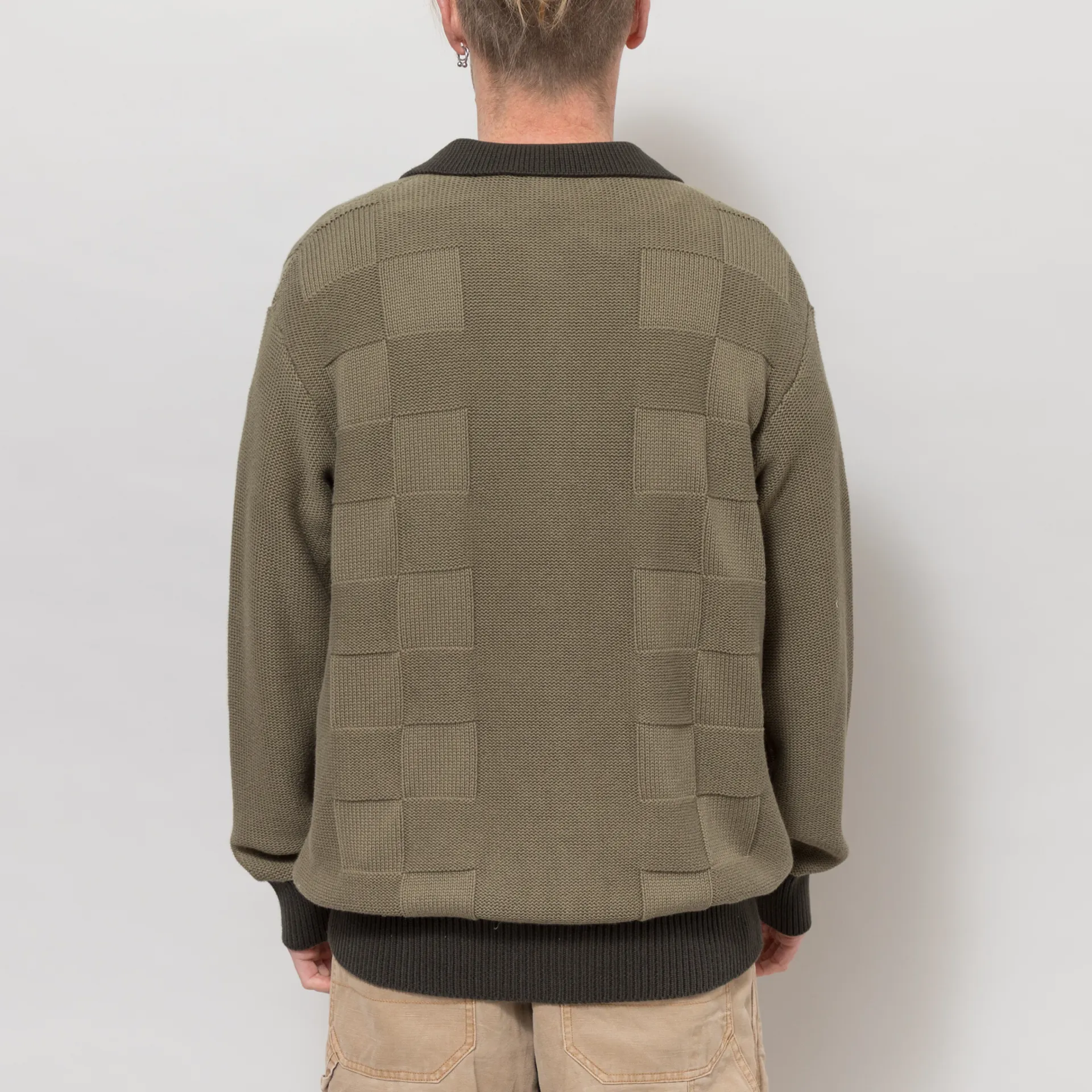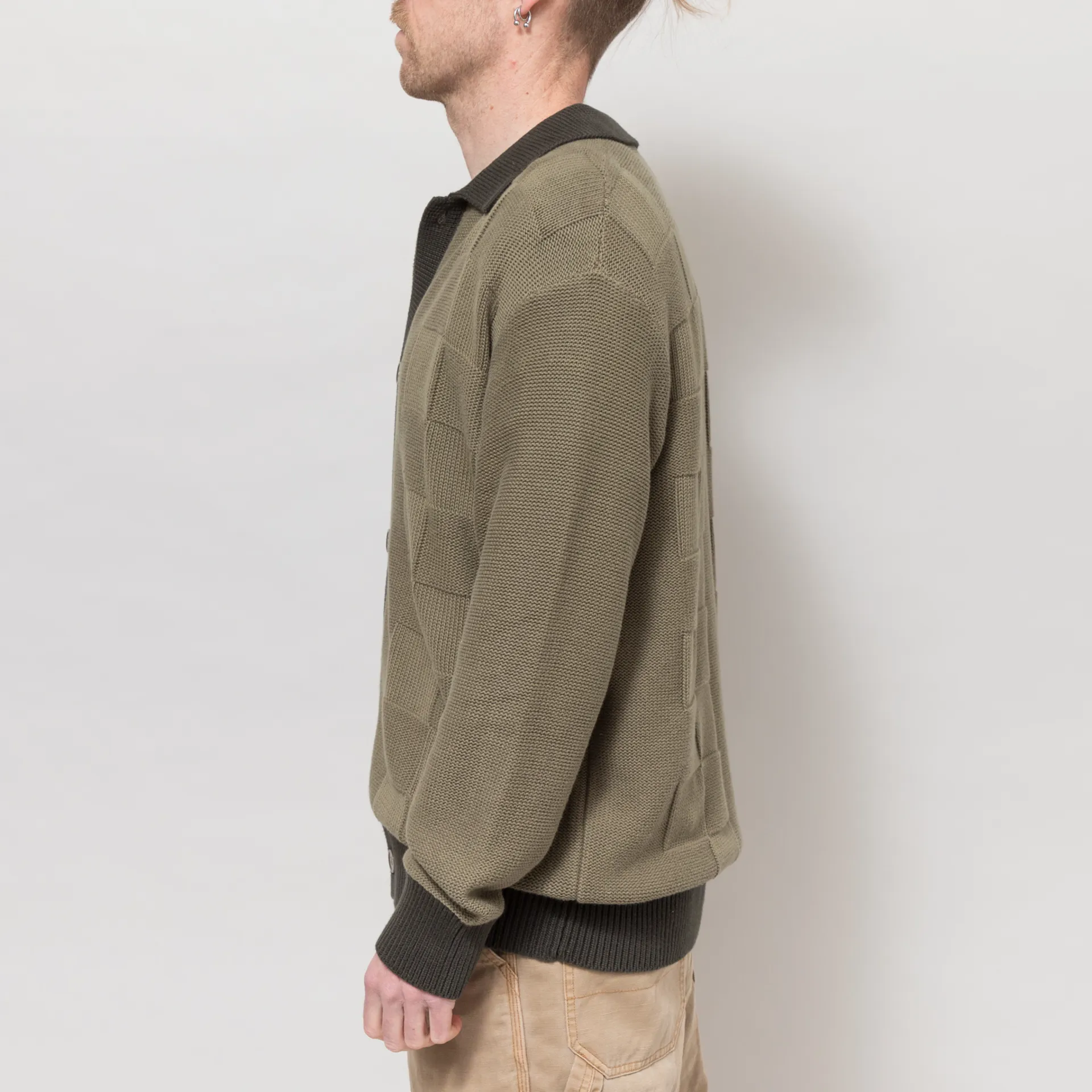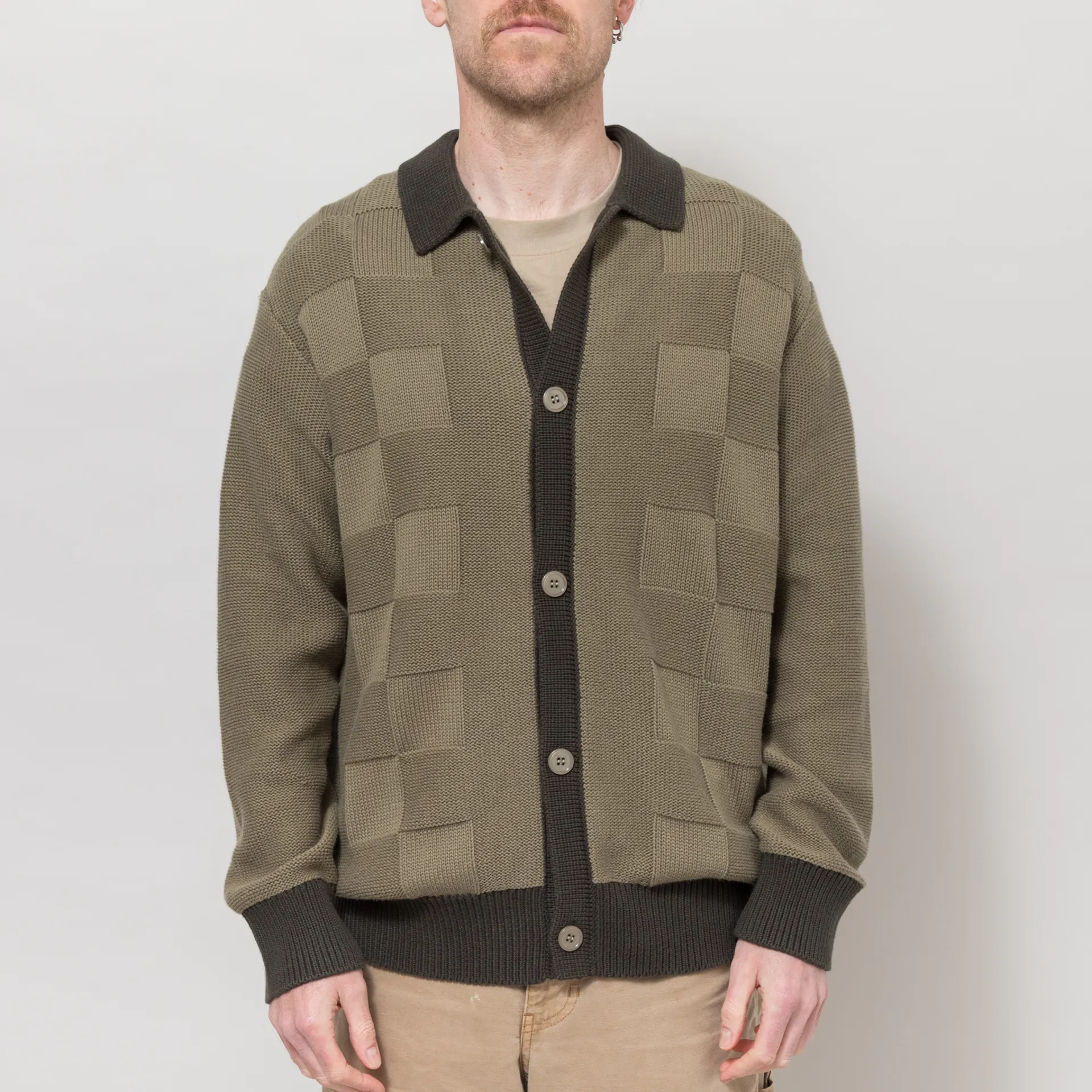 A knitted cardigan from Service Works, cut in a regular fit for everyday comfort and constructed from durable, loose-gauge knitted cotton. It features a full button-through front, leading to a classic collar, with ribbing details at the hem and cuffs. Finished off with a subtle checkered design throughout, and contrasting colours at the trims.