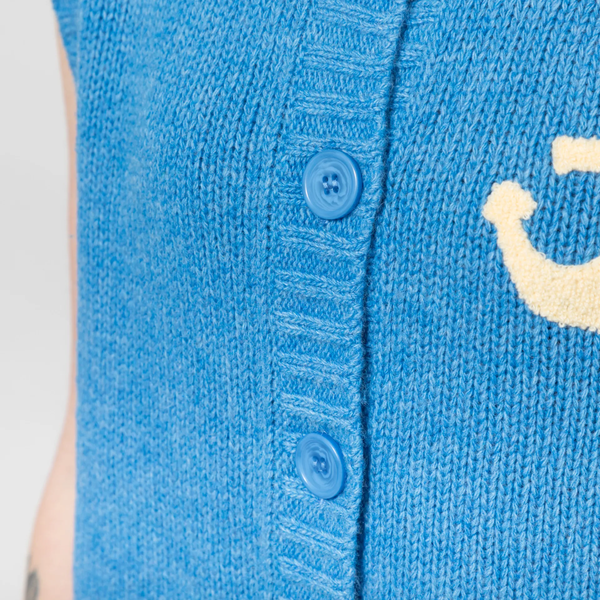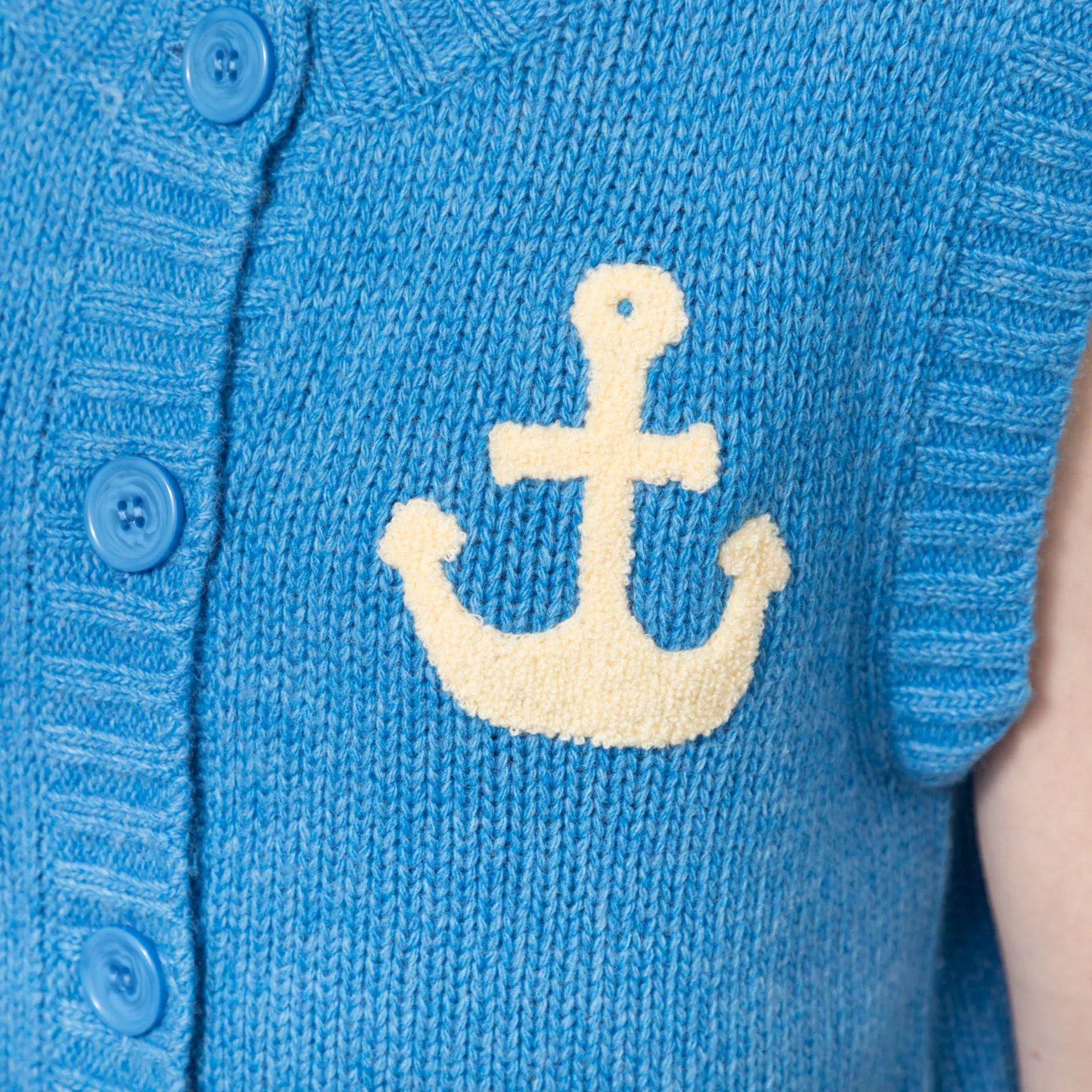 A knitted vest from Stella Nova, cut in a relaxed fit for a casual look and constructed from a soft wool/polyamide blend. It has a five-button placket, leading to a ribbed neckline, finished with a small embroidered anchor at the chest.