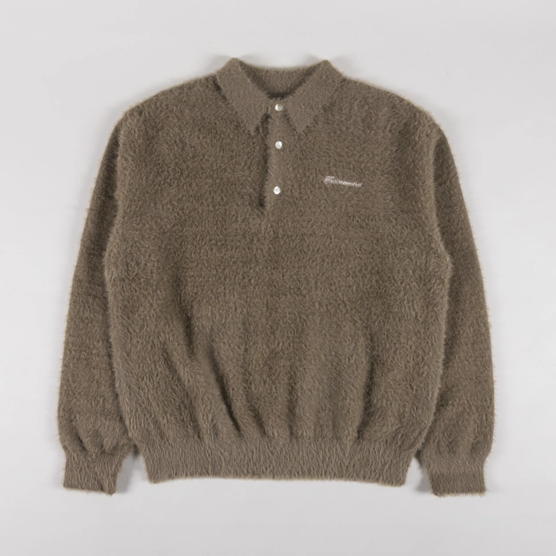 thisisneverthat Script Shaggy Knit Polo Mud