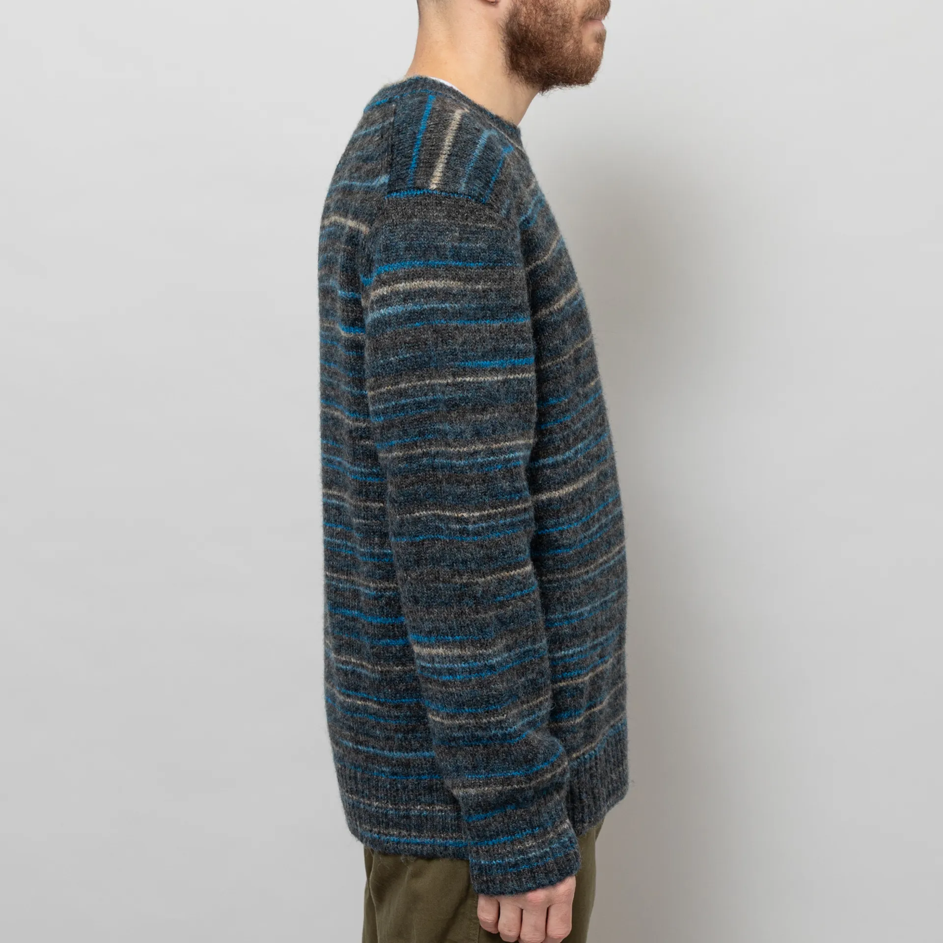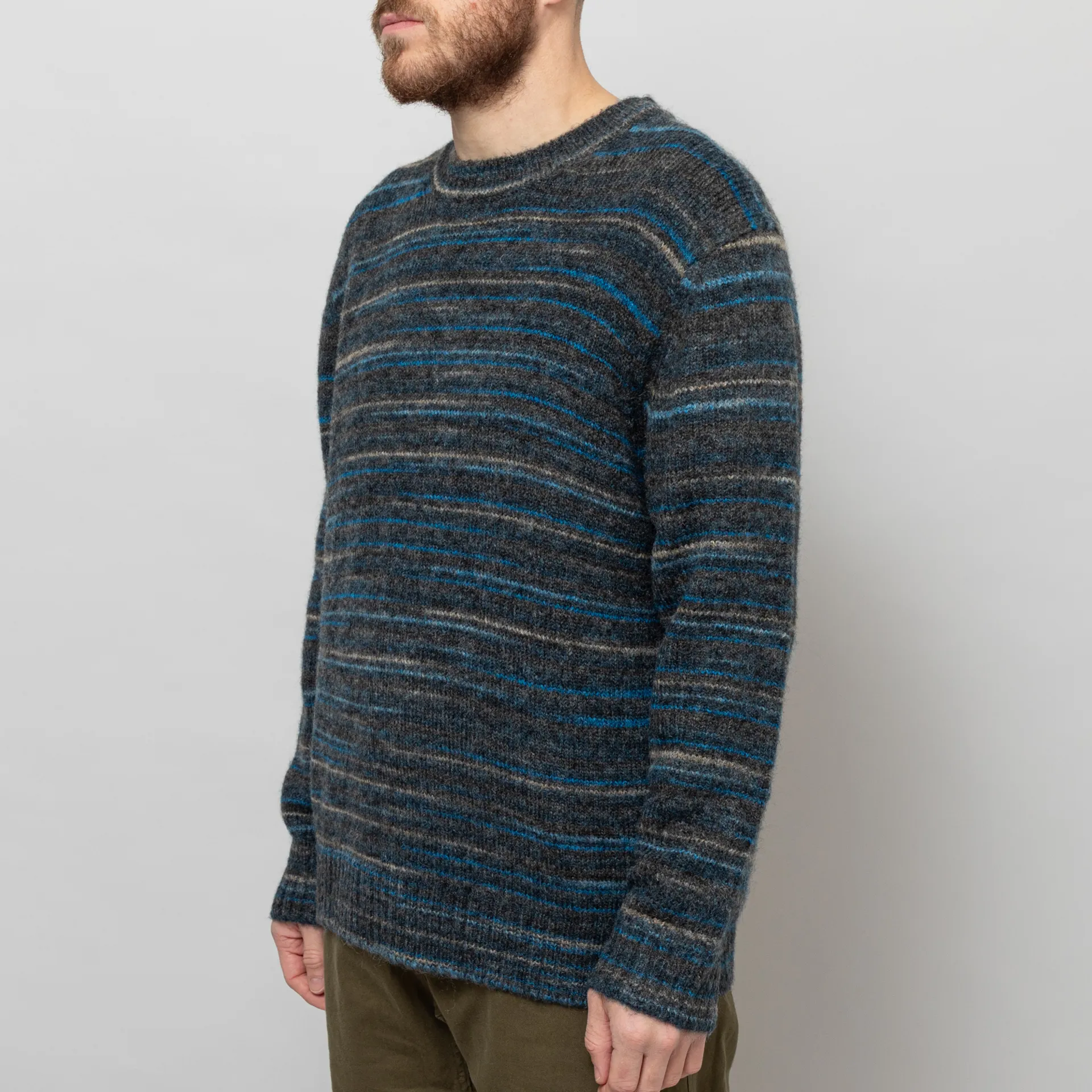Wax London Wilde Crewneck Grey Teal Space Dye Wool