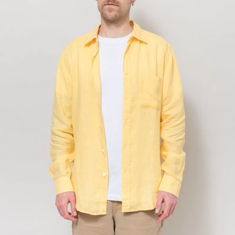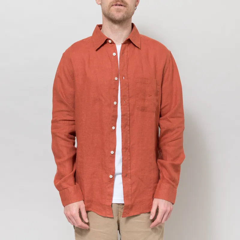 Portuguese Flannel Linen Camp Collar Shirt Terracotta