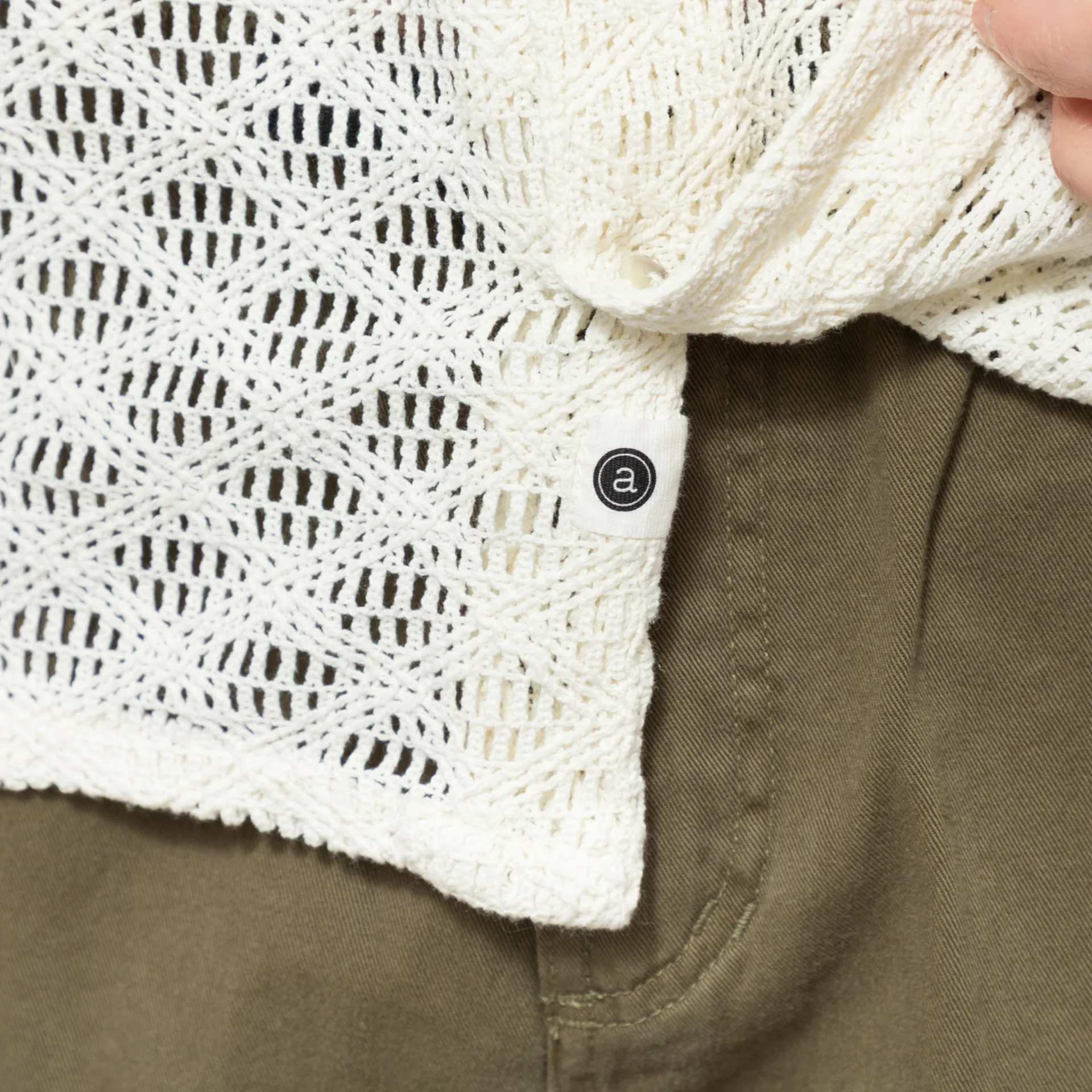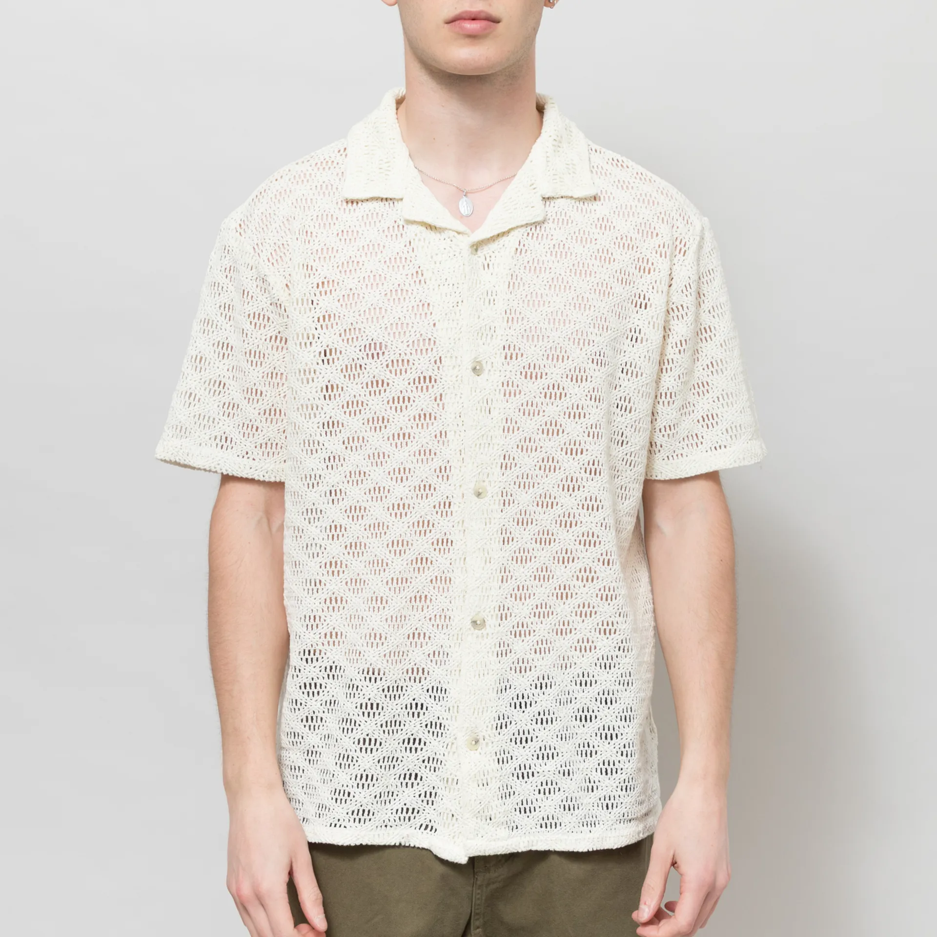 The Akleander AO Lace Shirt from Anerkjendt is cut in a regular fit for everyday comfort, constructed from lace-woven cotton fabric. It features a full button-through front, leading to a classic camp collar, with a straight hem and a hidden woven logo at the placket to finish.