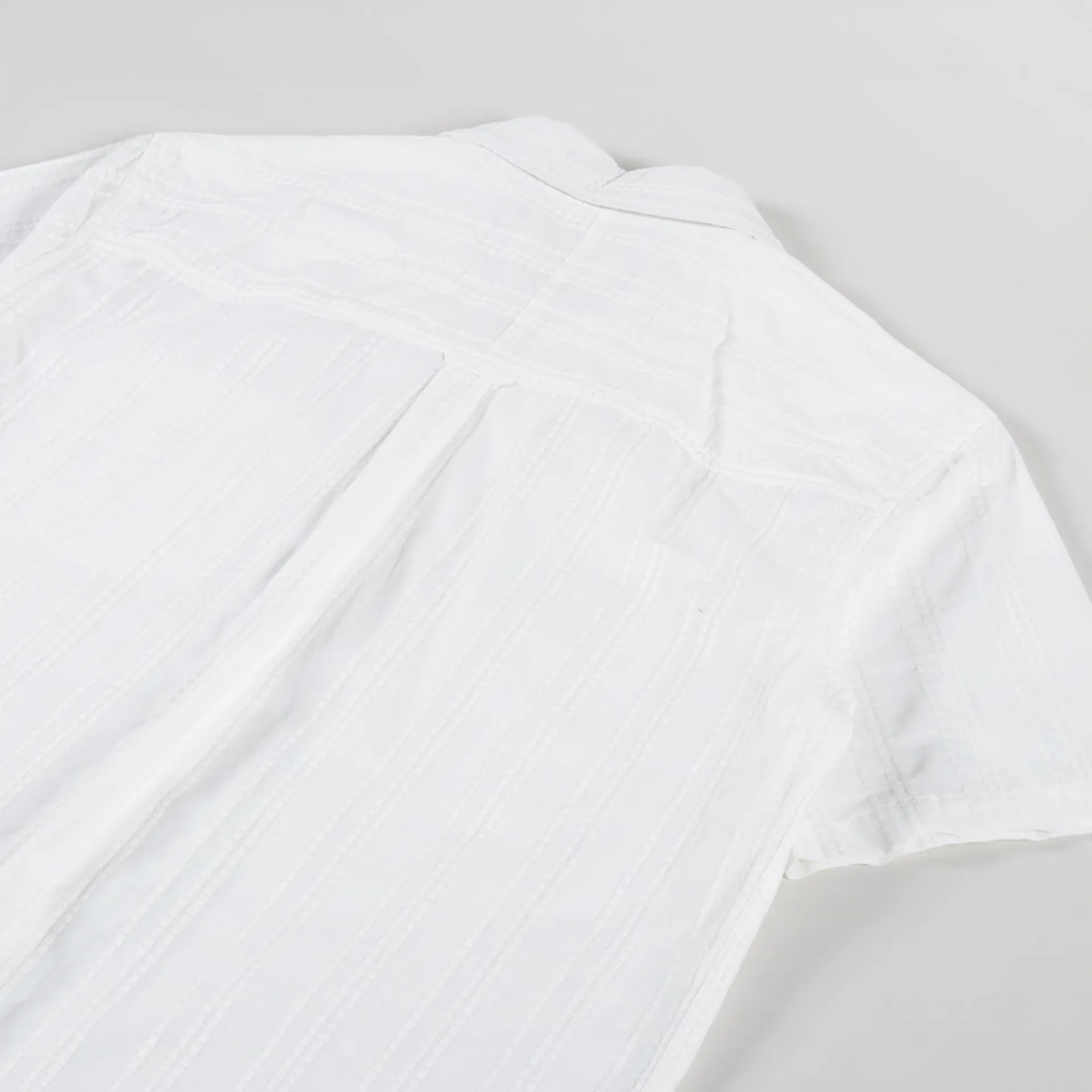 The Embroidered Shirt from Anerkjendt is cut in a regular fit for everyday comfort, constructed from lightweight 100% cotton with tonal embroidered stripes throughout. It features a button-through front, leading to a classic camp collar, with a straight hem, single chest pocket, a box pleat to the rear and finished with a small woven logo hidden in the placket.