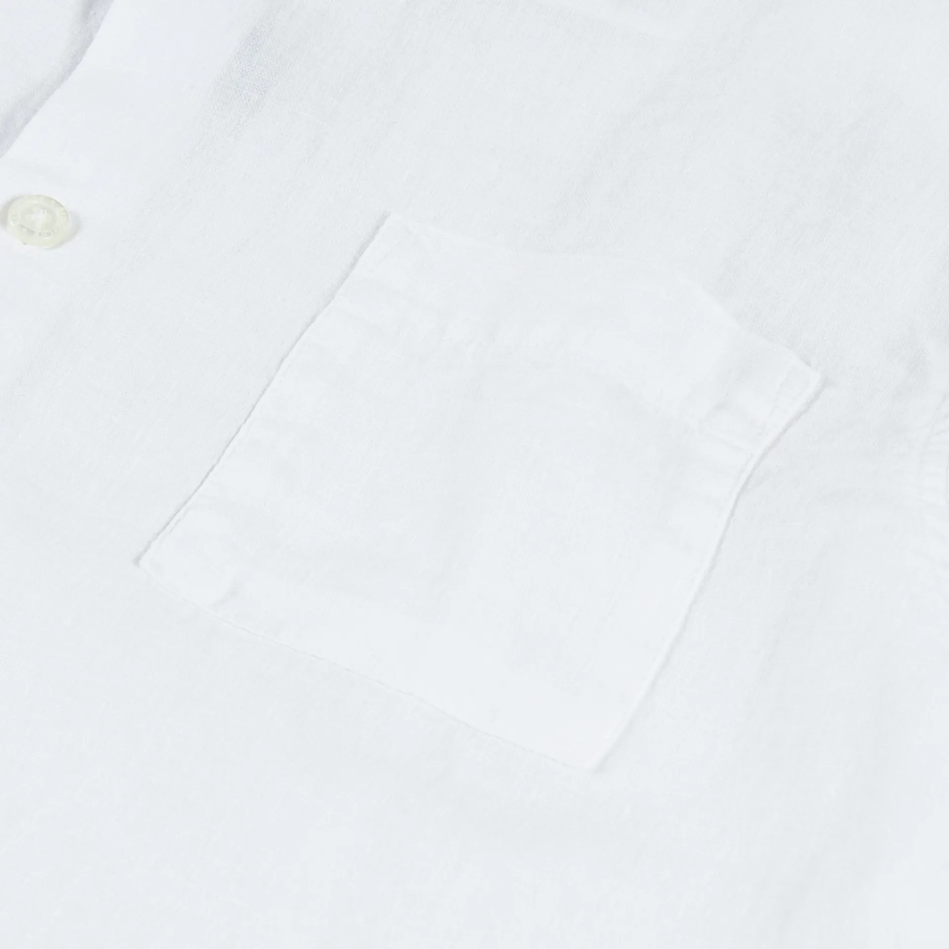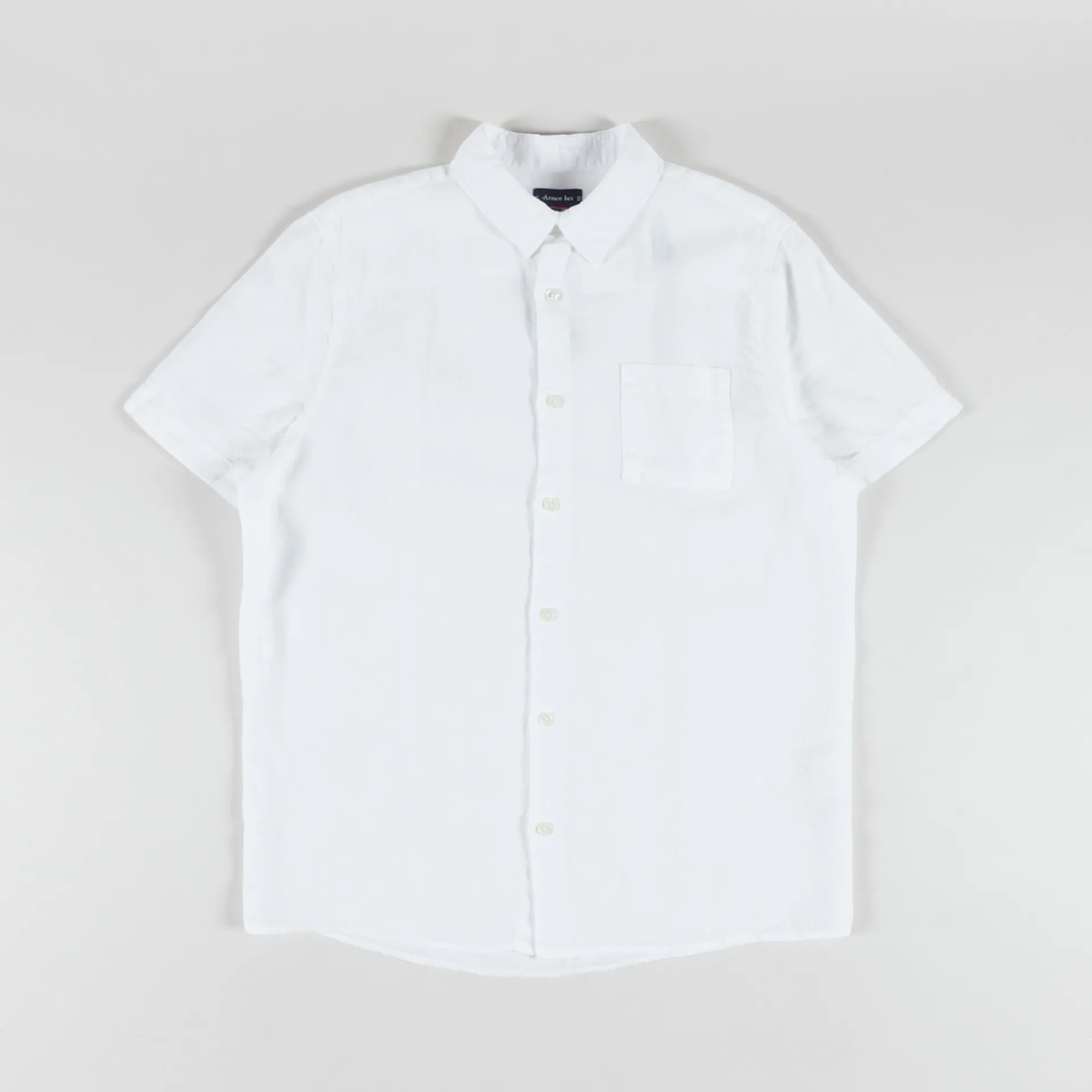A short-sleeve shirt from Armor Lux, cut in a relaxed fit for a casual silhouette and constructed from lightweight linen. It features a full button-through front, leading to a simple collar, with a slightly curved hem and a single pocket to the chest.
