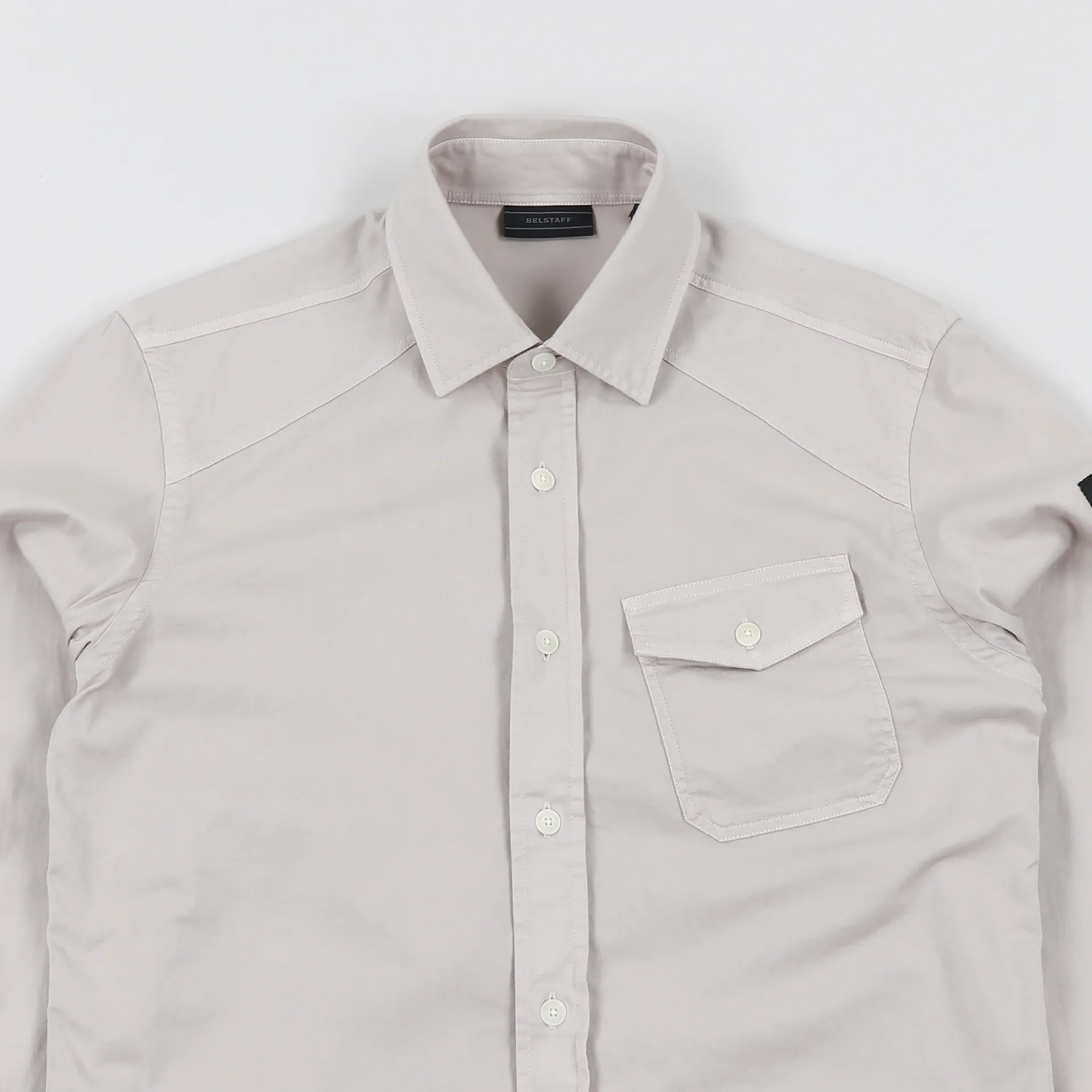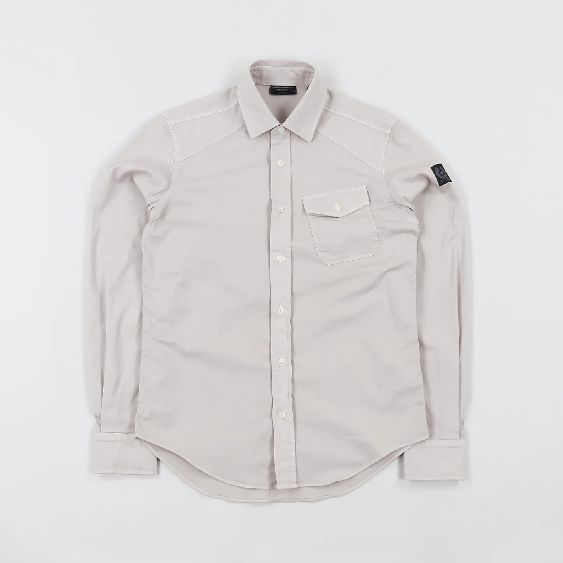 A long sleeve shirt from Belstaff made from 98% cotton with 2% elastane for a comfortable and flexible fit, featuring a woven logo patch to the shoulder.