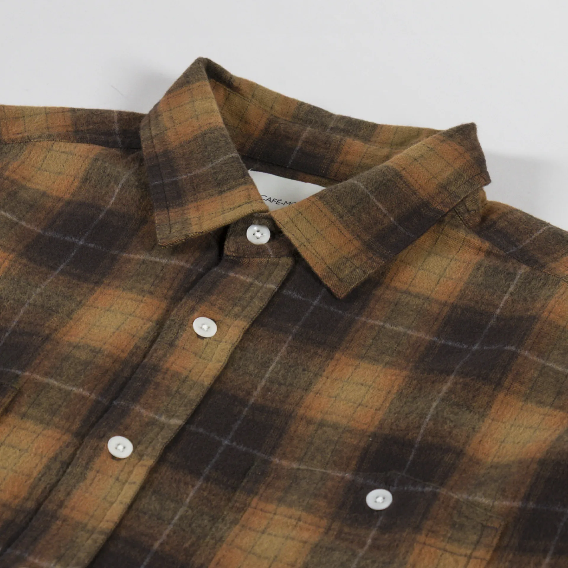 A long sleeve checkered shirt from Cafe Mountain, constructed from soft brushed Japanese cotton
