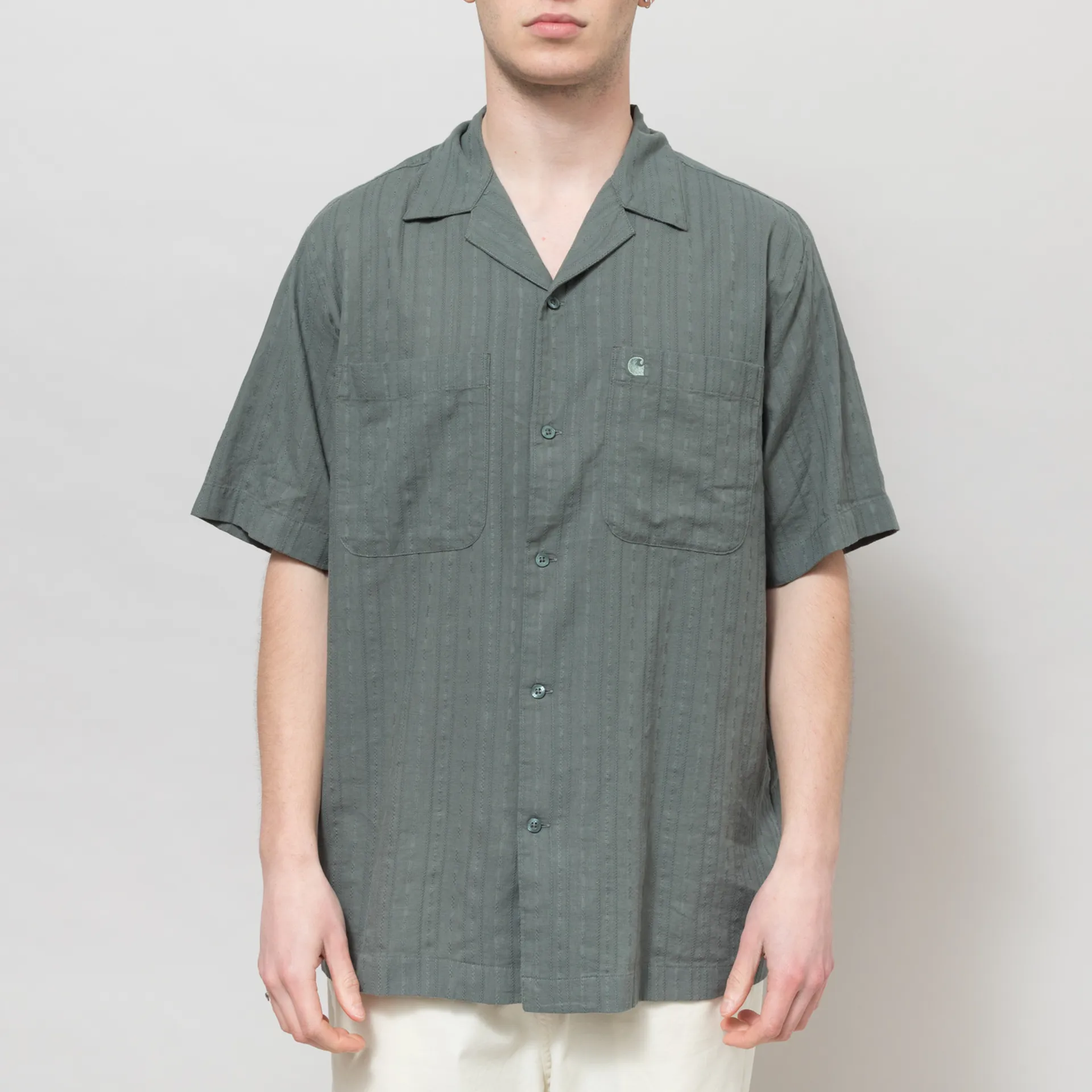A lightweight shirt from Carhartt WIP, cut in a loose fit for a laidback silhouette and constructed from textured cotton fabric, garment-washed for a soft hand feel and subtle worn-in look. Featuring a full button-through front, leading to a classic spread collar, with a straight hem and two chest pockets, one with a tonal embroidered C logo.