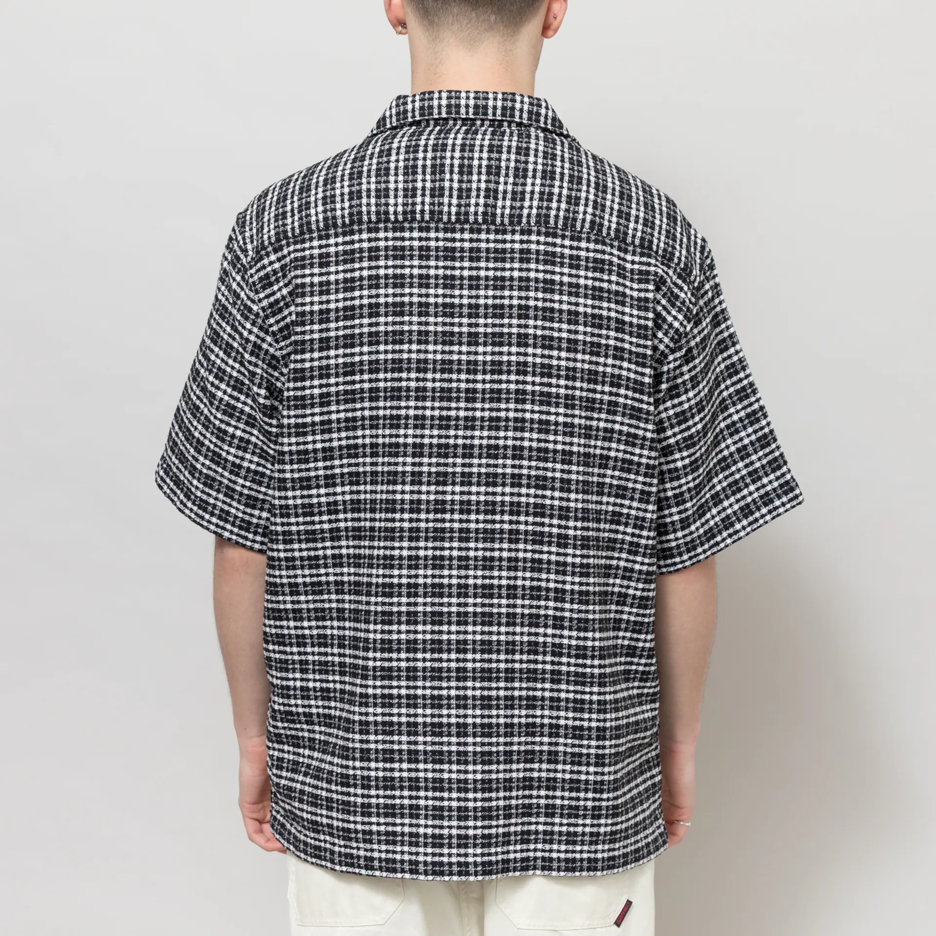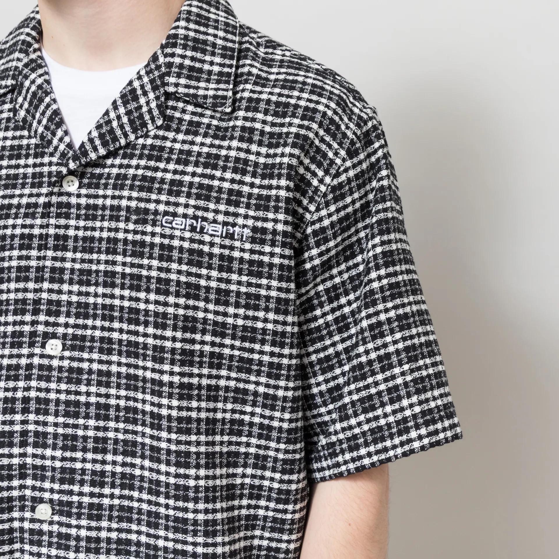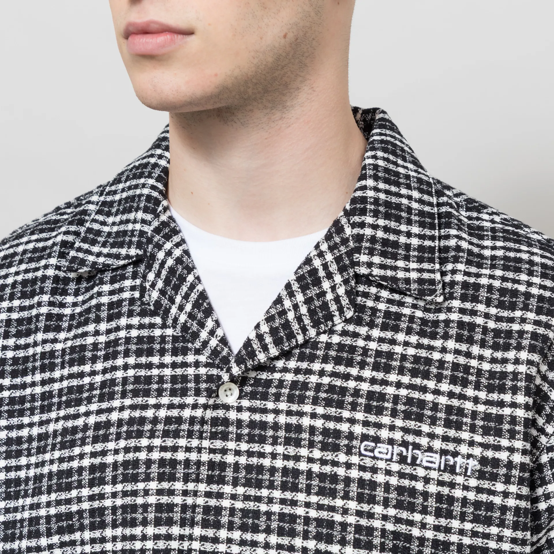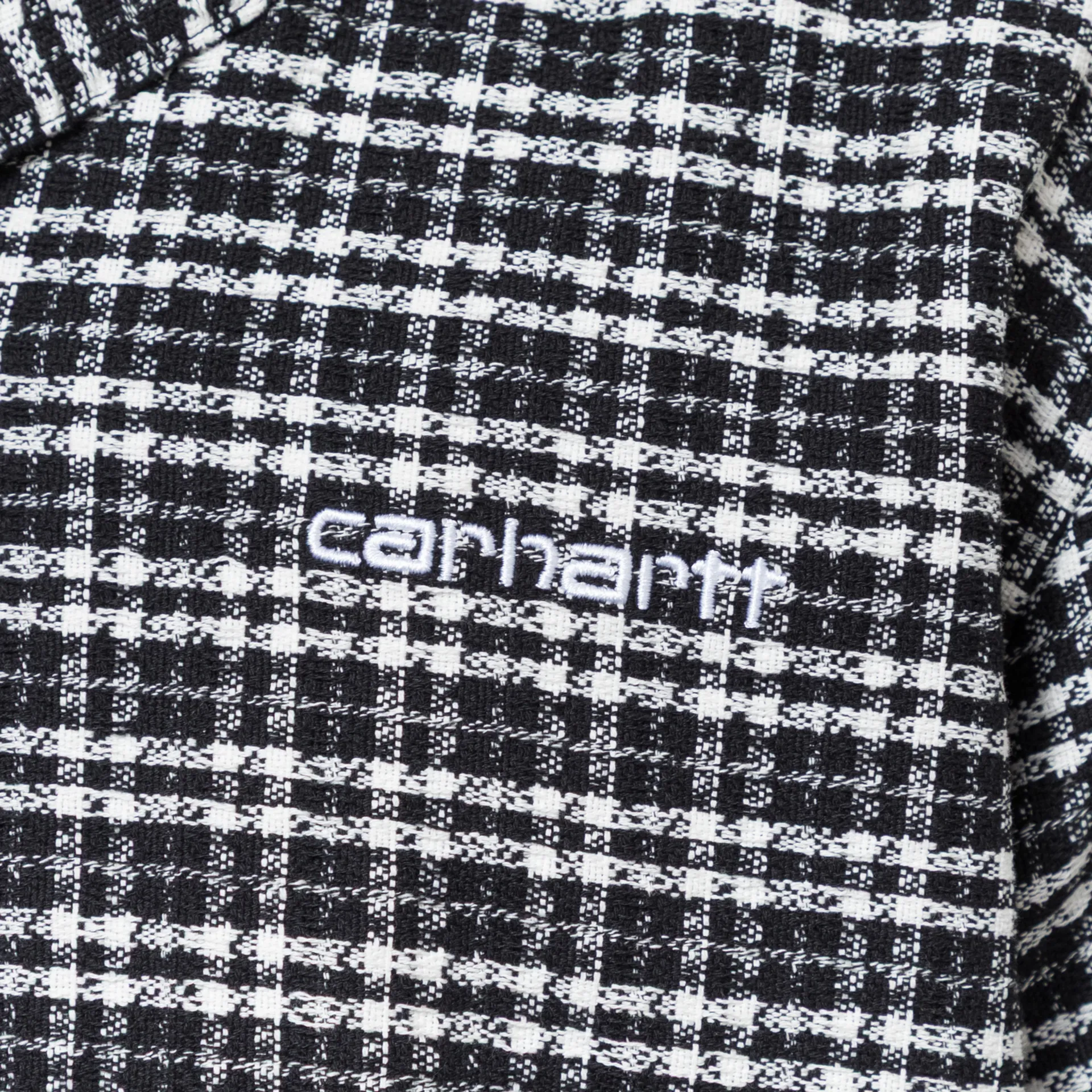 A checkered shirt from Carhartt WIP, cut in a loose fit from midweight textured cotton waffle fabric, garment-washed for a softer hand feel. It features a full button-through front, leading to a classic lapel collar, with a straight hem and a tonal embroidered Script logo at the chest.