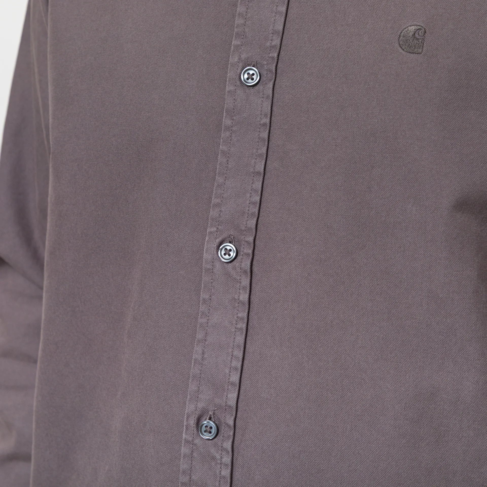 A long sleeve shirt from Carhartt WIP made from a super comfortable and classic 100% cotton in an Oxford weave. It has a buttoned front, cuffs and collar, and an embroidered logo to the chest. It also features a soft garment dye for a soft colour.
