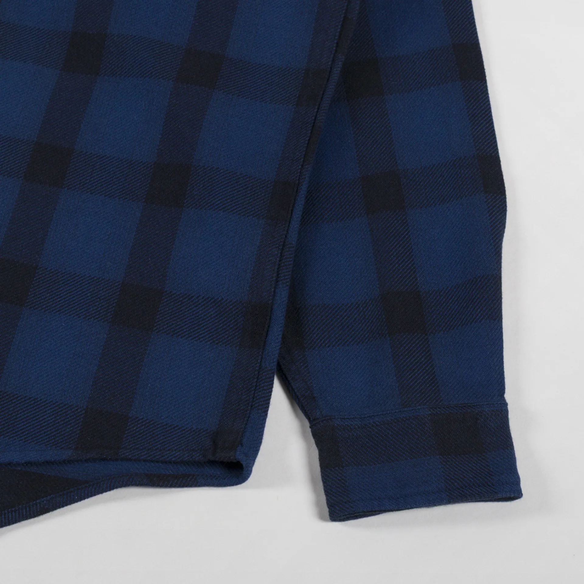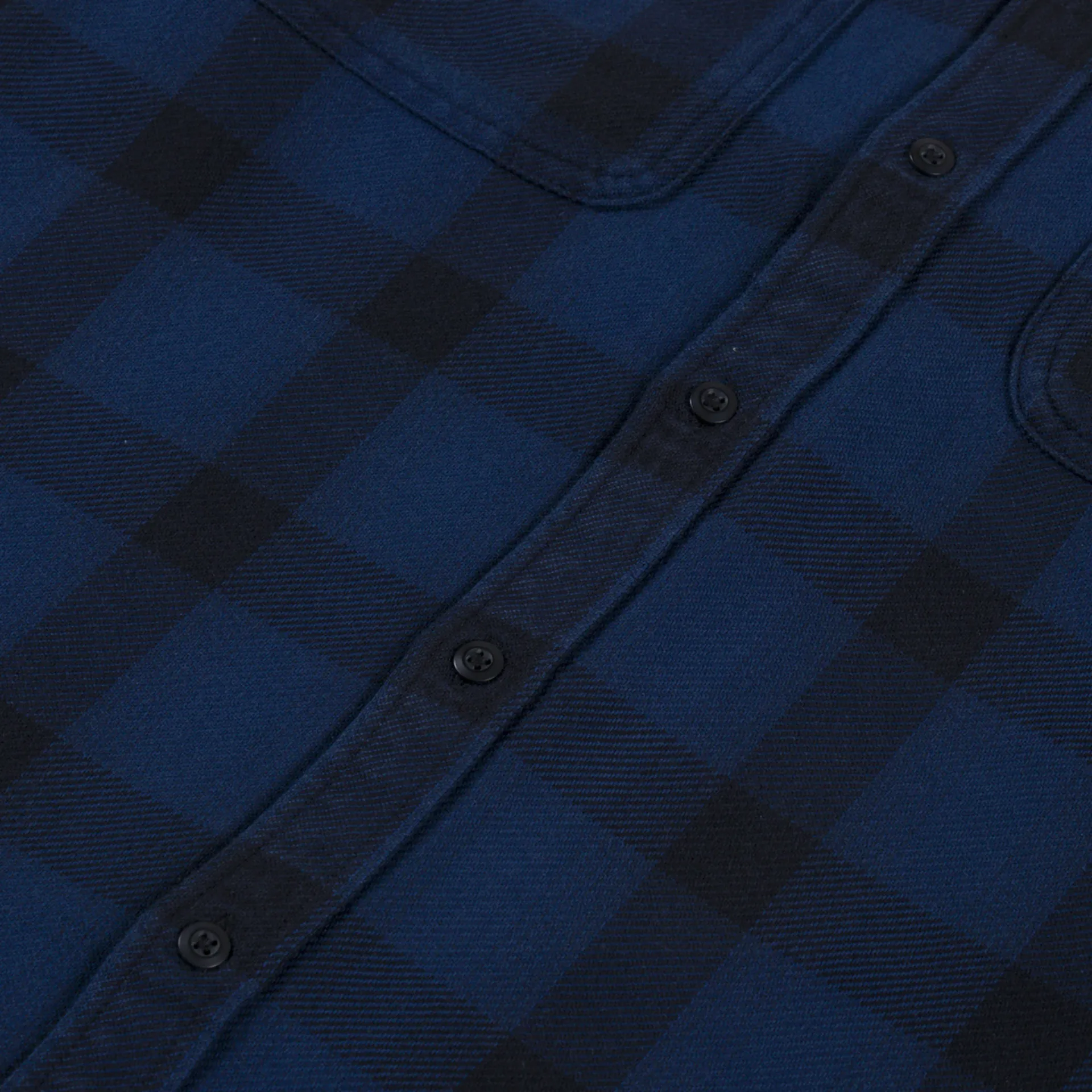 A checkered long-sleeve from Carhartt WIP, cut in a loose fit for a laidback silhouette and constructed from midweight, overdyed cotton twill. It features a full button-through front, leading to a classic button-down collar, with a scalloped hem and buttoned cuffs to adjust. It has a back box pleat and a locker loop for added structure and versatility, then is finished with two large patch pockets at the chest, one with the woven Square Label.