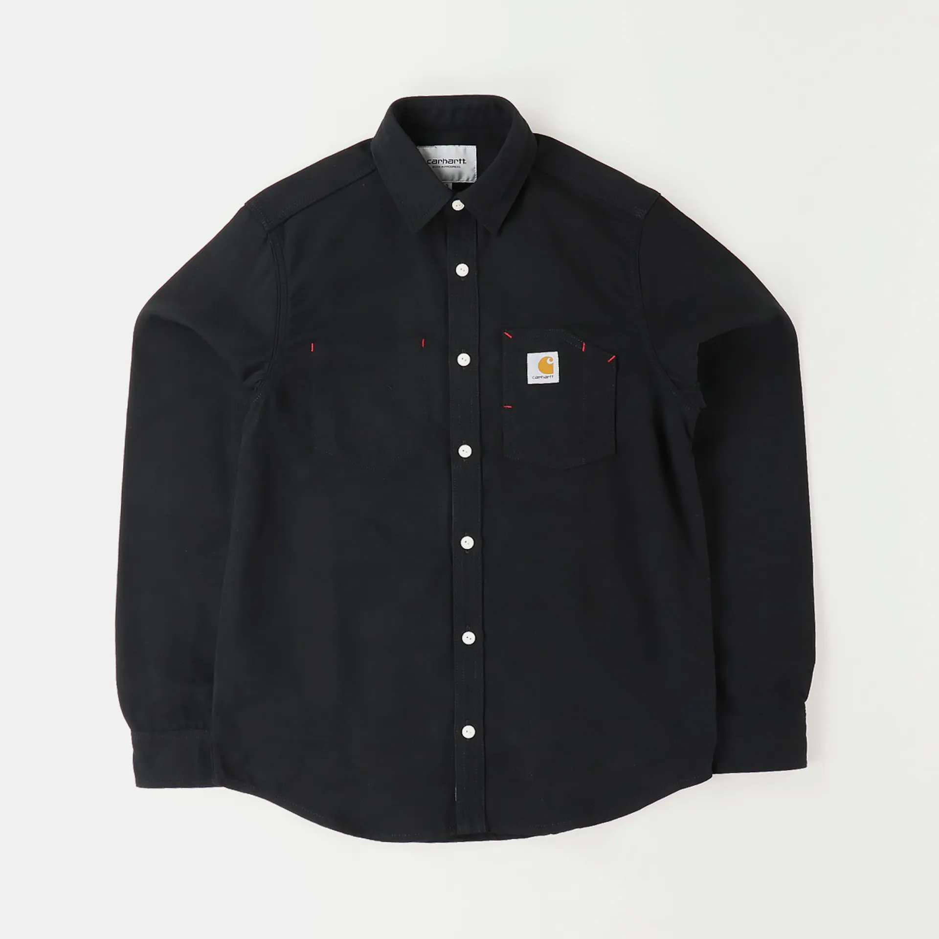 Easily one of the heavyiest shirts we've had in, this thing feels like it might be bulletproof, it isn't so don't try but regardless this will take anything you throw at it. It's made from a Carhartt duck canvas of 100% cotton which is comfortable and durable. The left chest pocket is external and the right is internal for your wallet and keys. It has a button-up front and cuffs and to the chest it has a woven Carhartt patch.