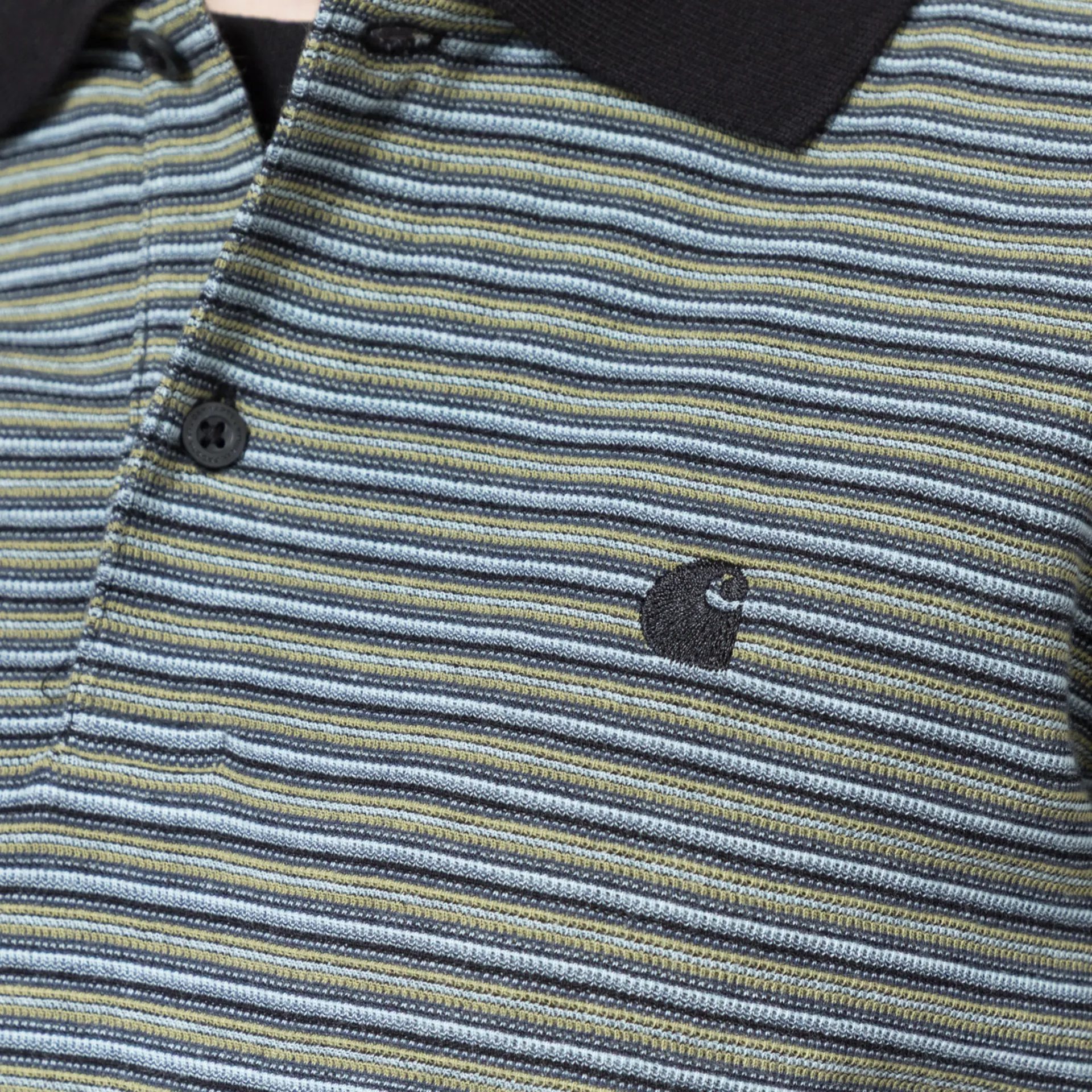 A short-sleeve polo shirt from Carhartt WIP, cut in a slim fit for everyday comfort and crafted from a textured cotton waffle fabric with an all-over striped design. It features a two-button placket, leading to a classic collar, with a straight hem and an embroidered C logo at the chest.