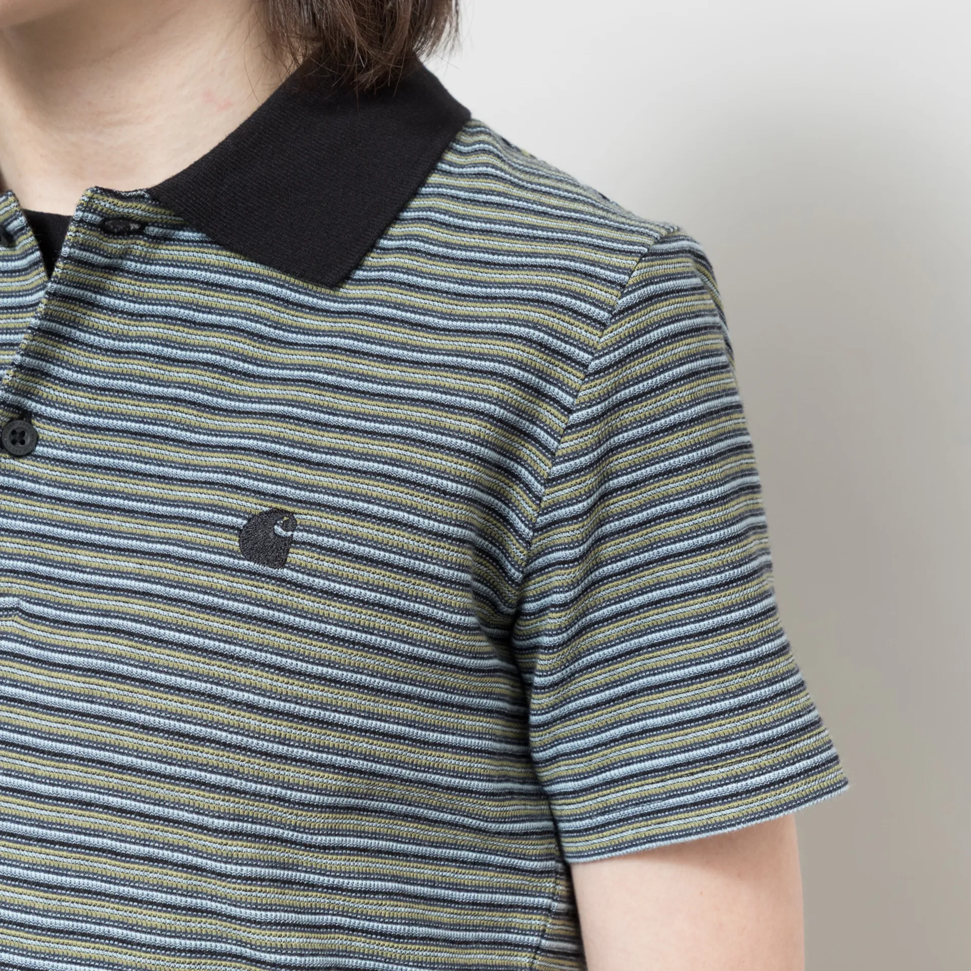 A short-sleeve polo shirt from Carhartt WIP, cut in a slim fit for everyday comfort and crafted from a textured cotton waffle fabric with an all-over striped design.