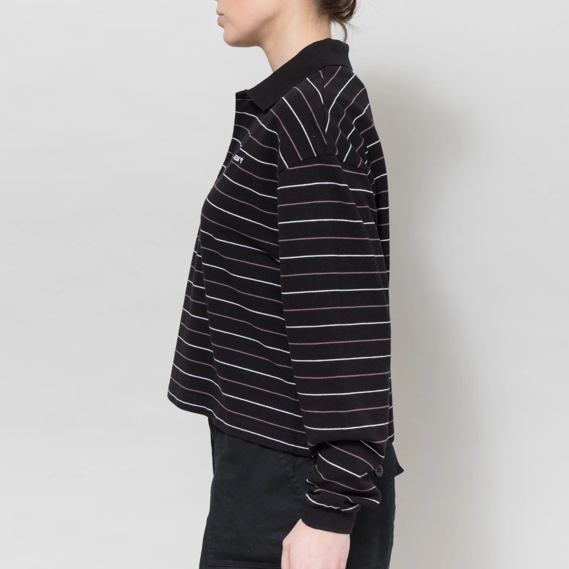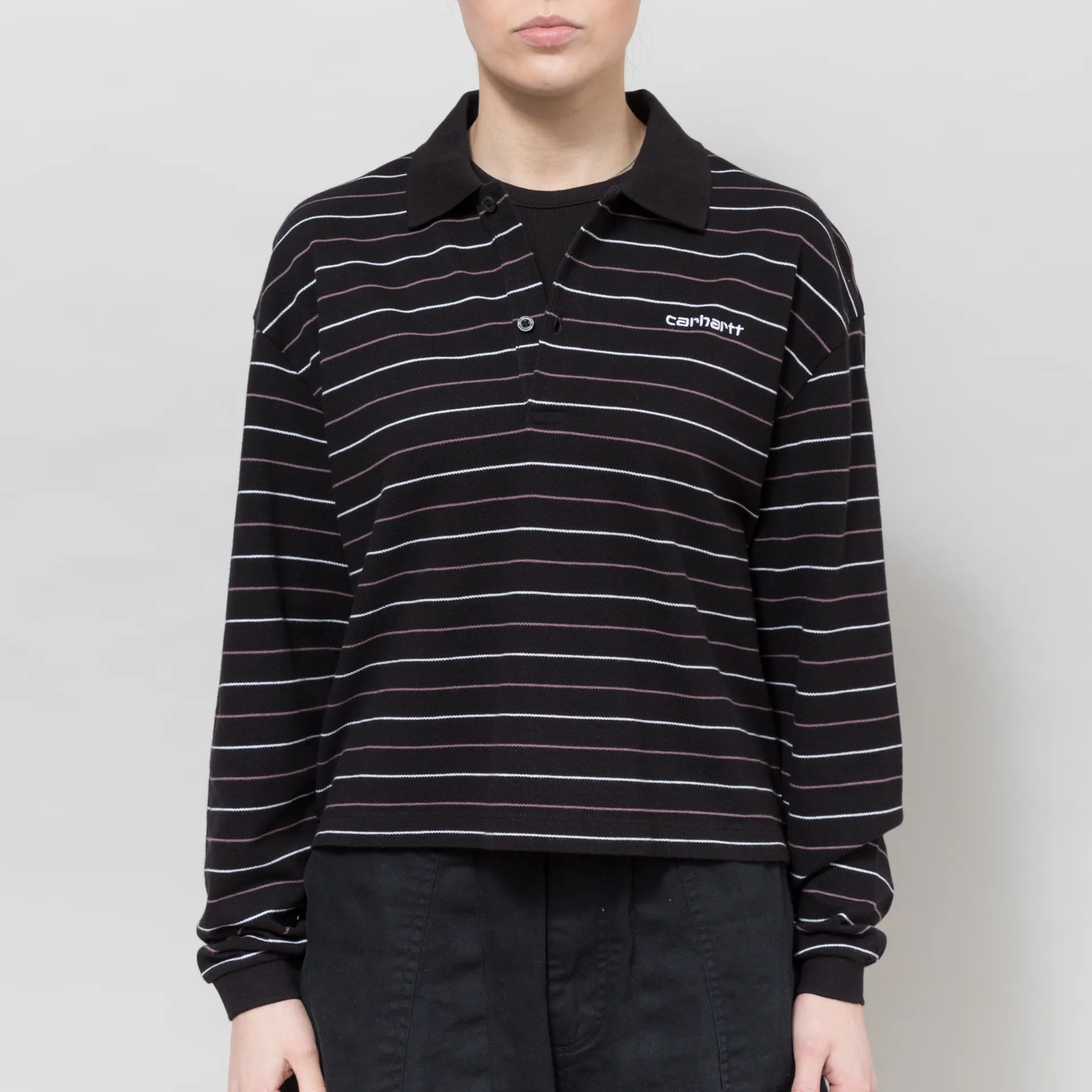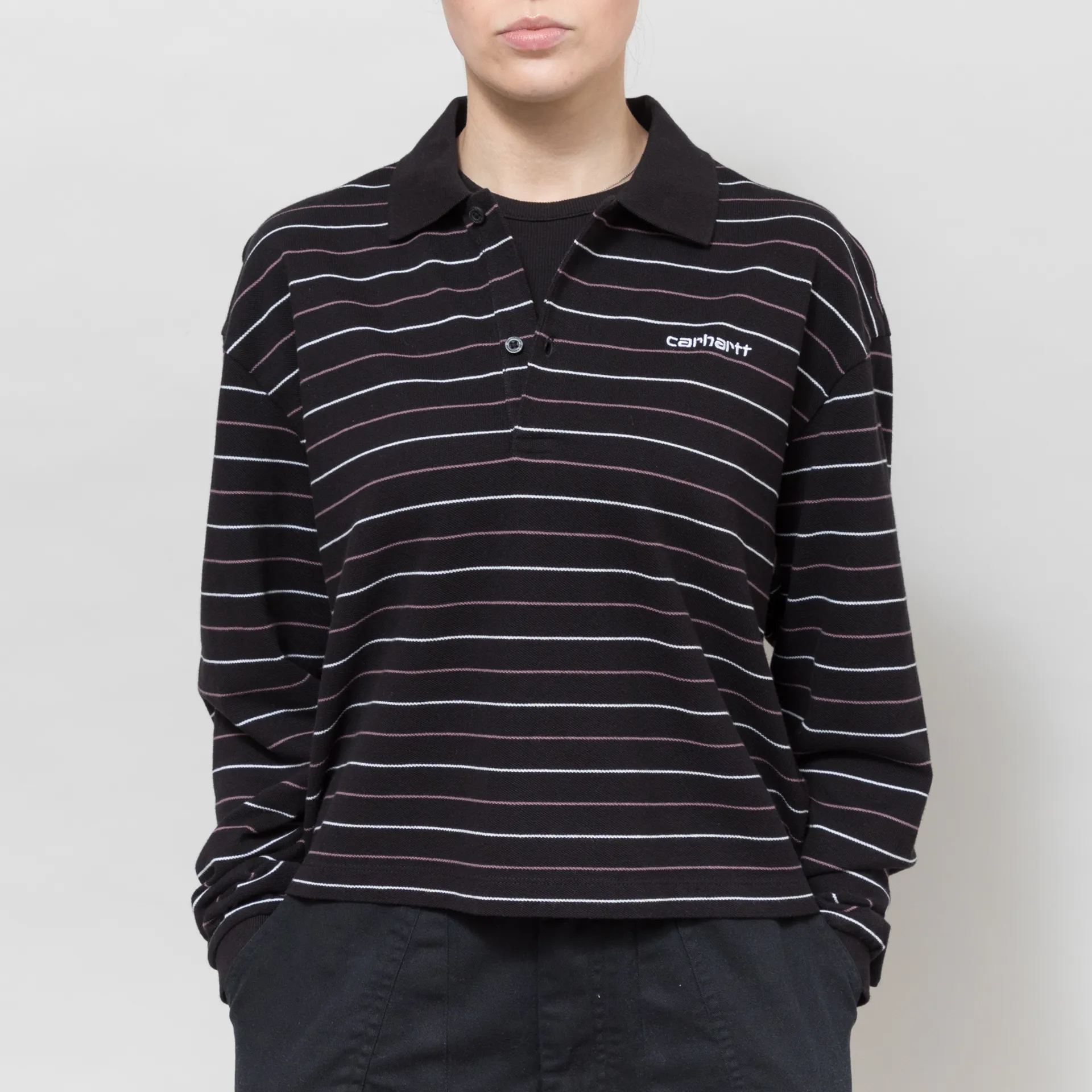 Carhartt WIP Womens Long Sleeve Mabel Polo Striped Black
