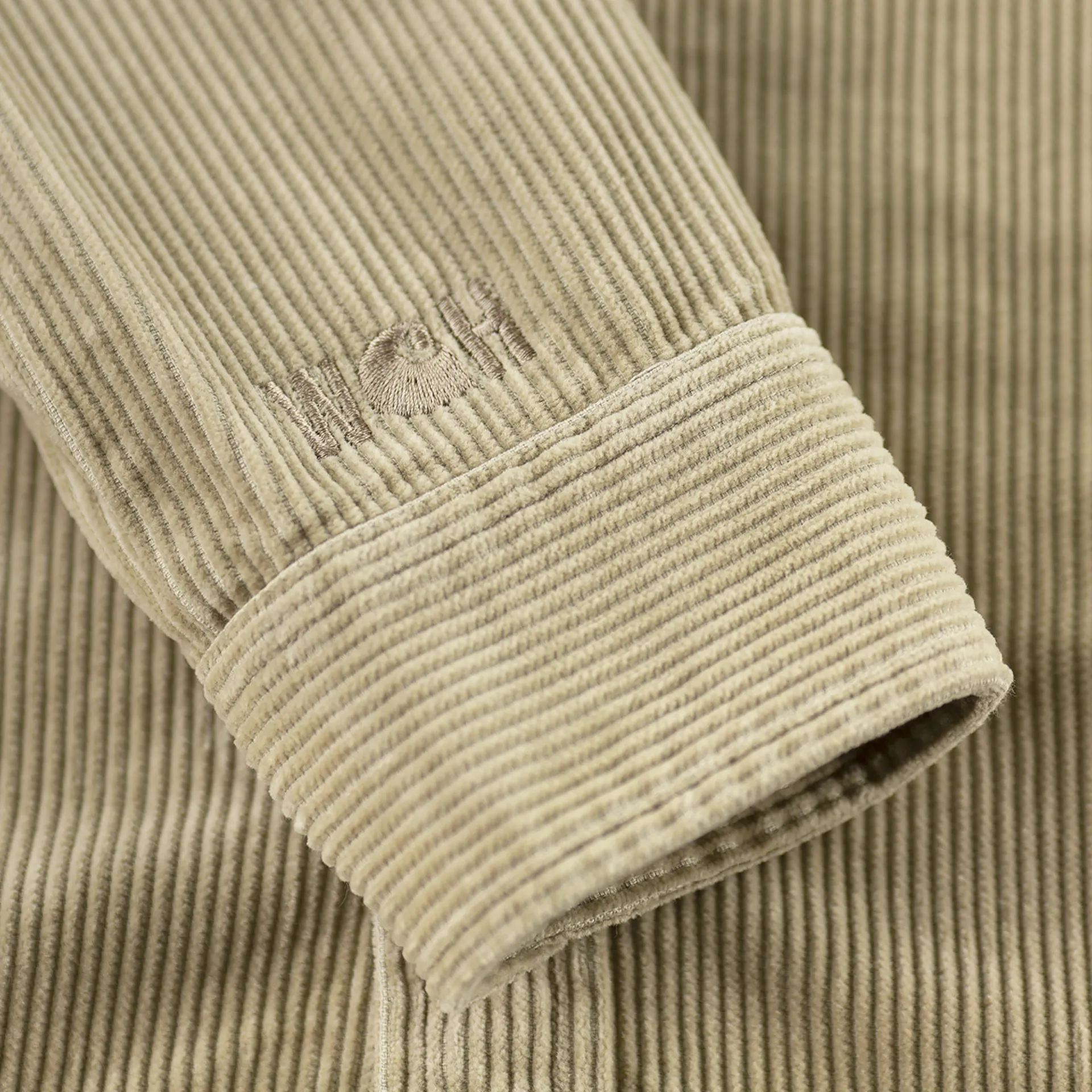 The Madison Cord is a long sleeve overshirt from the WIP collection made from a heavyweight cotton in a thick 8-wale fabric. It has a buttoned front, collar and cuffs and a Carhartt logo embroidered to the chest. To the left cuff we have collaborative WCH embroidery and you'll find woven co-branded logo patches to the inner neck and lower placket.