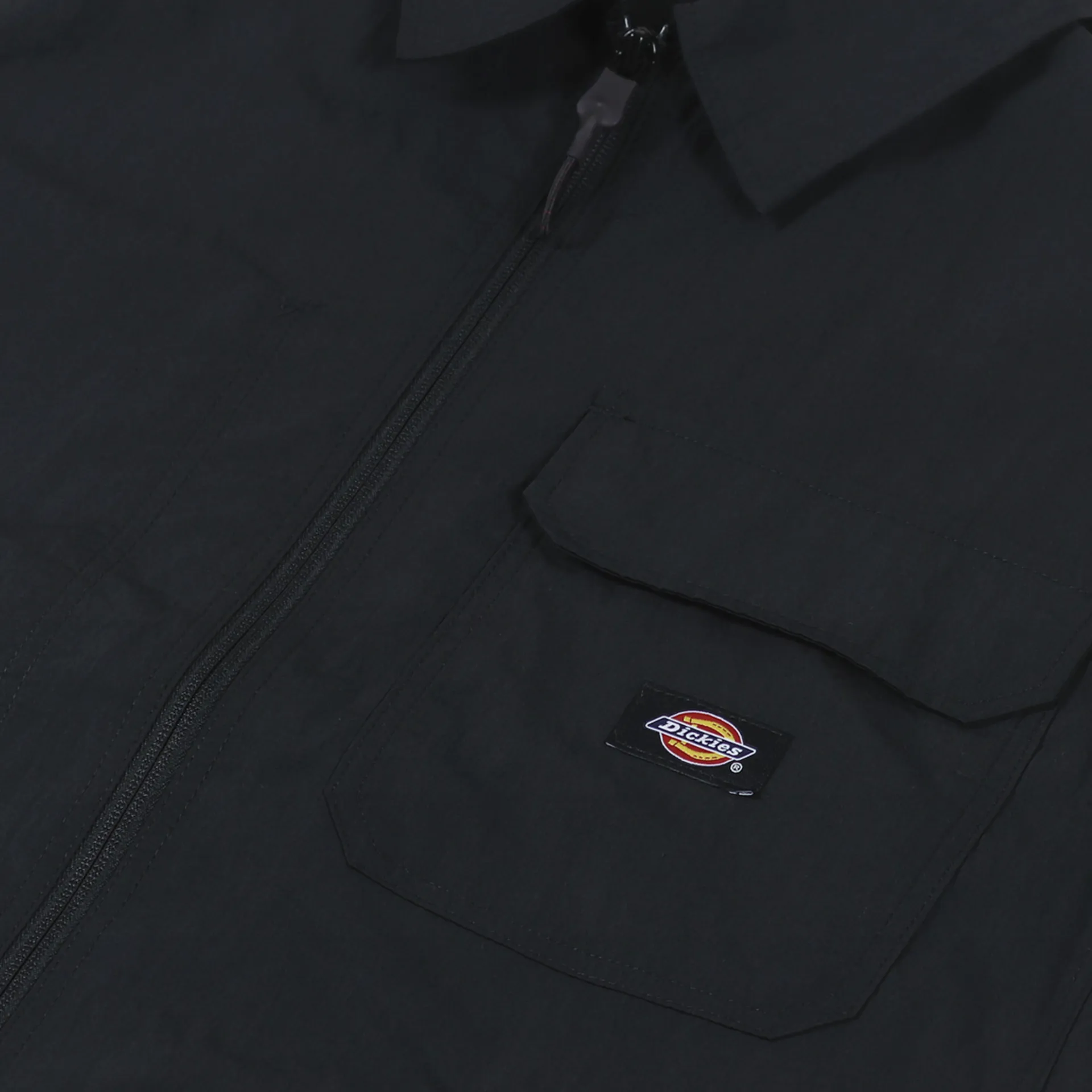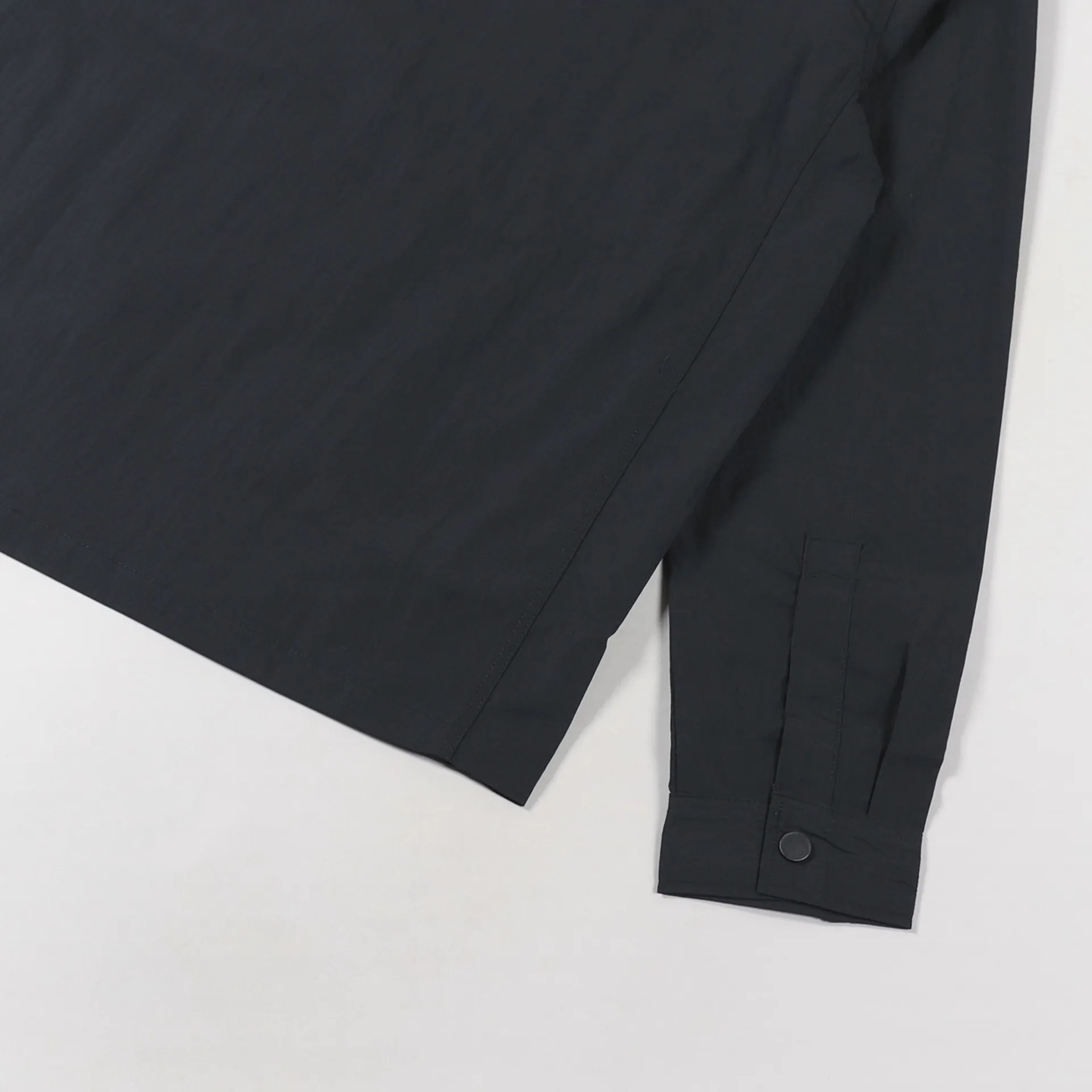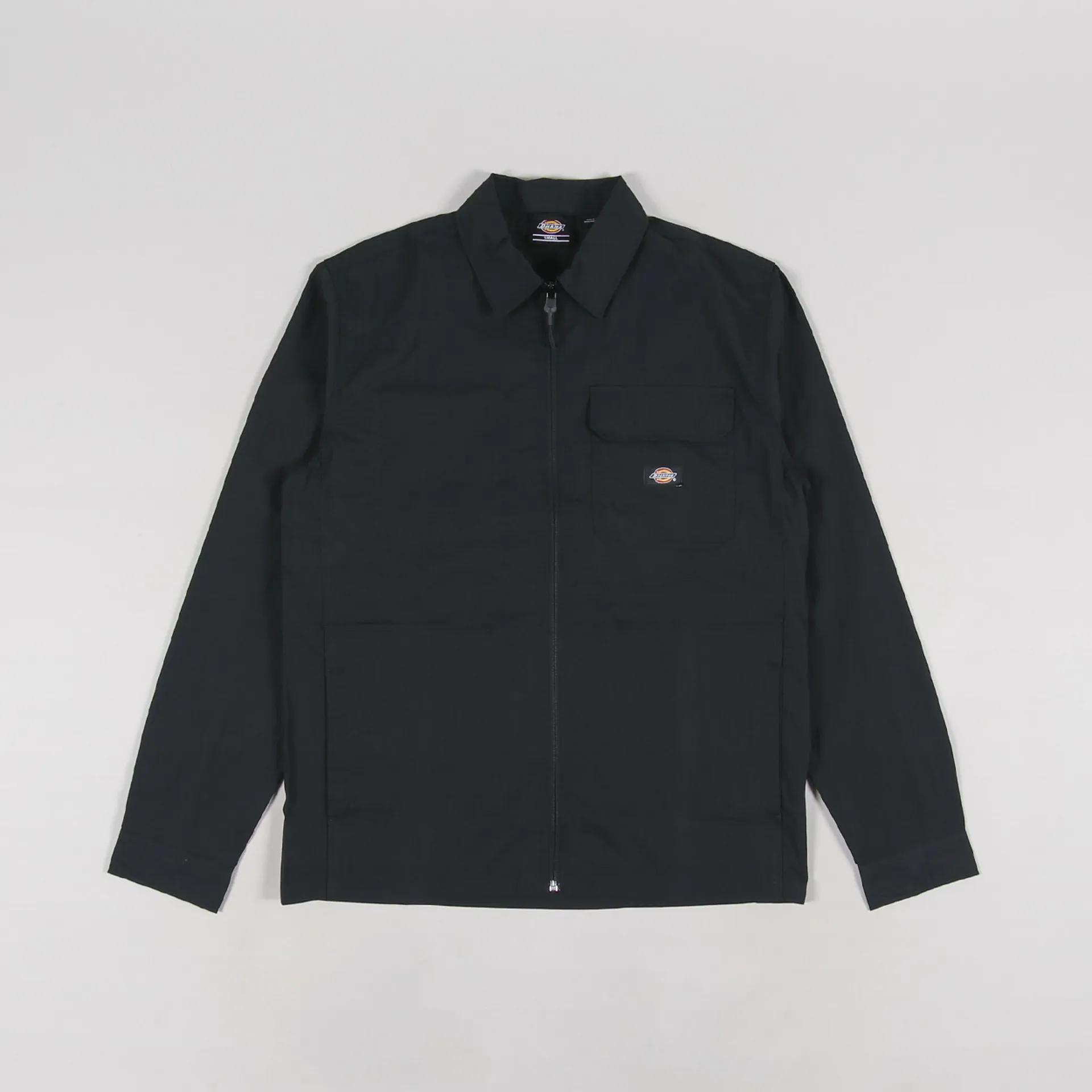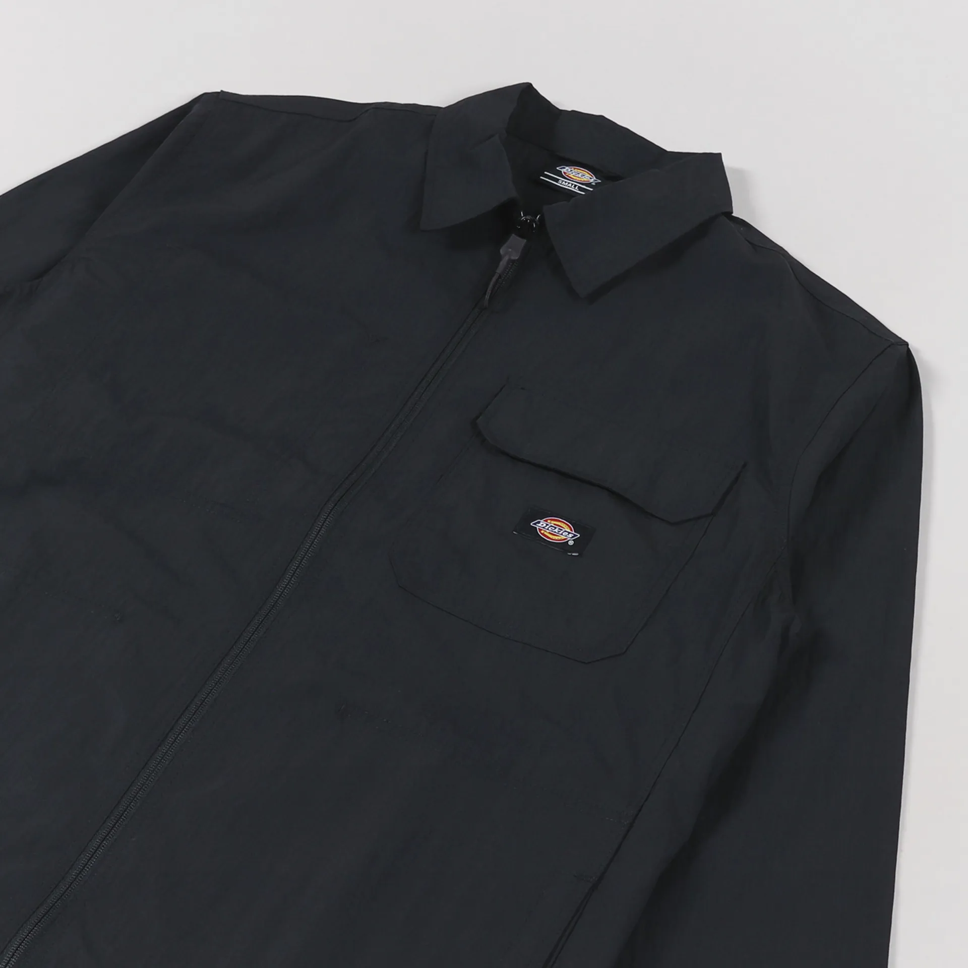 A technical long sleeve overshirt from Dickies' Lifestyle collection, made from a durable blend of 66% cotton and 34% polyamide in a taffeta material. It has a full-zip front, buttoned cuffs, handwarmer pockets and a snap-up chest pocket with a woven logo patch.