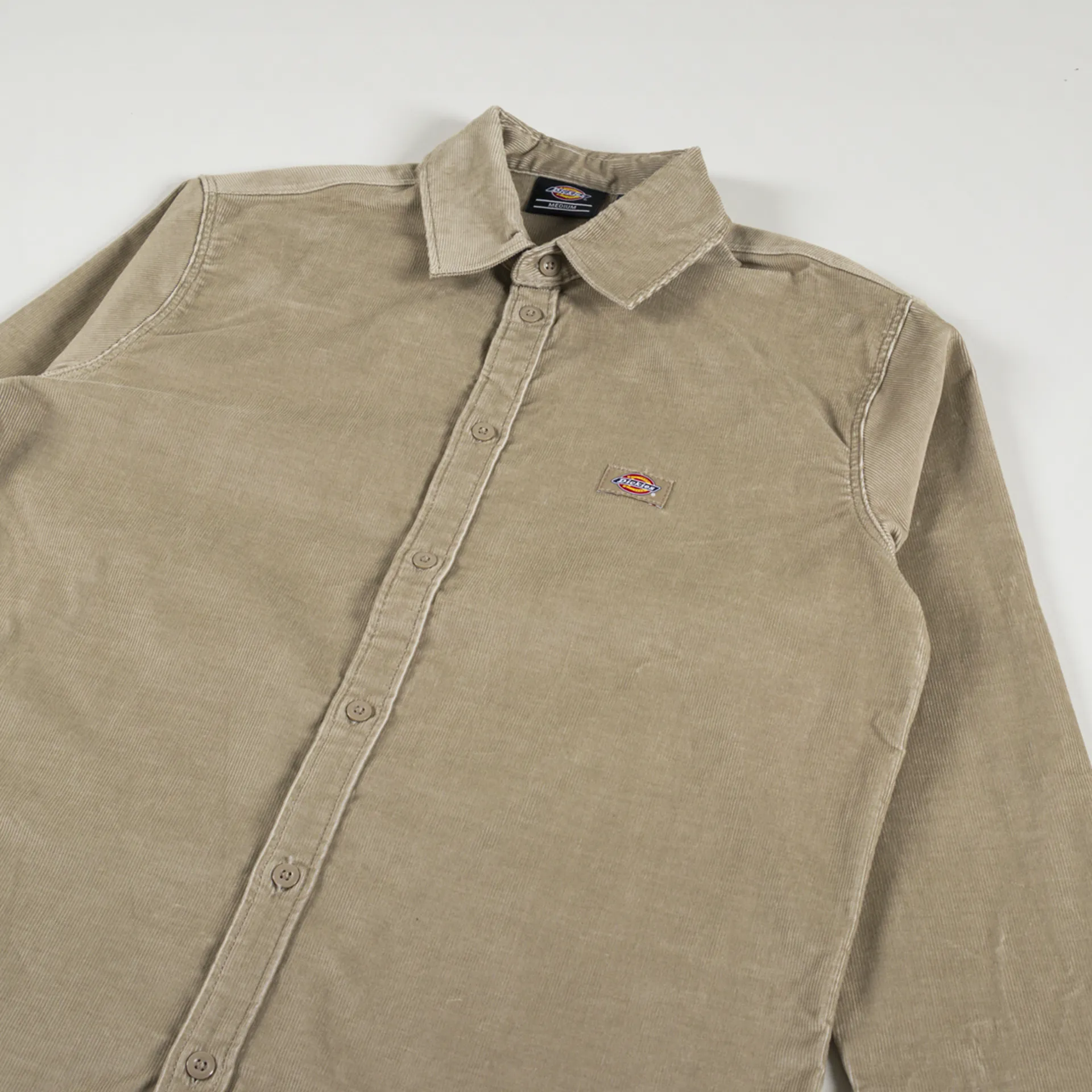 A long sleeve shirt from Dickies made from a comfortable 100% cotton in a fine wale corduroy with a buttoned front and cuffs and a woven logo patch to the chest.