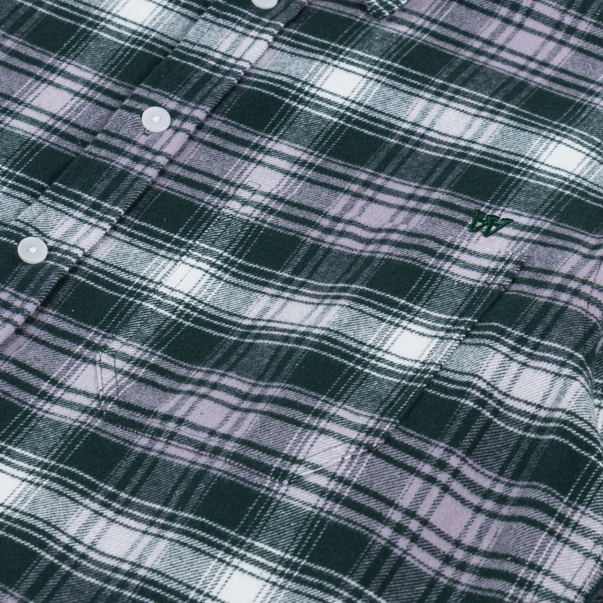 A soft cotton shirt from Double A, cut in a loose fit for a laidback silhouette, with an all-over checkered pattern. It has a button-through front, leading to a classic collar, with a curved hem and buttoned cuffs. The design is complete with a single patch pocket at the chest and a tonal embroidered Double A logo.