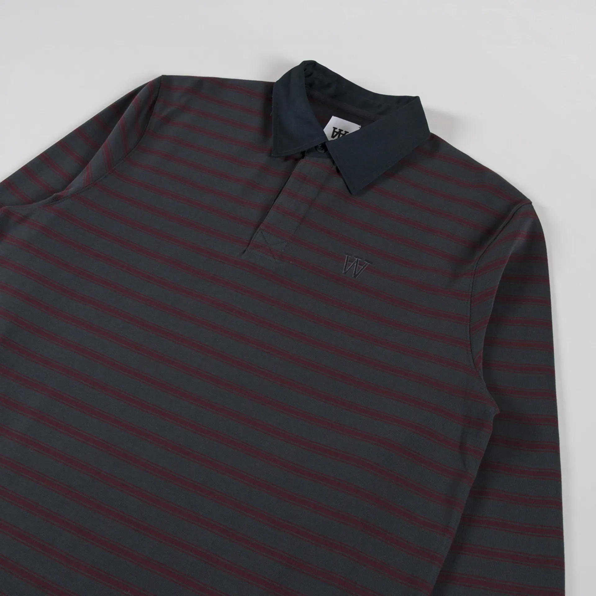 A long sleeve rugby shirt from Double A, constructed from soft, striped organic cotton and cut in a relaxed fit for a casual silhouette. Featuring a classic button placket, leading to a slightly oversized collar, a straight hem with slits and is finished with a tonal embroidered logo to the chest.
