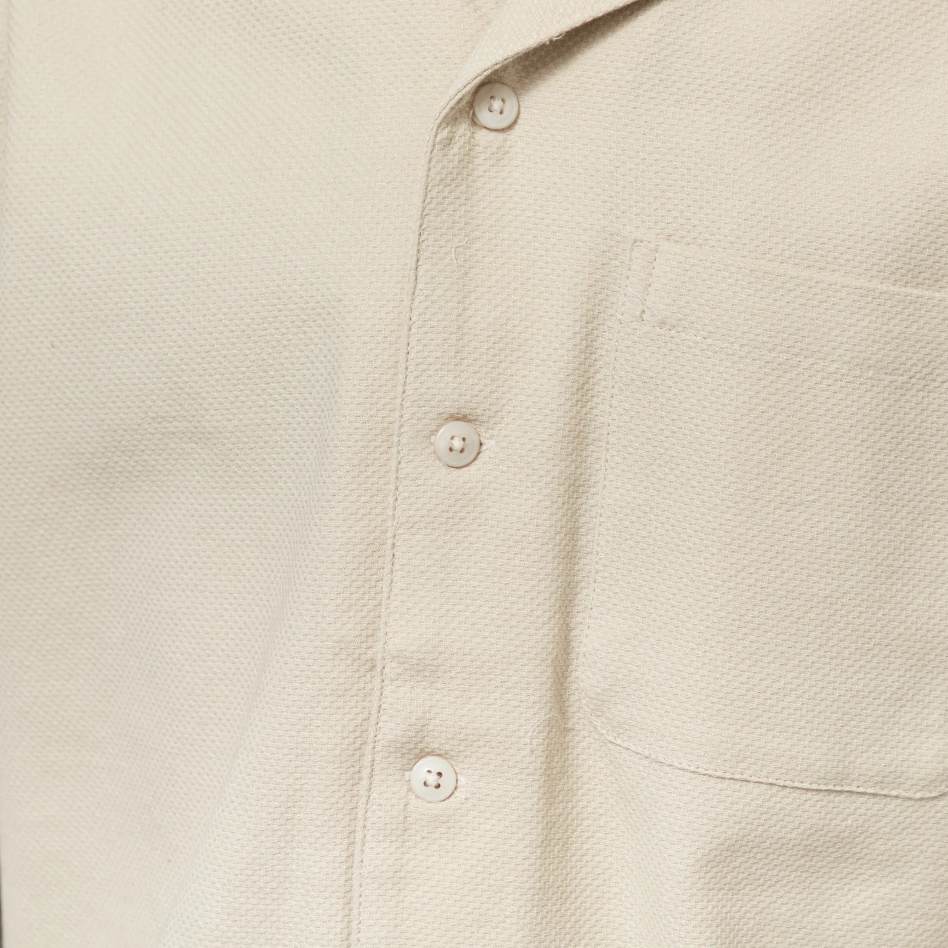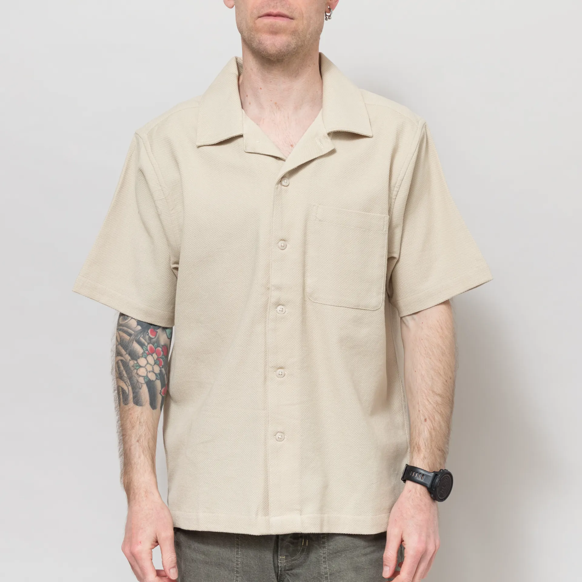 A short-sleeve shirt from Far Afield, cut in a regular, slightly cropped fit and constructed from textured micro-dobby cotton, with a fine, pin-head surface for added depth.