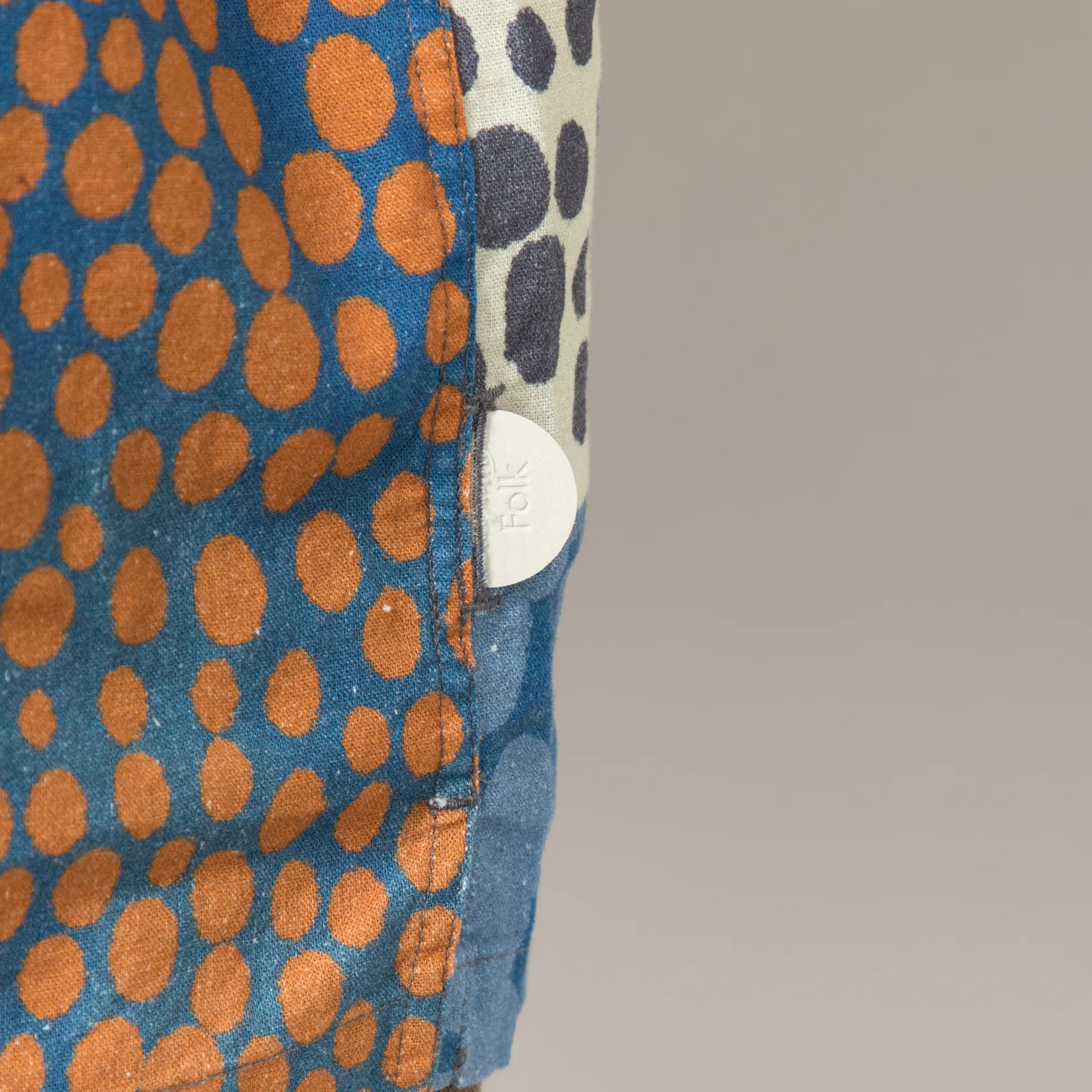A lightweight summer shirt from Folk, cut in a relaxed fit for a casual silhouette and constructed from a breathable linen blend. It features an all-over bold dot print artwork by Folk, each shirt being unique, with a corozo nut button placket, a half moon stand collar and a single pocket at the chest. Finished with the signature Folk tab at the side seam.