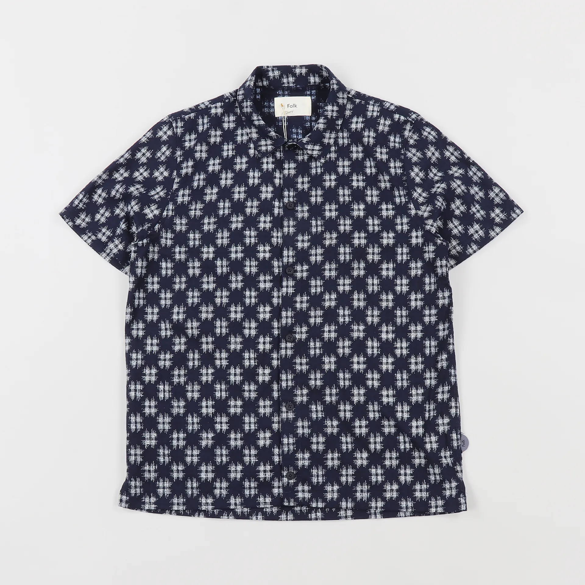 A short sleeved, summery number from Folk Clothing. The Gabe Shirt features a fold down collar, a button style fastening and a branded logo patch.