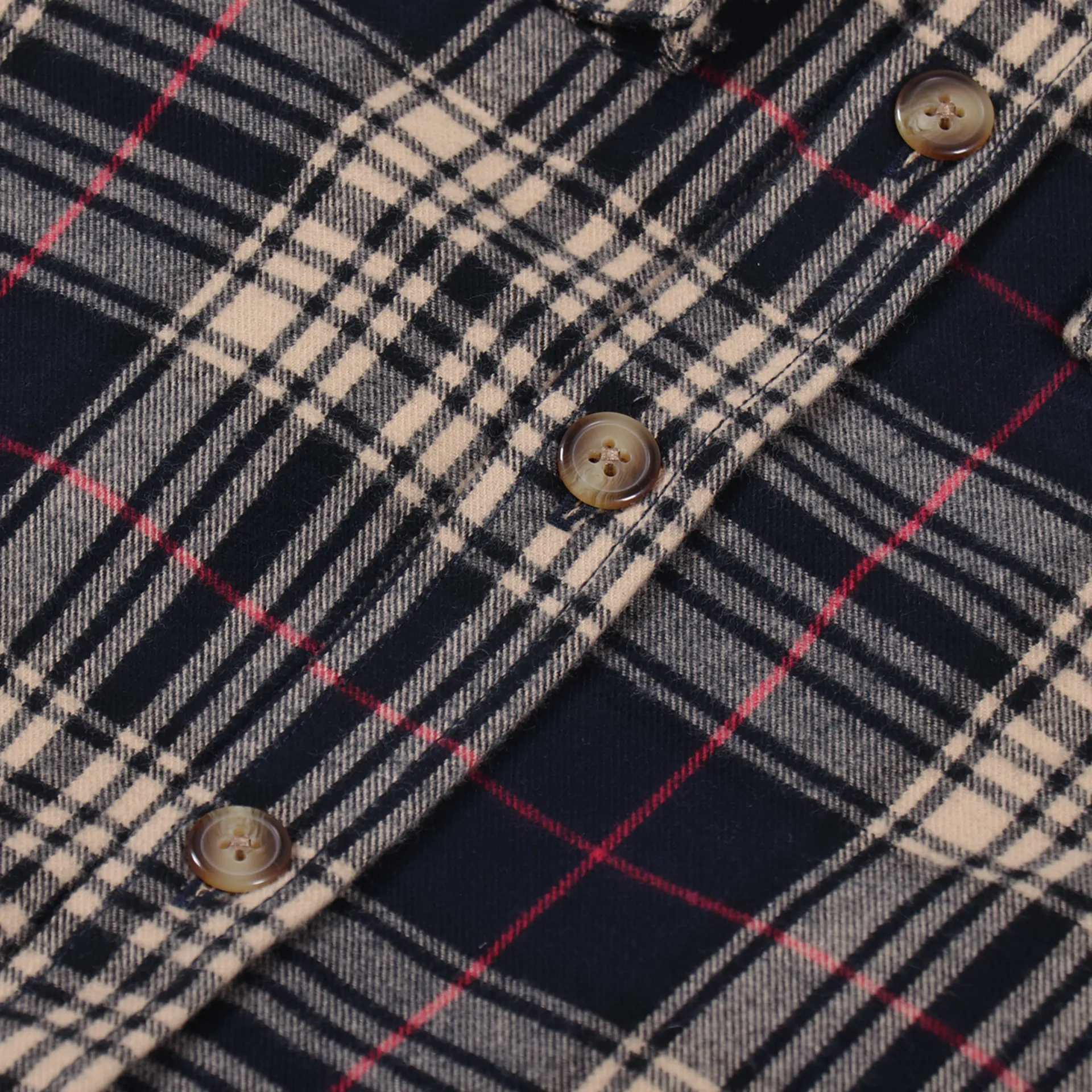 A long sleeve flannel shirt from Foret, made from 100% cotton in a durable brushed twill with a buttoned front, cuffs and chest pockets. It has a casual checked pattern and it was made in Portugal for a quality construction.