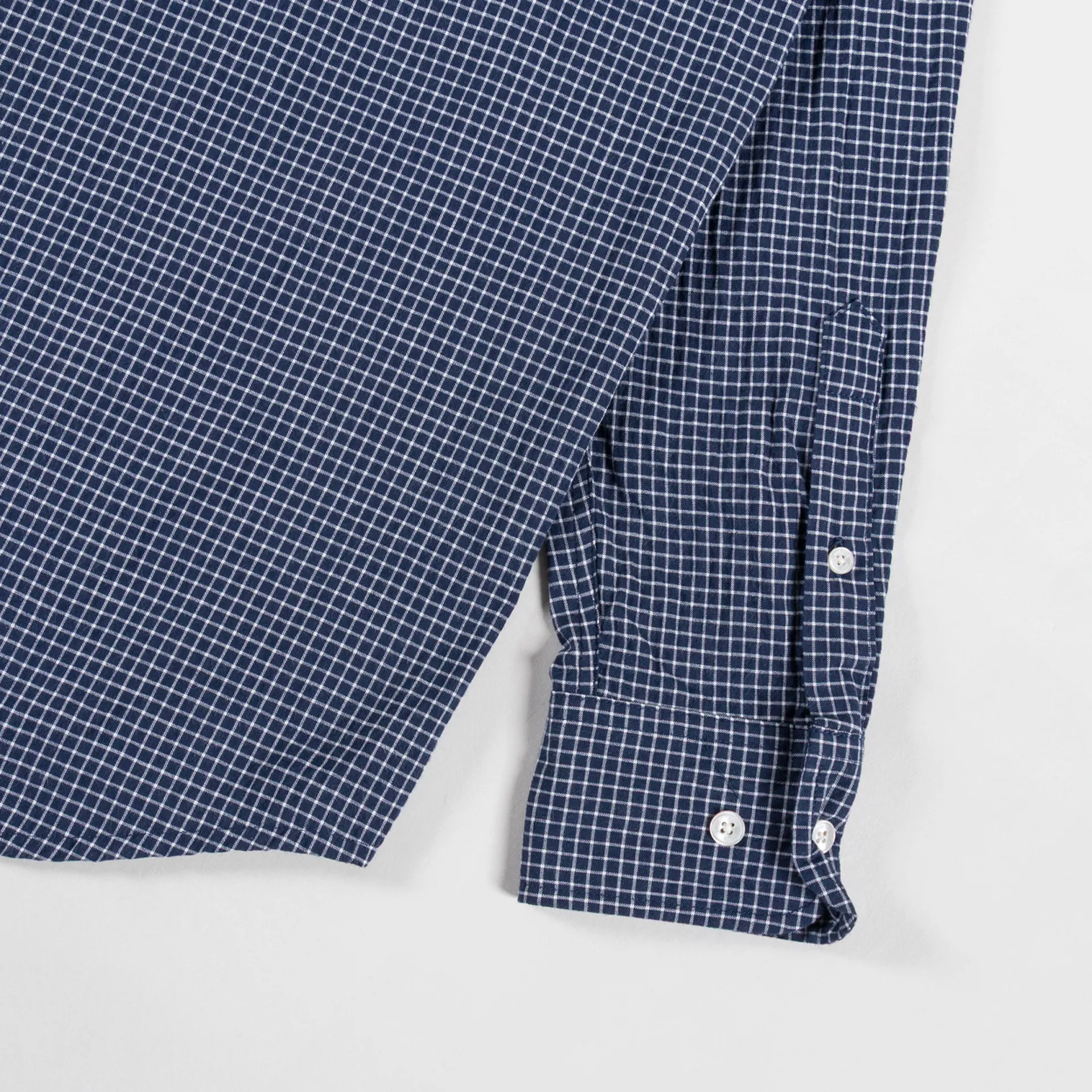 A checkered shirt from Foret, cut in a regular fit for everyday comfort and constructed from soft organic cotton. It features a button-through front, leading to a classic collar, with a curved hem and buttoned cuffs. Finished off with a back box pleat for added structure and a single patch pocket to the chest.