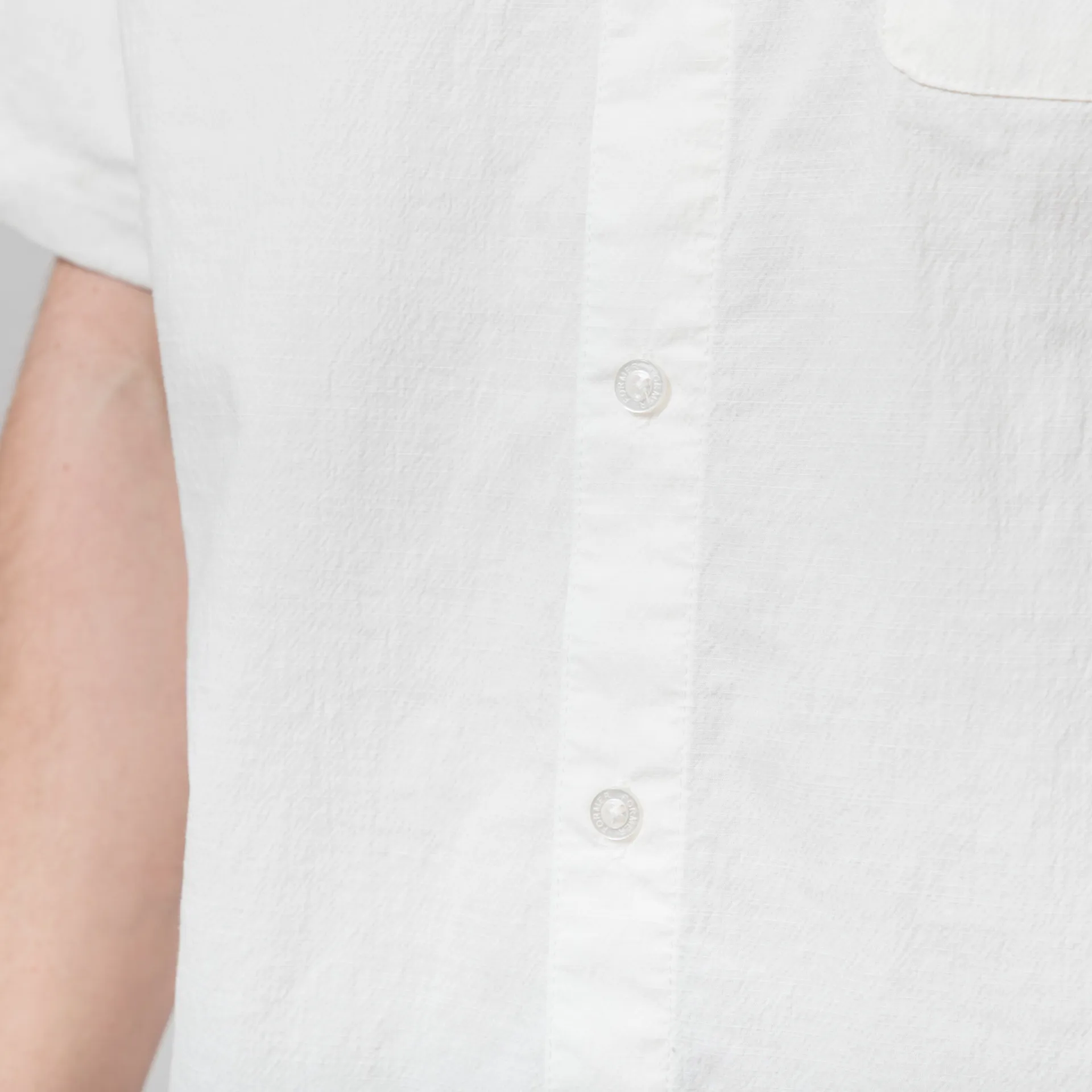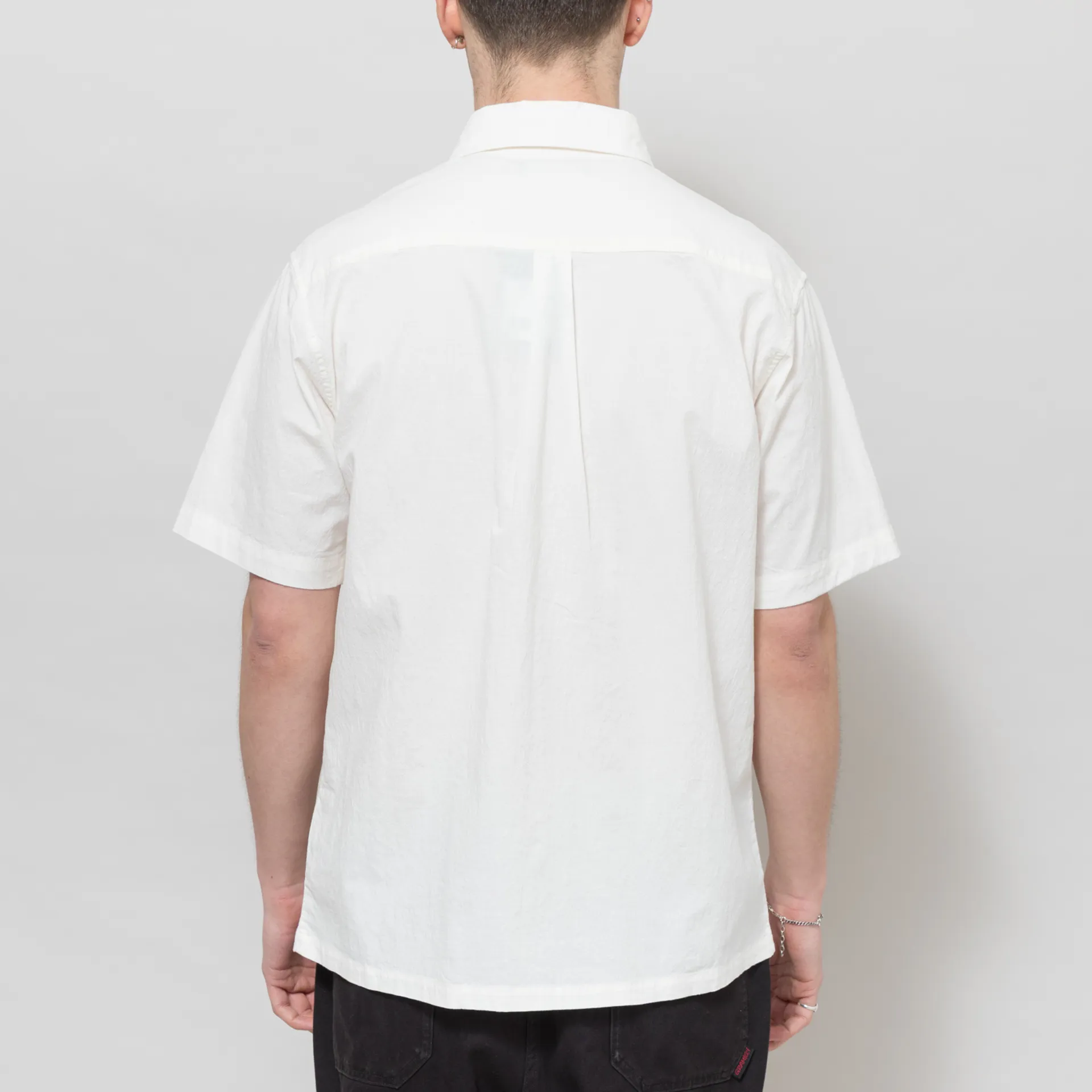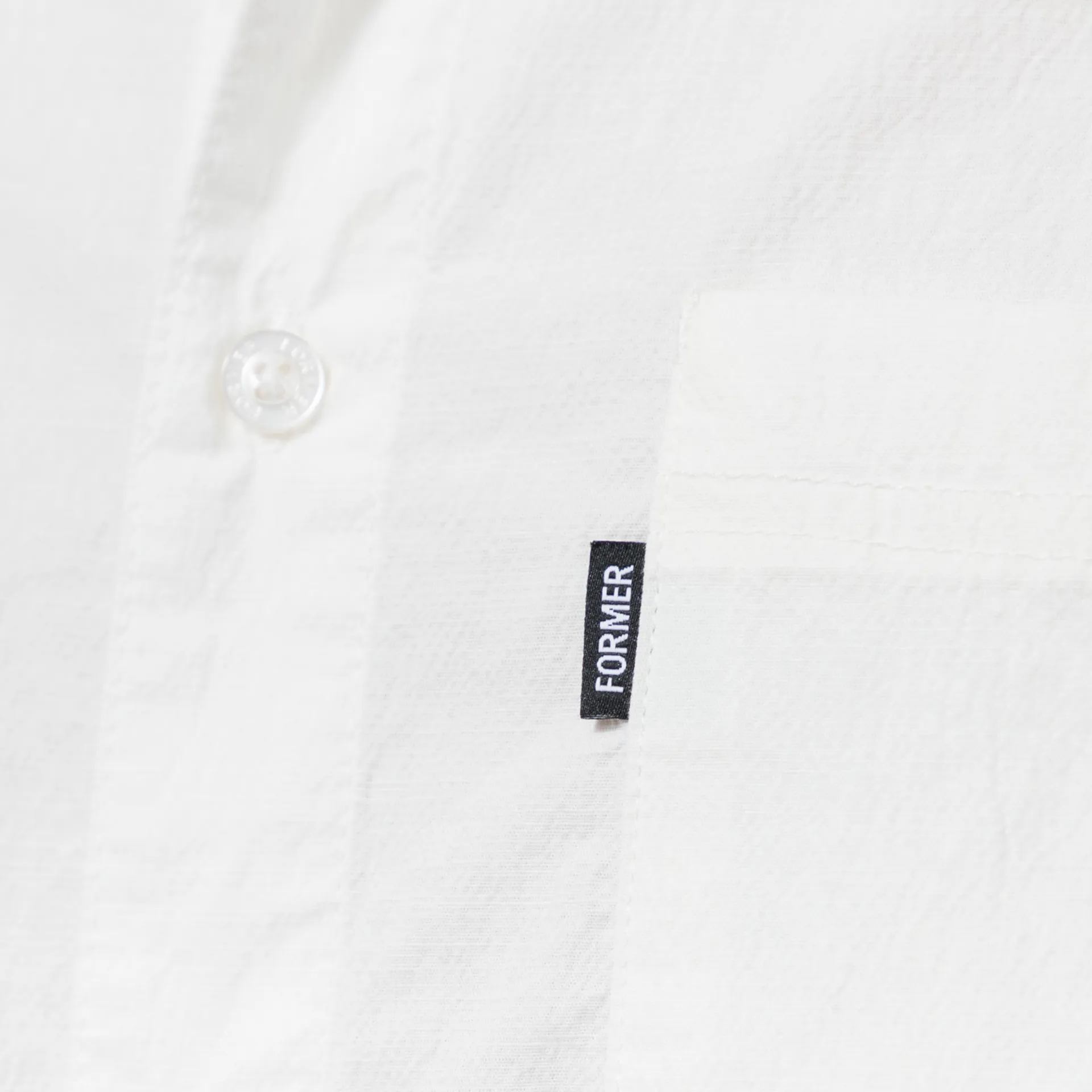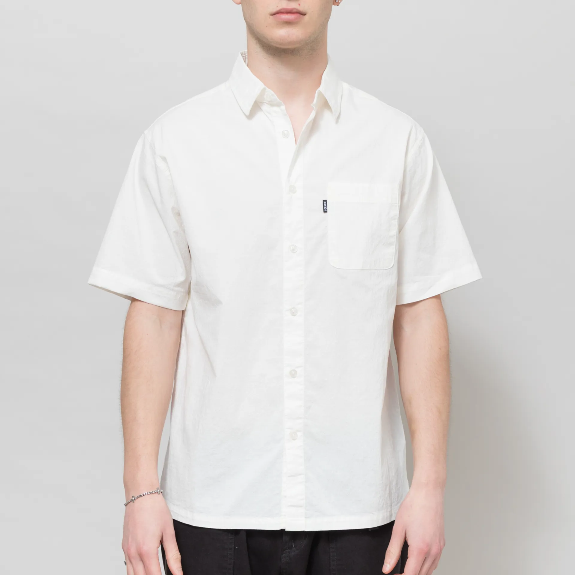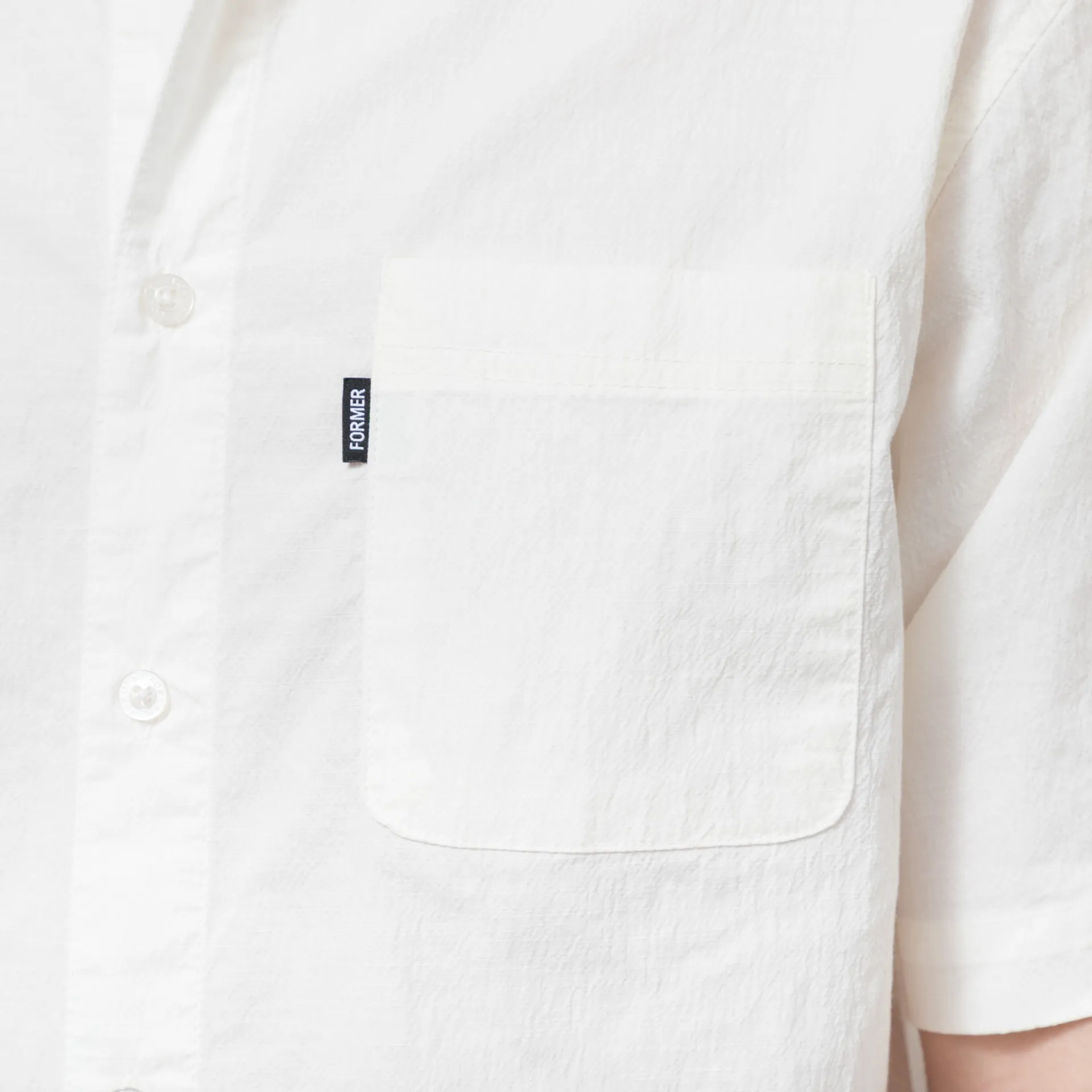 A short-sleeve shirt from FORMER, cut in a regular fit for everyday comfort and crafted from a textured blend of cotton, rayon and spandex. It has a full button-through front, leading to a classic collar, with a straight hem and a single patch pocket at the chest with a small woven flag label to finish.