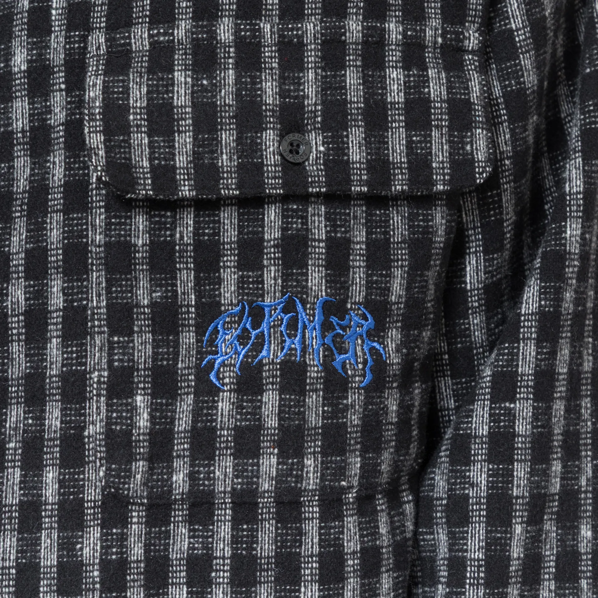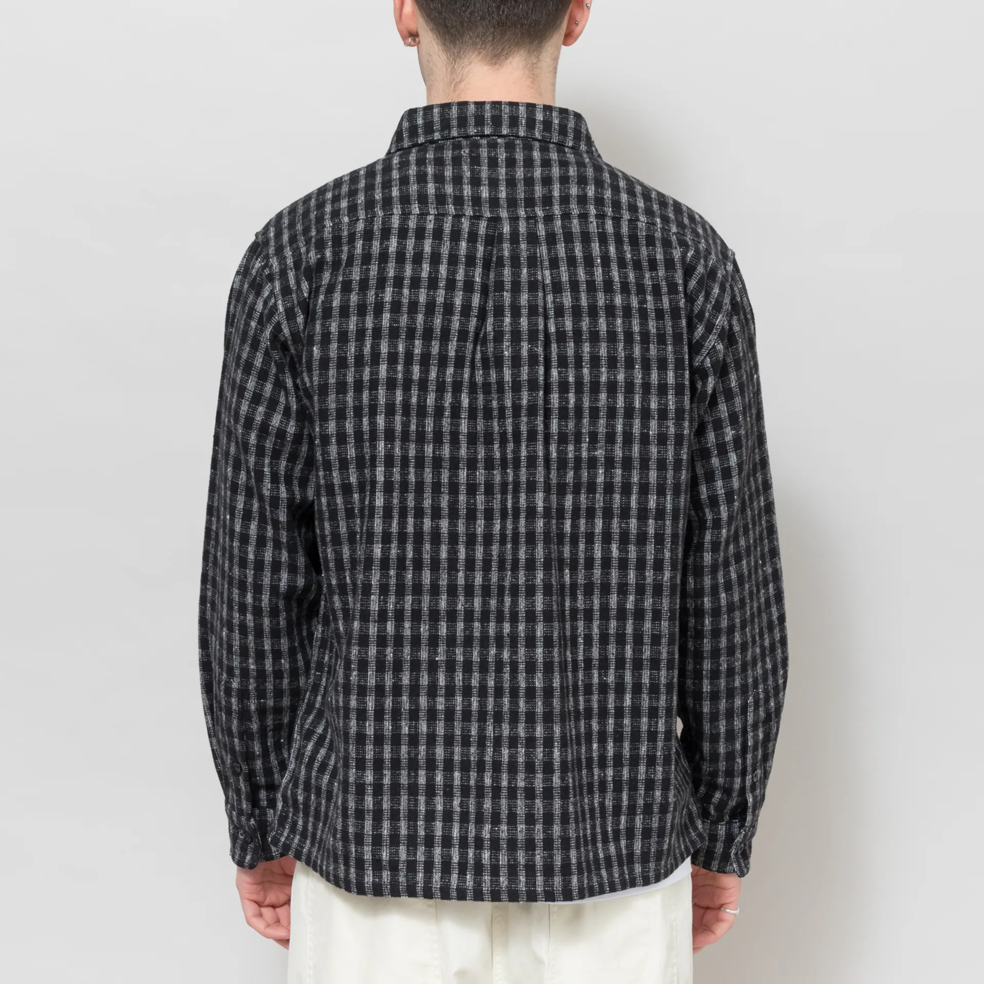 A long-sleeve from FORMER, cut in a boxy fit for a laidback silhouette and constructed from a midweight polyester/wool blend. It features an all-over checkered design, with a buttoned placket, a straight hem and buttoned cuffs to adjust. The design is complete with a back box pleat for added structure and two patch pockets at the chest, one with an embroidered logo to finish.