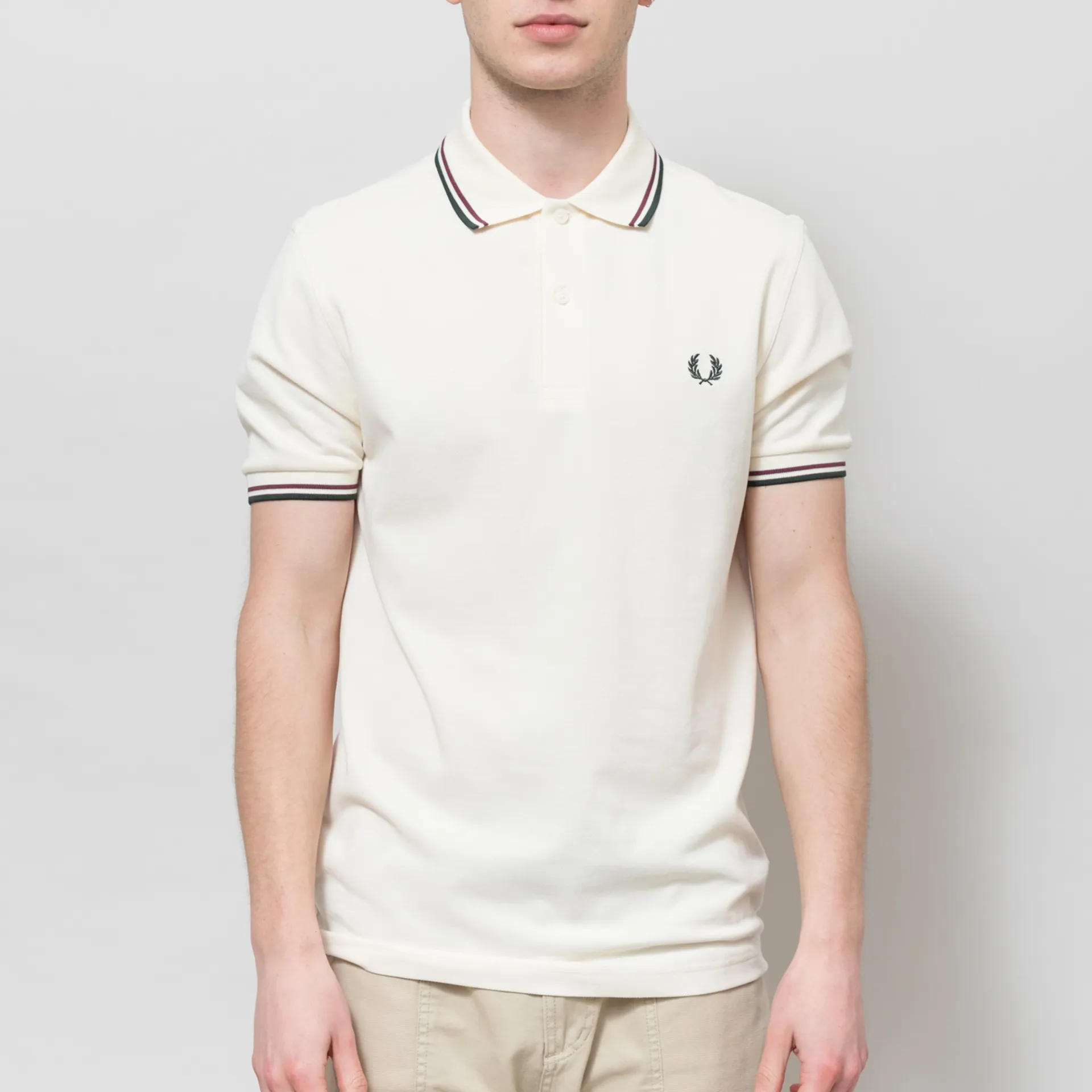 Fred Perry M3600 Twin Tipped Polo Shirt Ecru Oxblood Grassroots