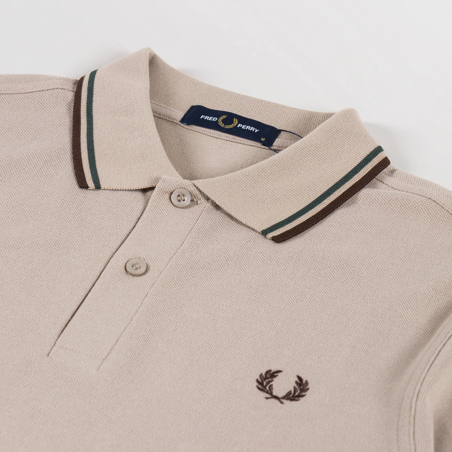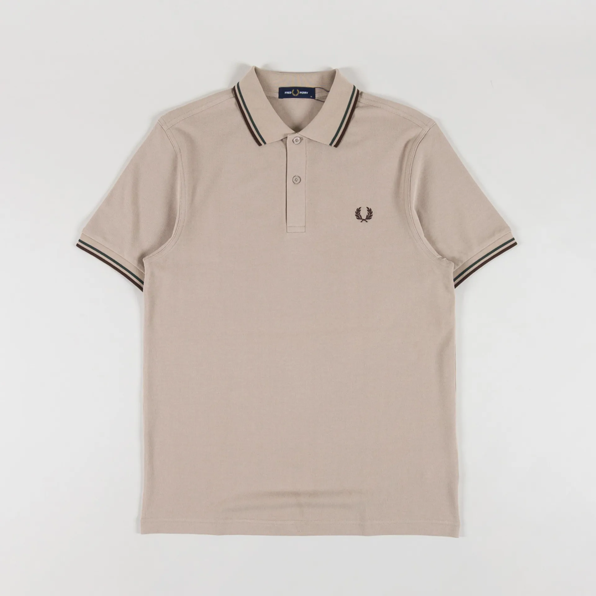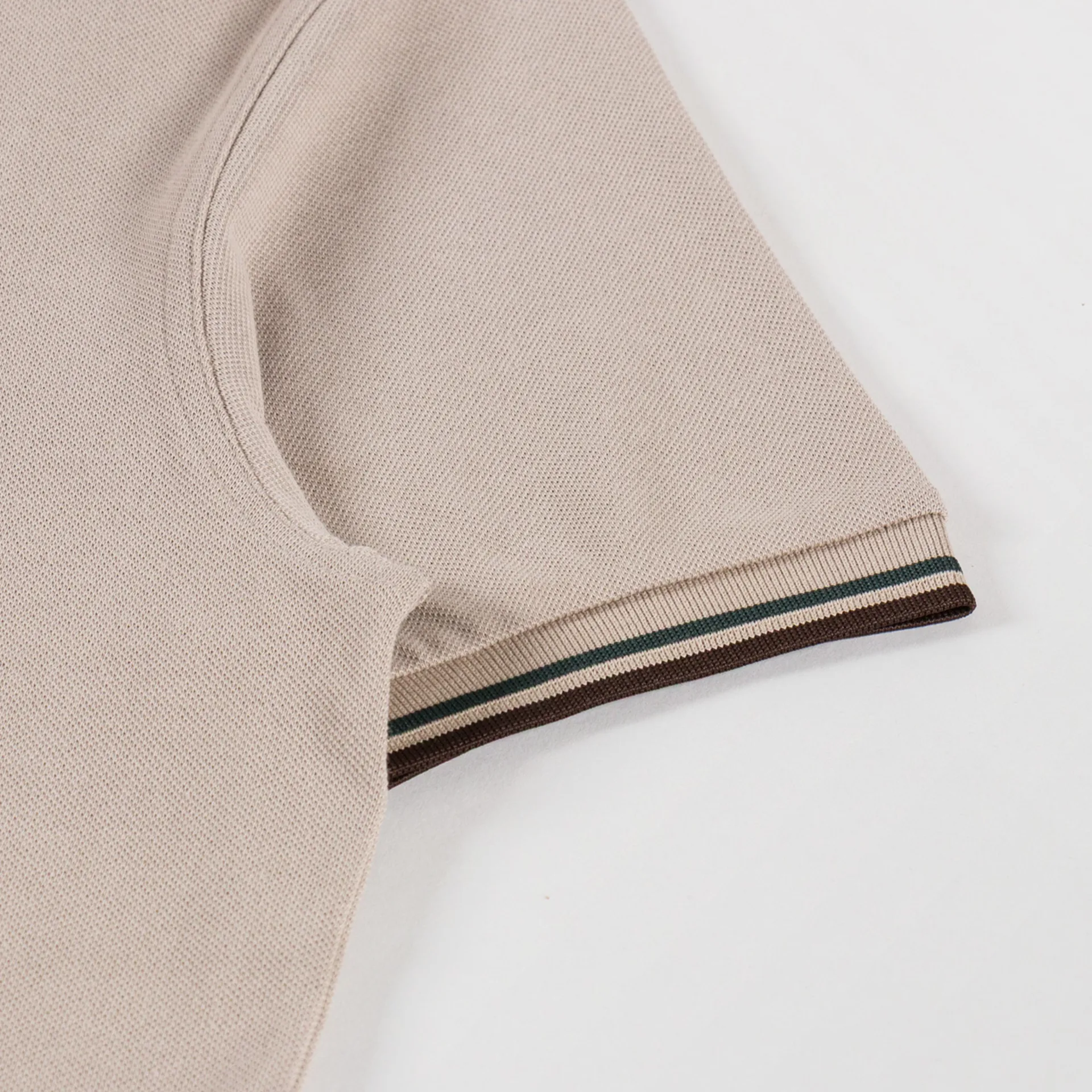 Fred Perry M3600 Twin Tipped Polo Shirt Warm Oat Court Green Tobacco