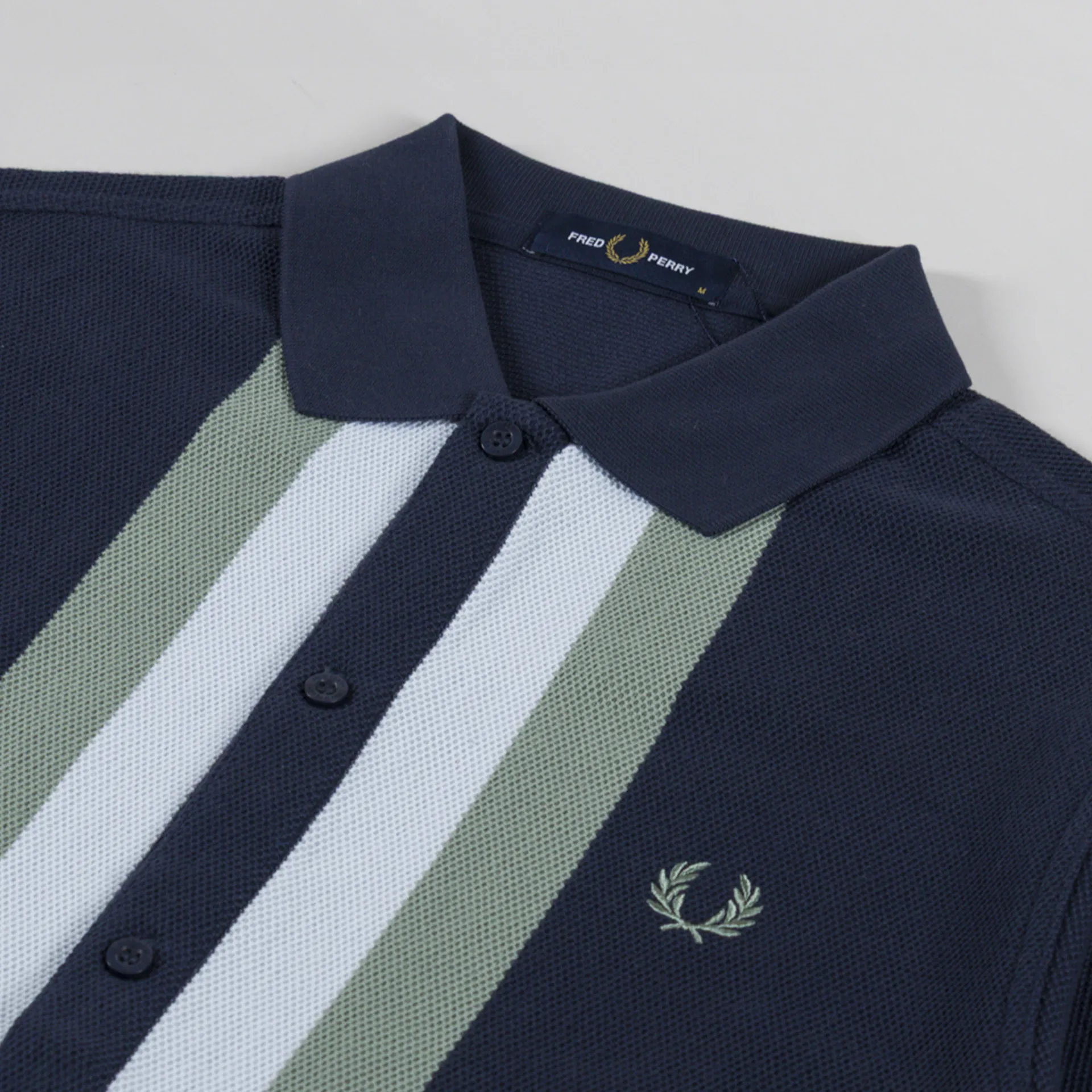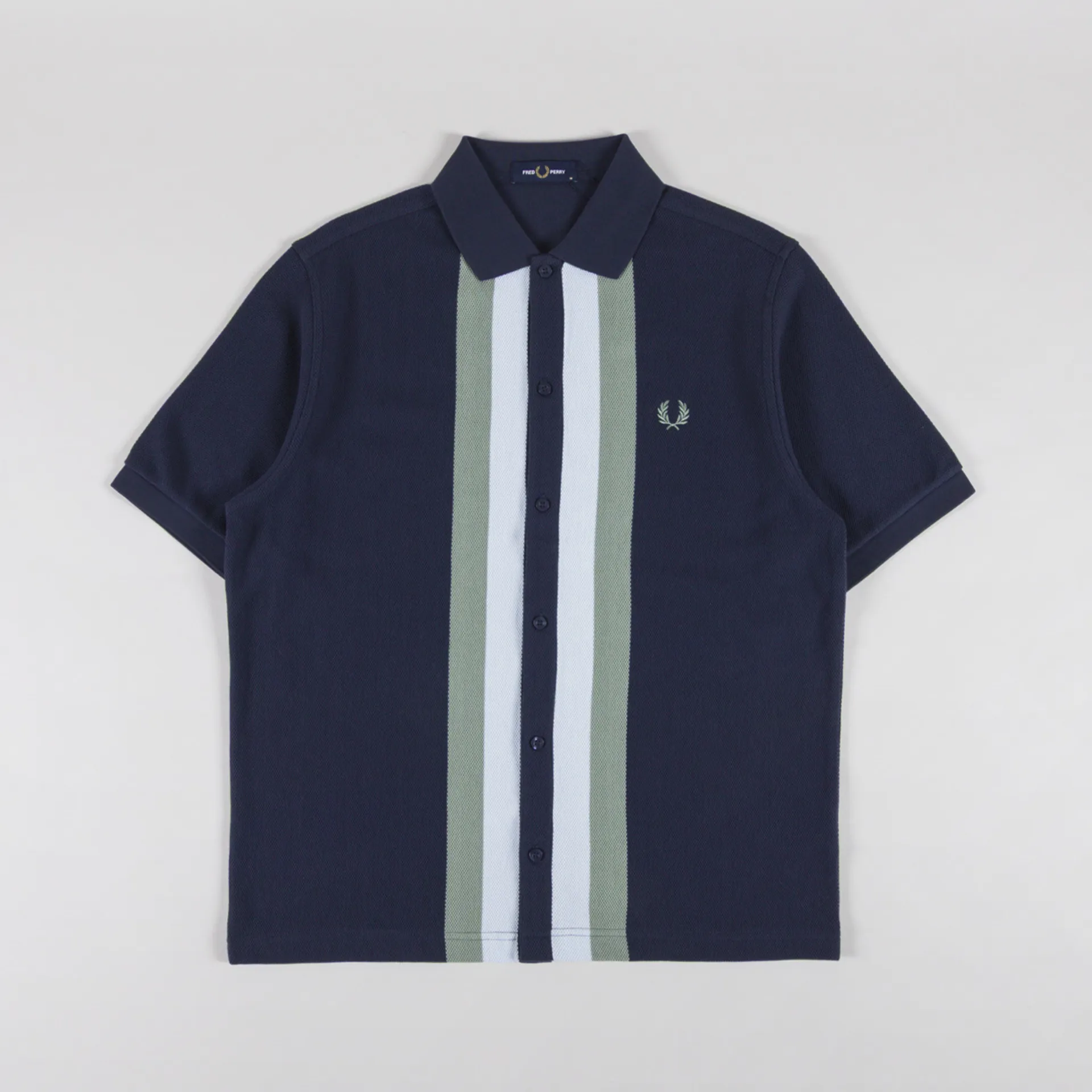 Fred Perry Panelled Button Through Polo Shirt Dark Airforce