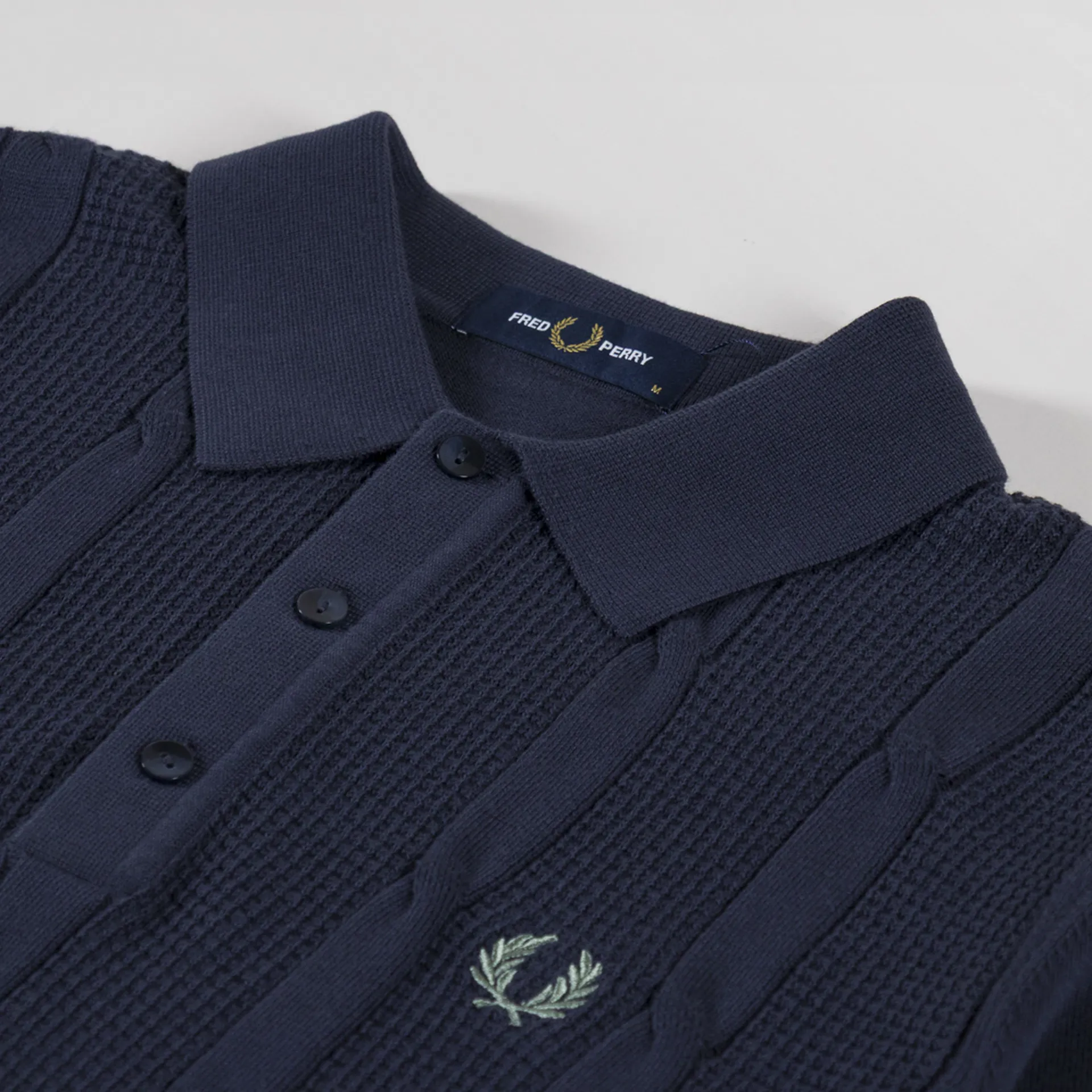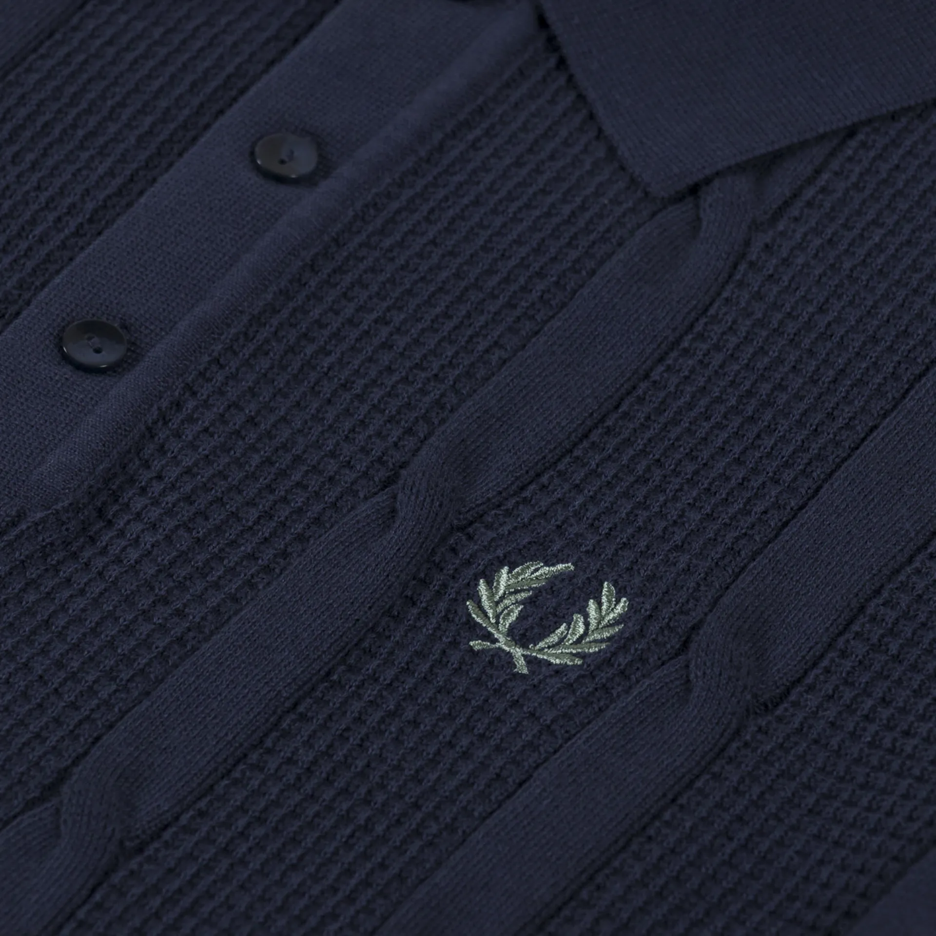 A textured polo shirt from Fred Perry, constructed from soft combed cotton with cable knit detailing.