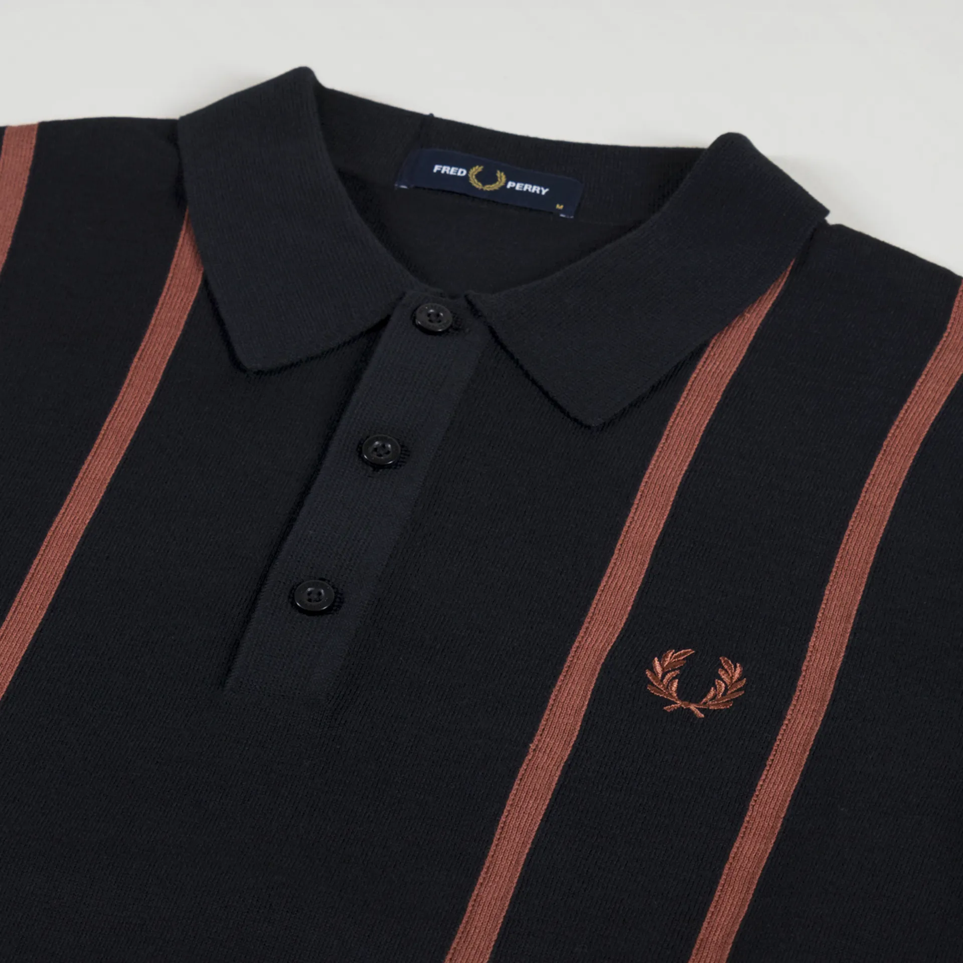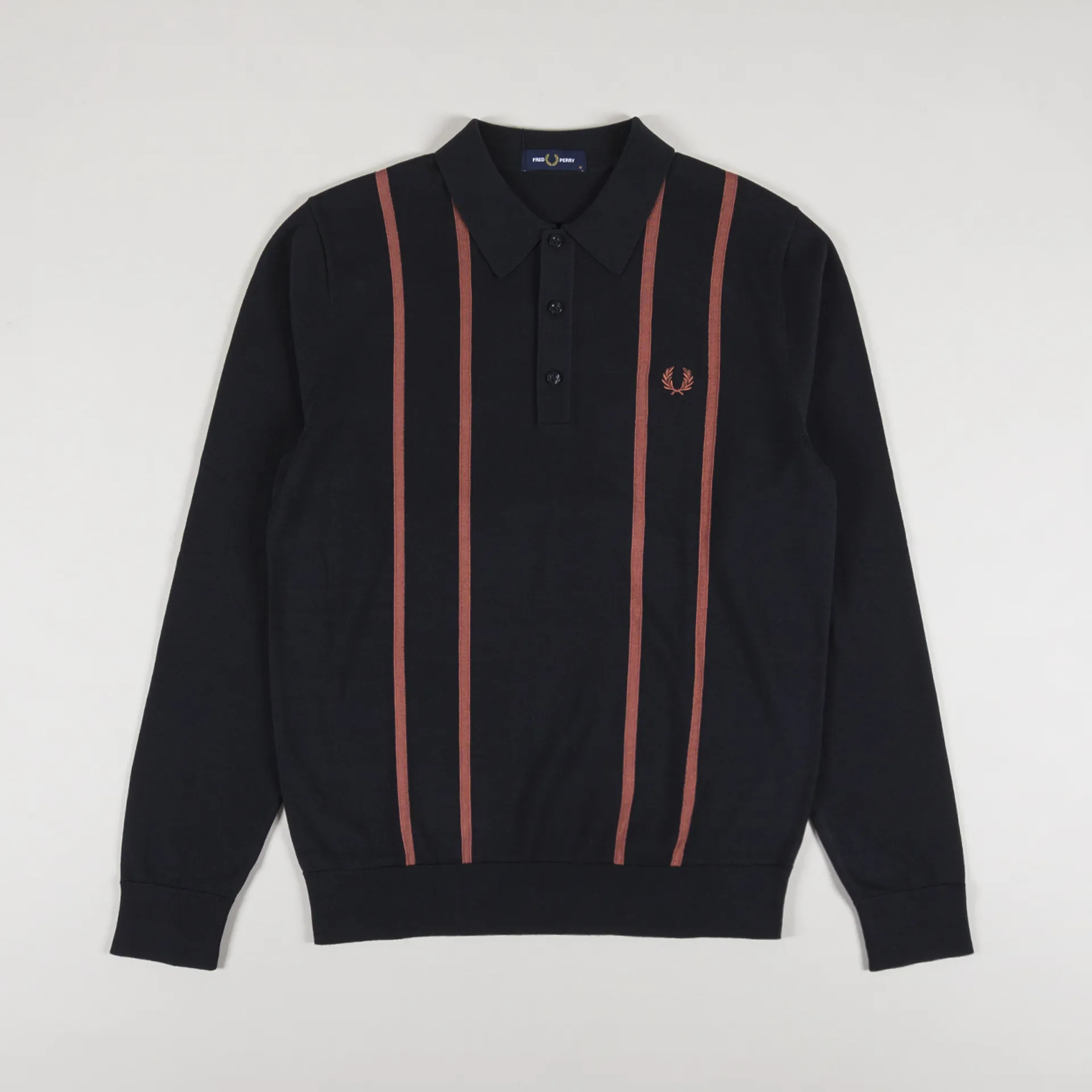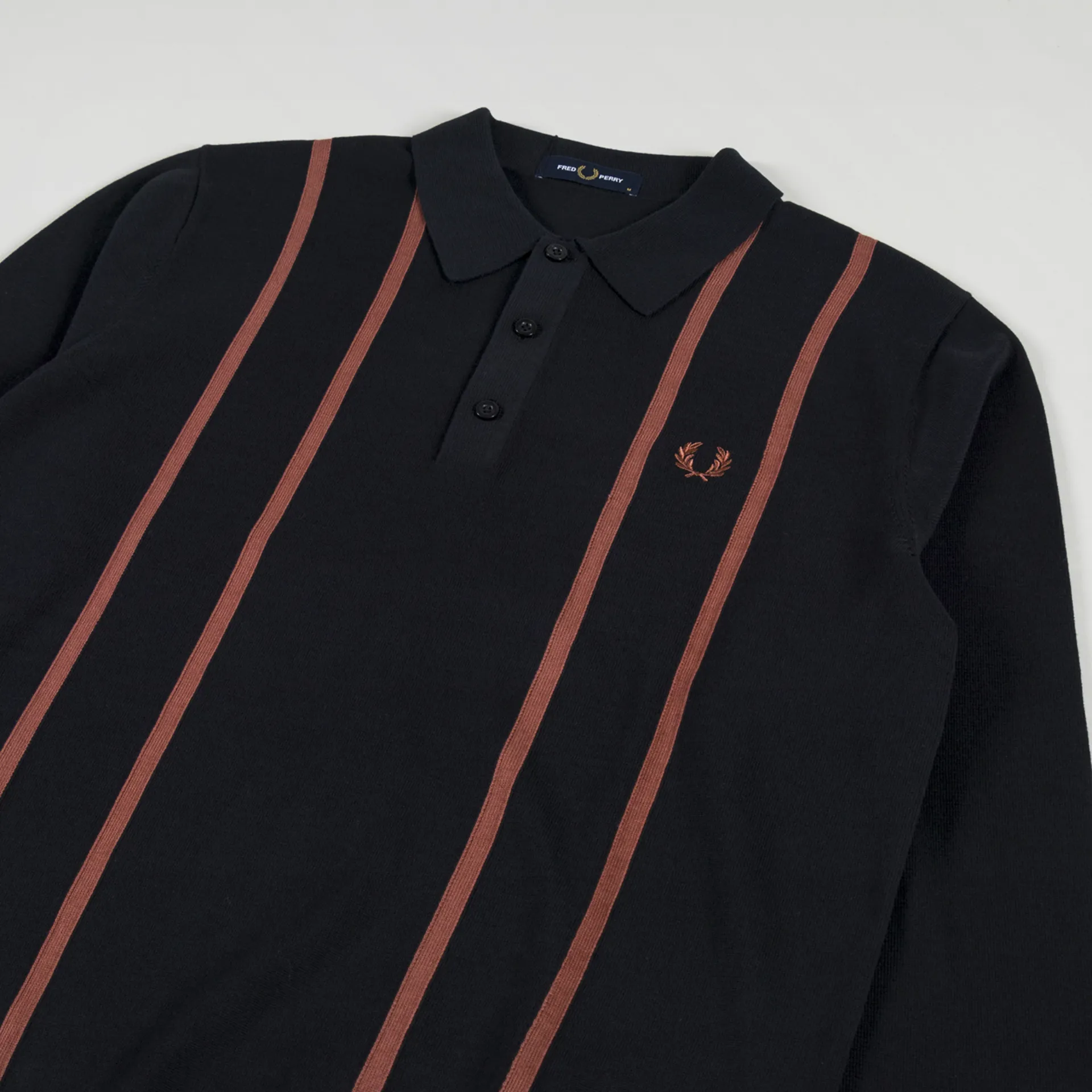 Fred Perry Vertical Stripe Knitted Shirt Black
