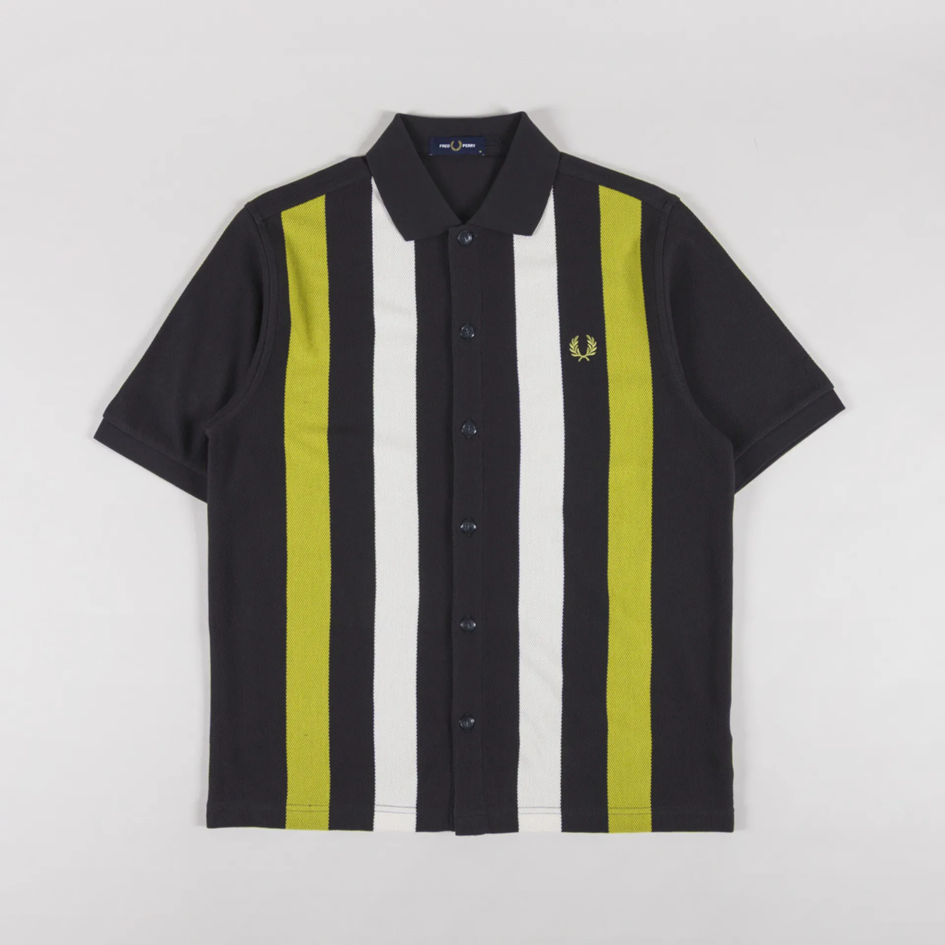 A classic polo from Fred Perry, cut in a relaxed fit for a casual silhouette and constructed from durable cotton with an all-over, vertical striped design. It features a full button-through front, leading to a classic collar, with a straight hem and iconic Laurel Wreath logo at the chest to finish.