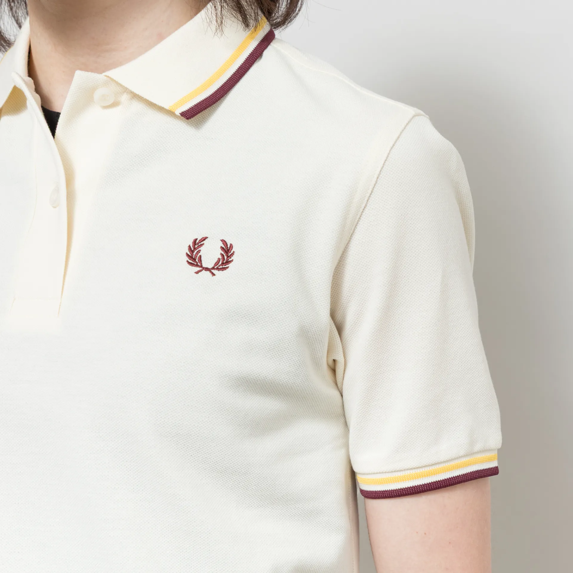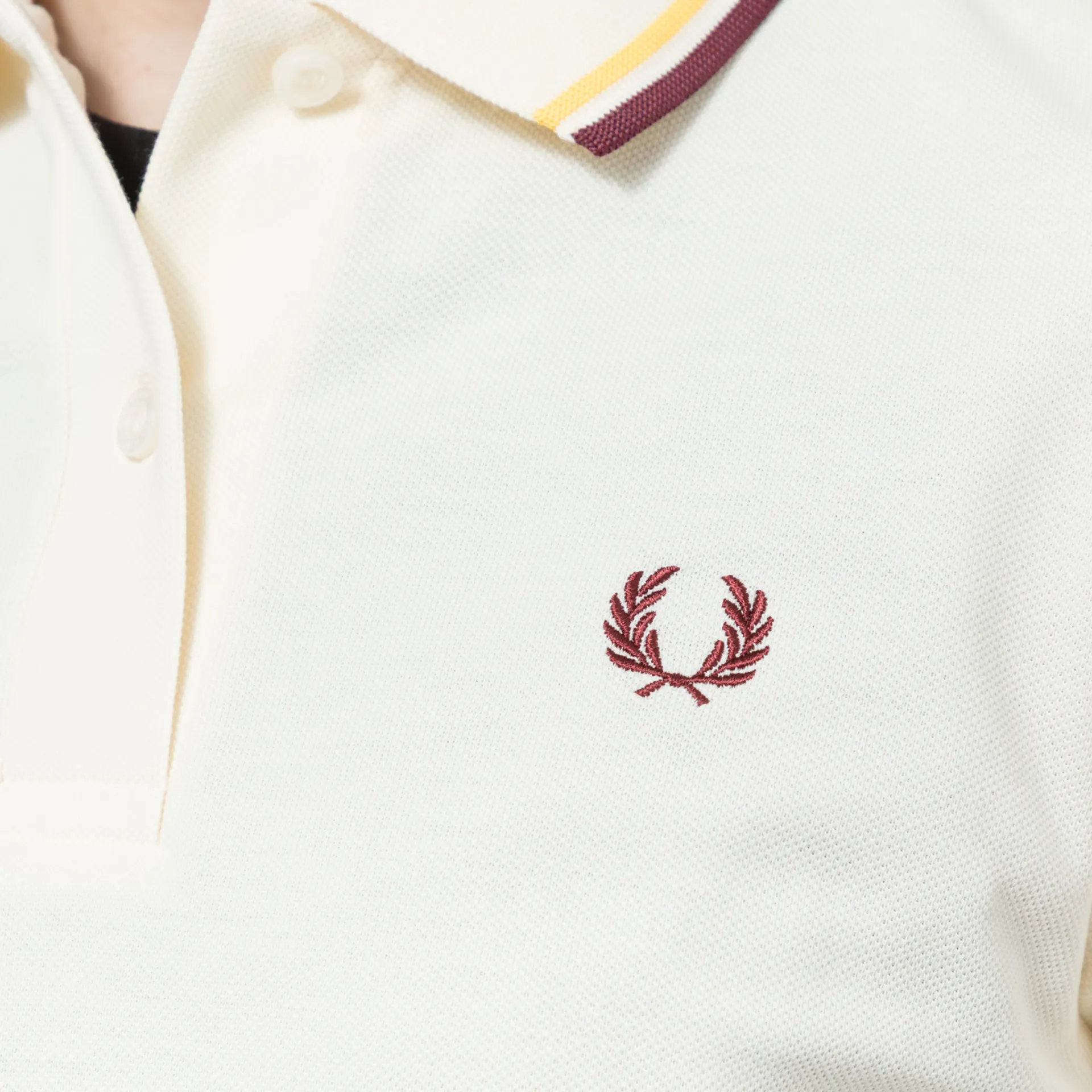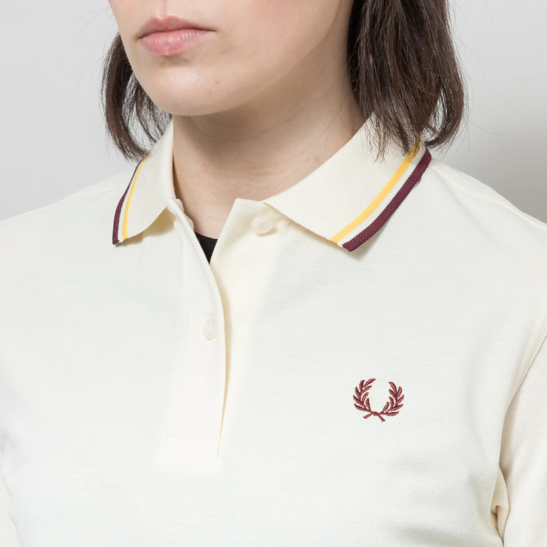 Fred Perry Womens G3600 Twin Tipped Polo Shirt Ecru Lemon Barley Oxblood