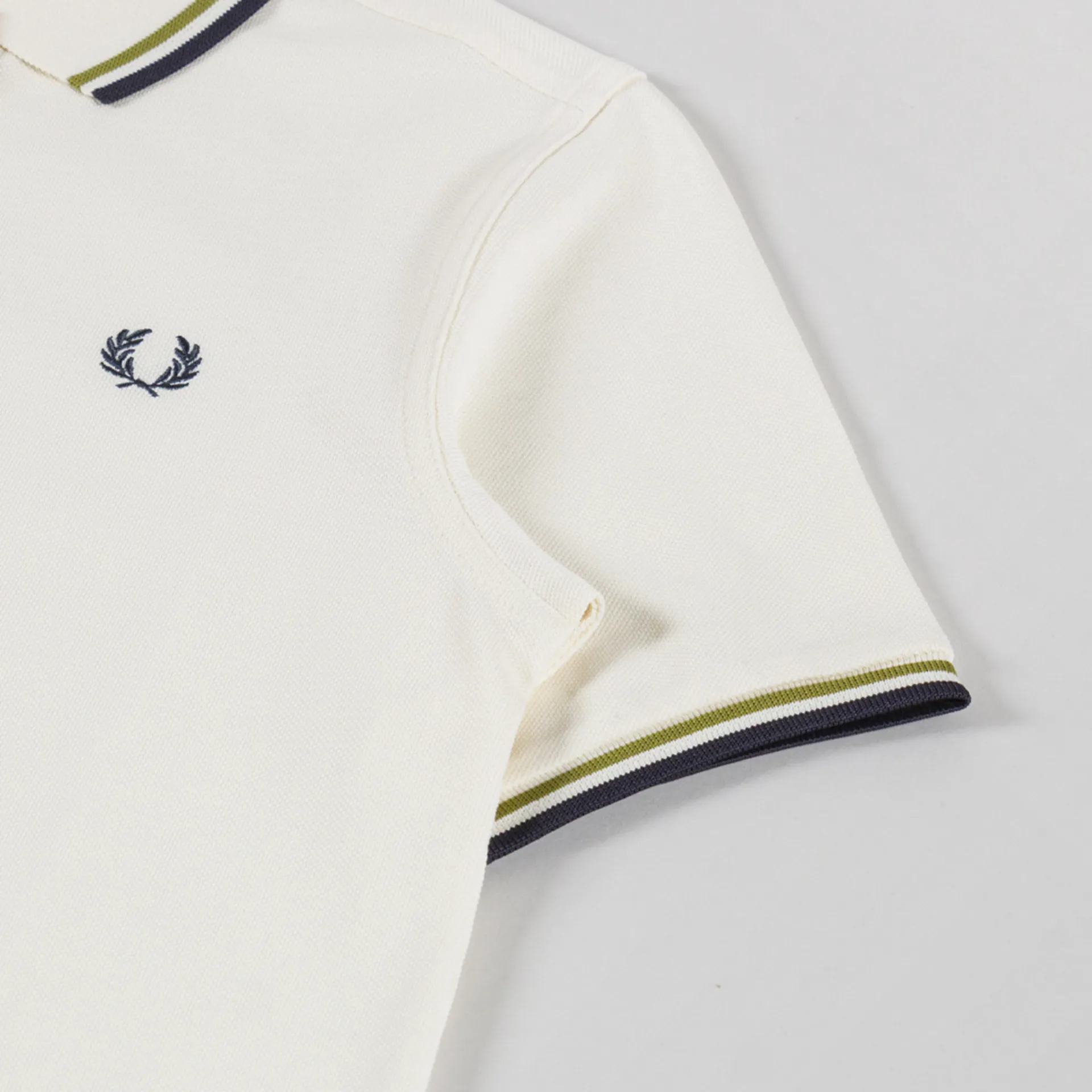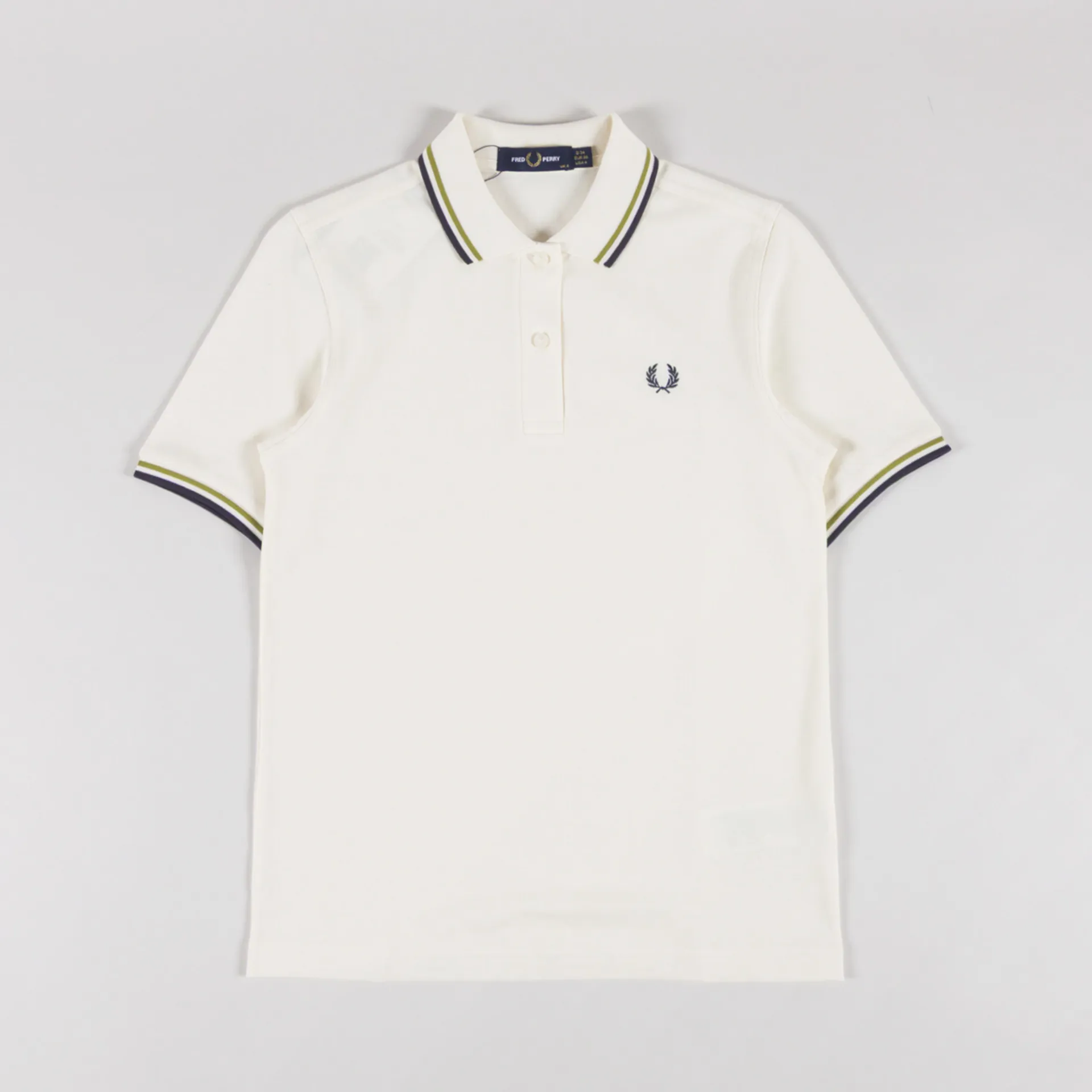 Fred Perry Womens Twin Tipped Polo Shirt Ecru Tennis Ball Yellow Anchor Grey