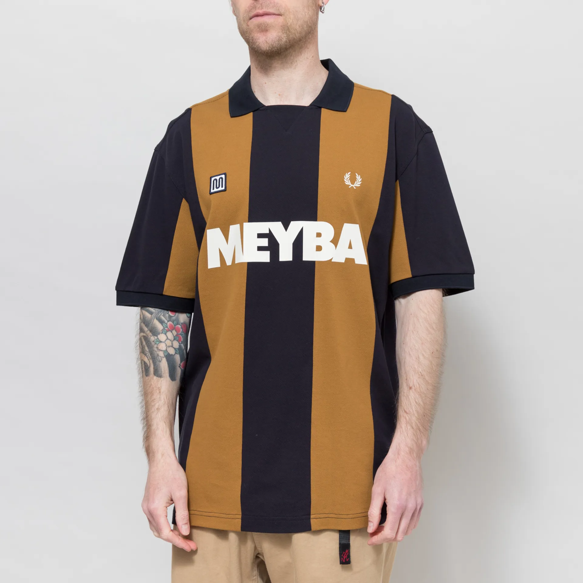 This polo shirt from the collaboration of Fred Perry and MEYBA has been cut in a relaxed fit for a casual silhouette, constructed from durable 100% cotton pique with an all-over striped design. It features a self-fabric collar, rib detailing at the sleeves, a large MEYBA print across the chest and embroidered logos on either side to finish.
