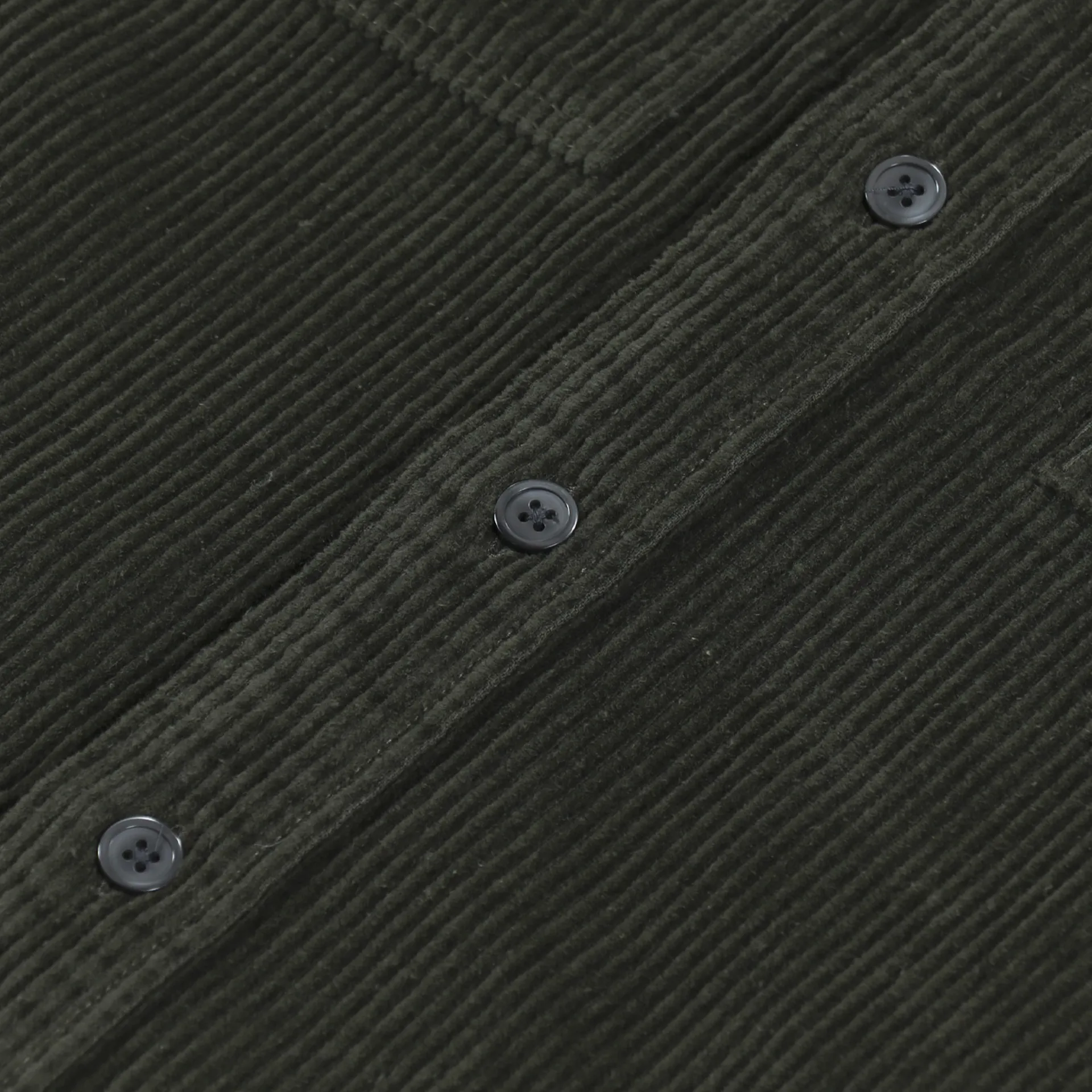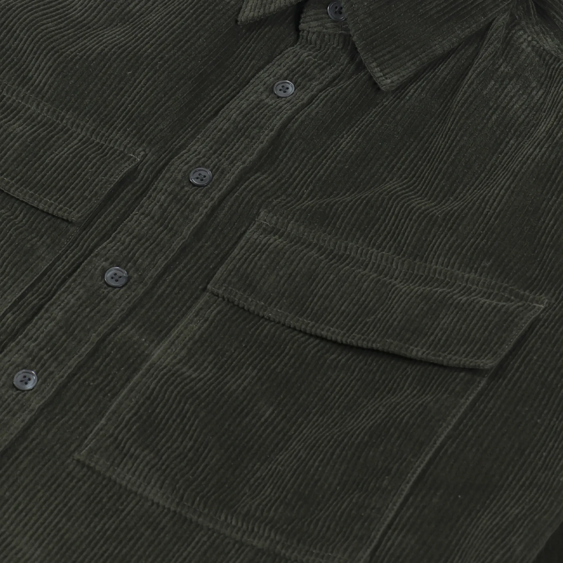 A long sleeve overshirt from FrizmWORKS made from a comfortable corduroy fabric of 100% cotton with a buttoned front and cuffs and two patch chest pocket.