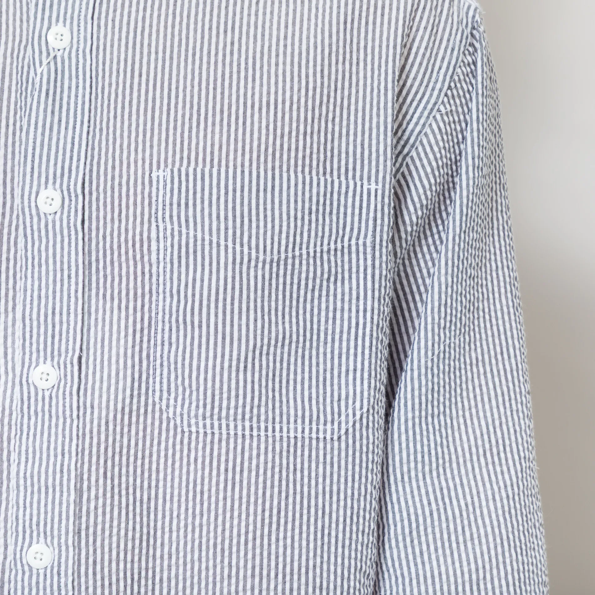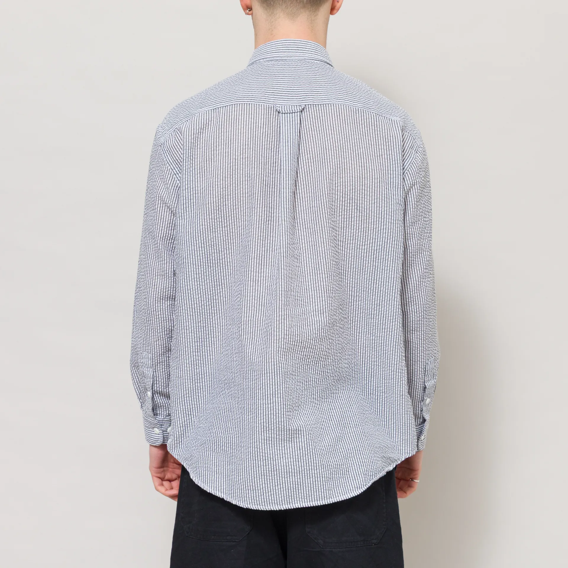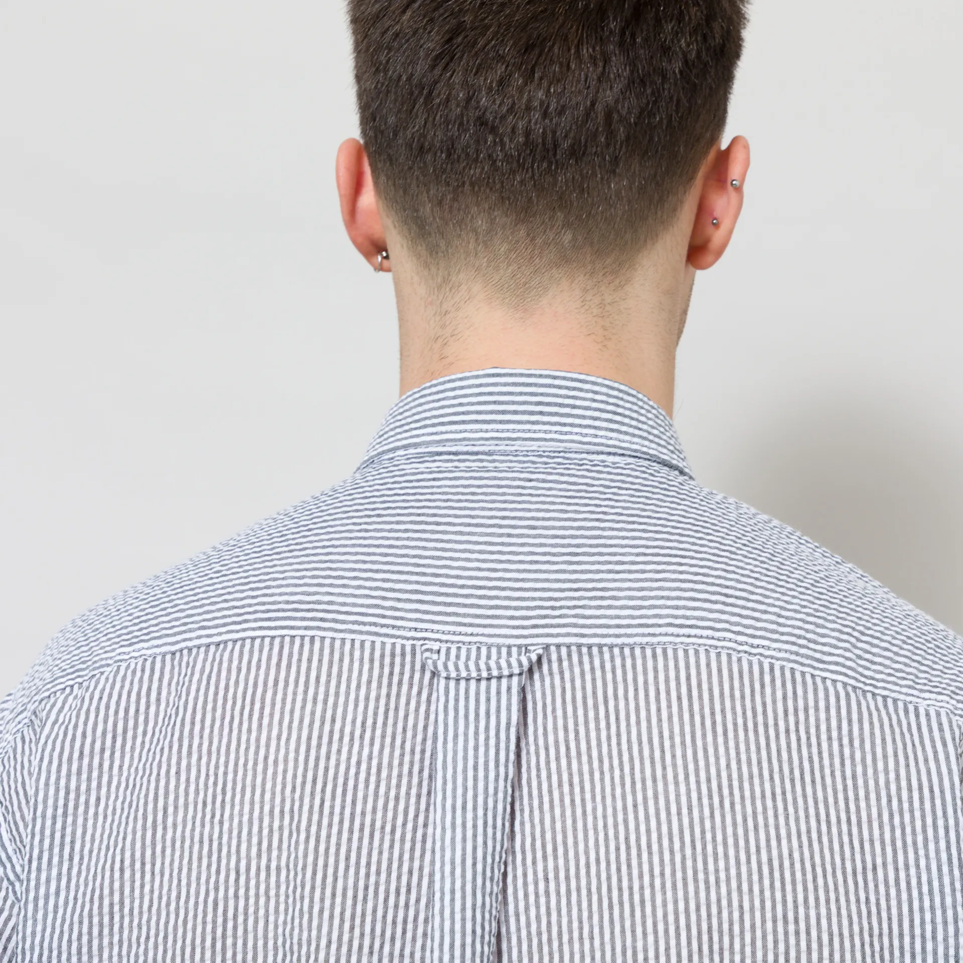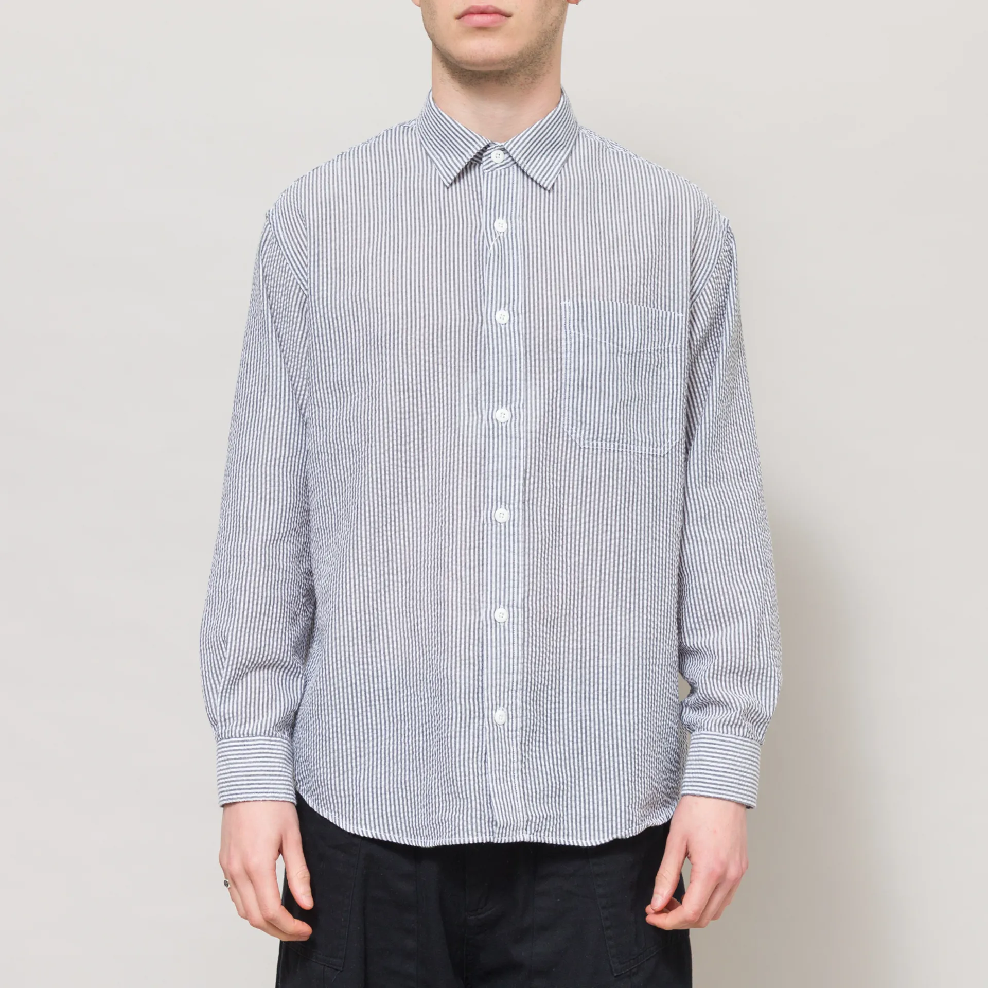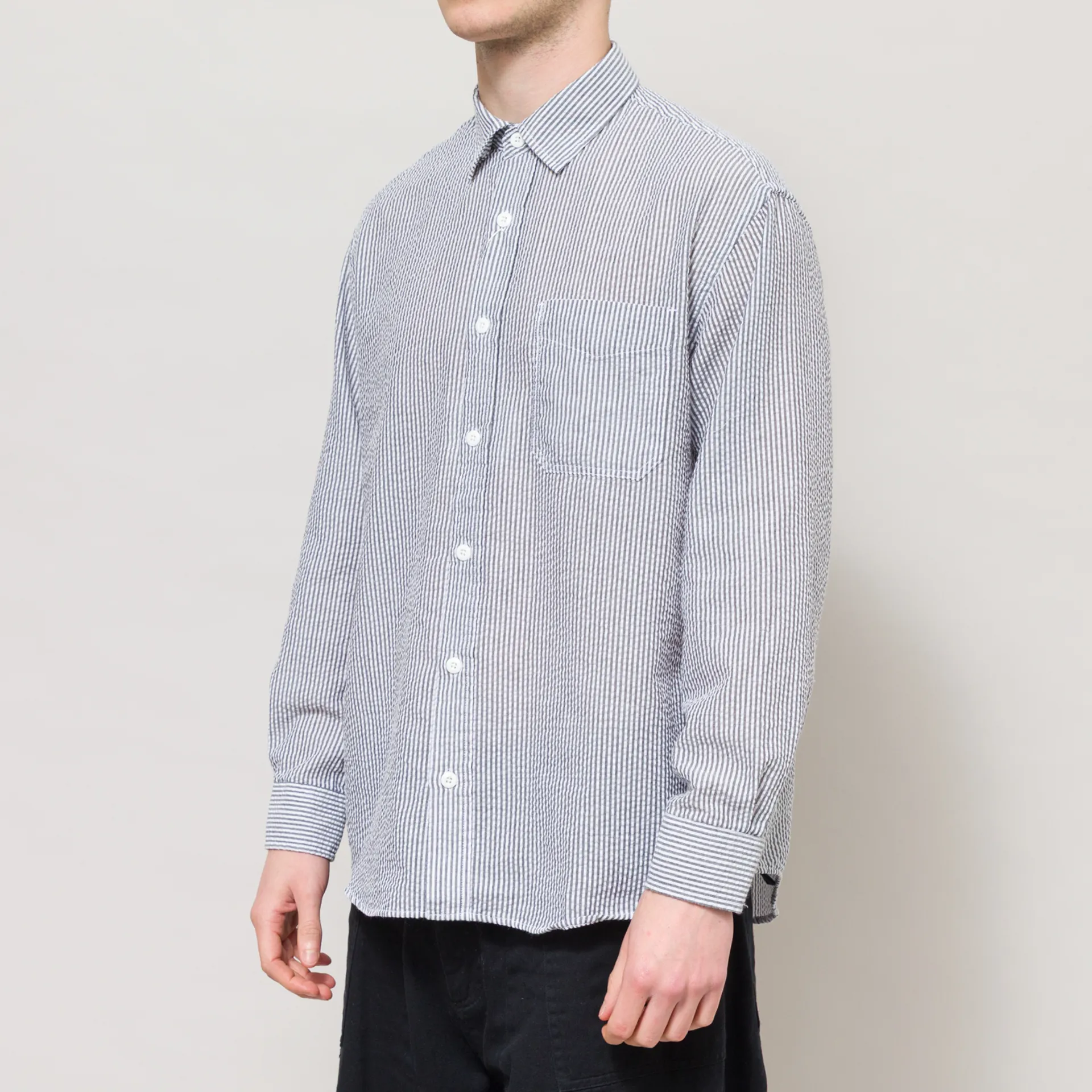 A long-sleeve shirt from Frizmworks, cut in a regular fit for everyday comfort and constructed from a durable cotton/poly seersucker fabric with all-over stripes. It features a full button-through front, leading to a classic collar, with a curved hem and buttoned cuffs. The design is complete with a back box pleat for added structure and a single pocket at the chest.