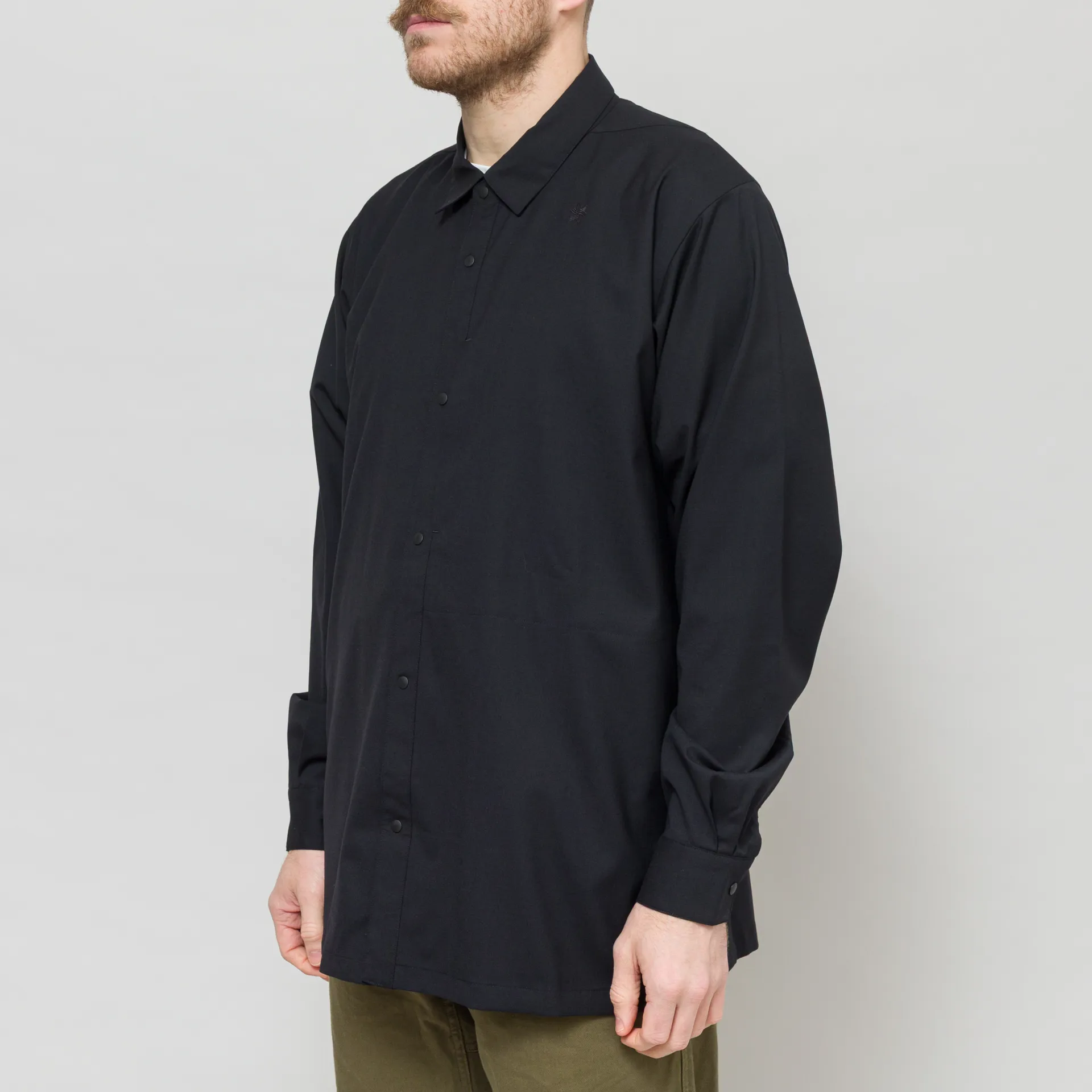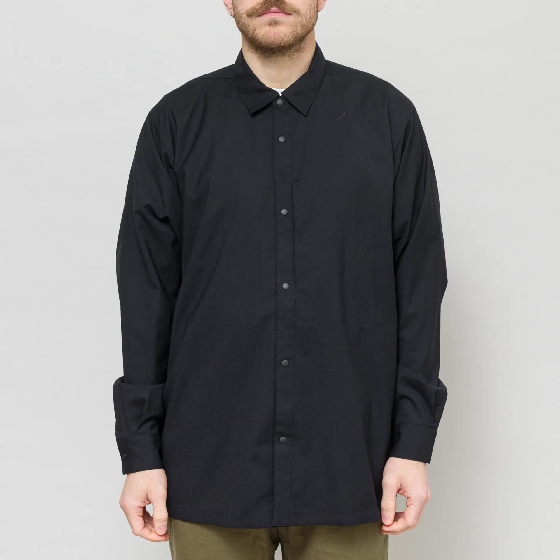 A long-sleeve technical shirt from Goldwin, constructed from a high-quality wool blend, with quick-drying properties, good heat retention and moisture control. It's cut in a relaxed fit for freedom of movement, with a button-through front, a classic collar, buttoned cuffs and a curved hem. The design is complete with a tonal embroidered logo to the chest.
