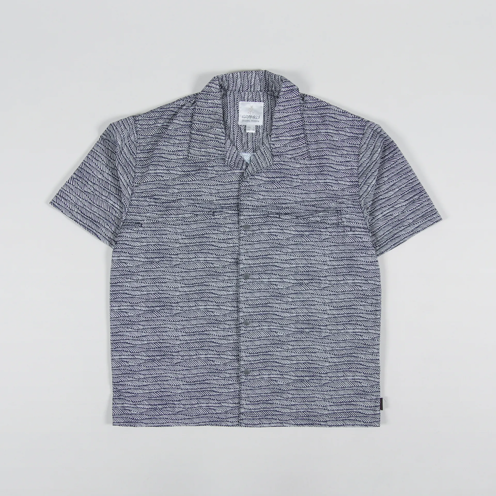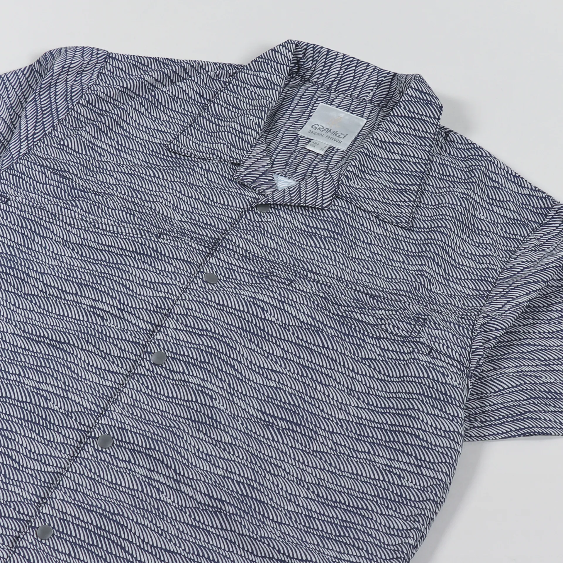 A short sleeve shirt from Gramicci's Gone Fishing collection, made from a lightweight and packable nylon weave with a snap-up front, camp collar, and patch pockets to the chest.