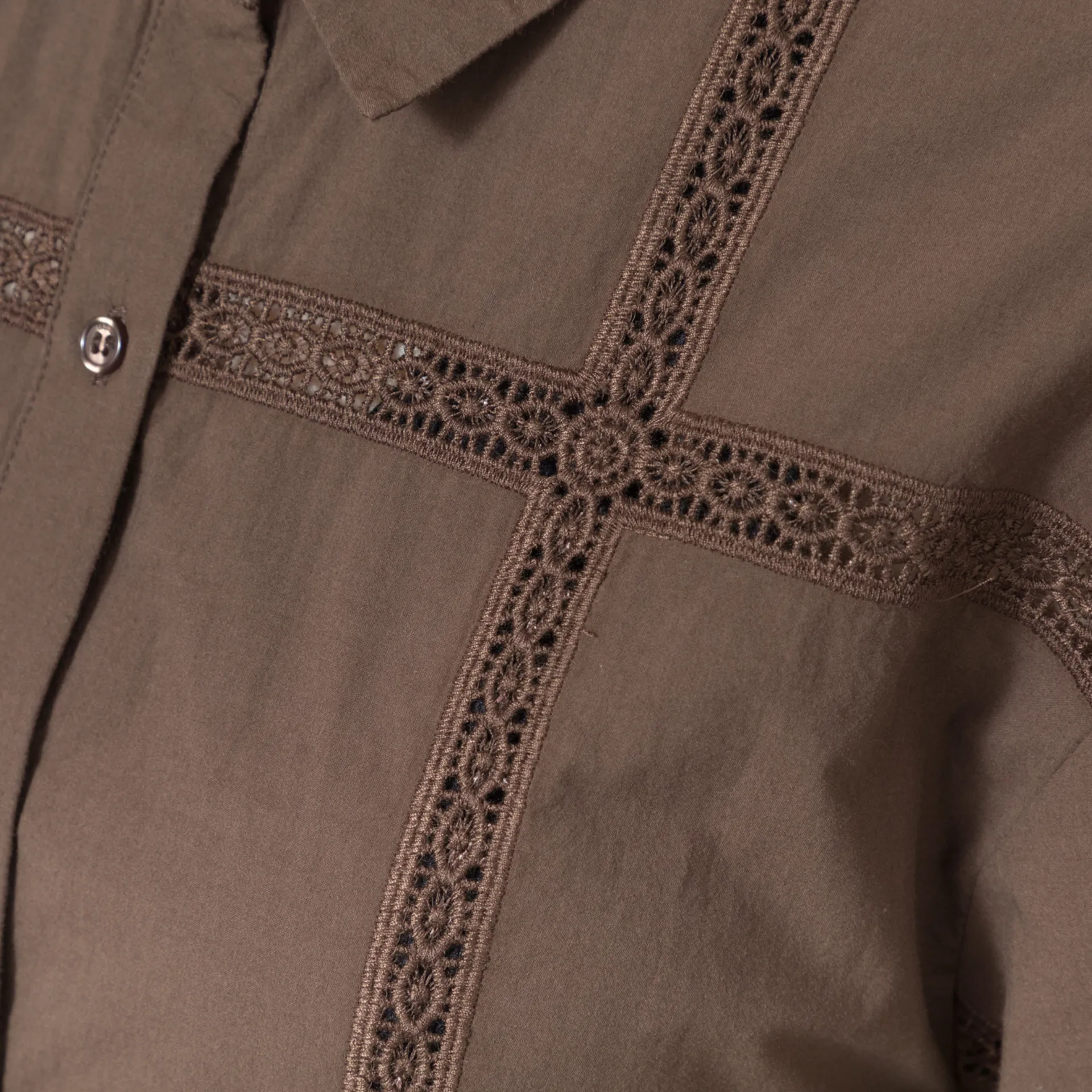 Indi and Cold Womens Lace Poplin Shirt Chocolate