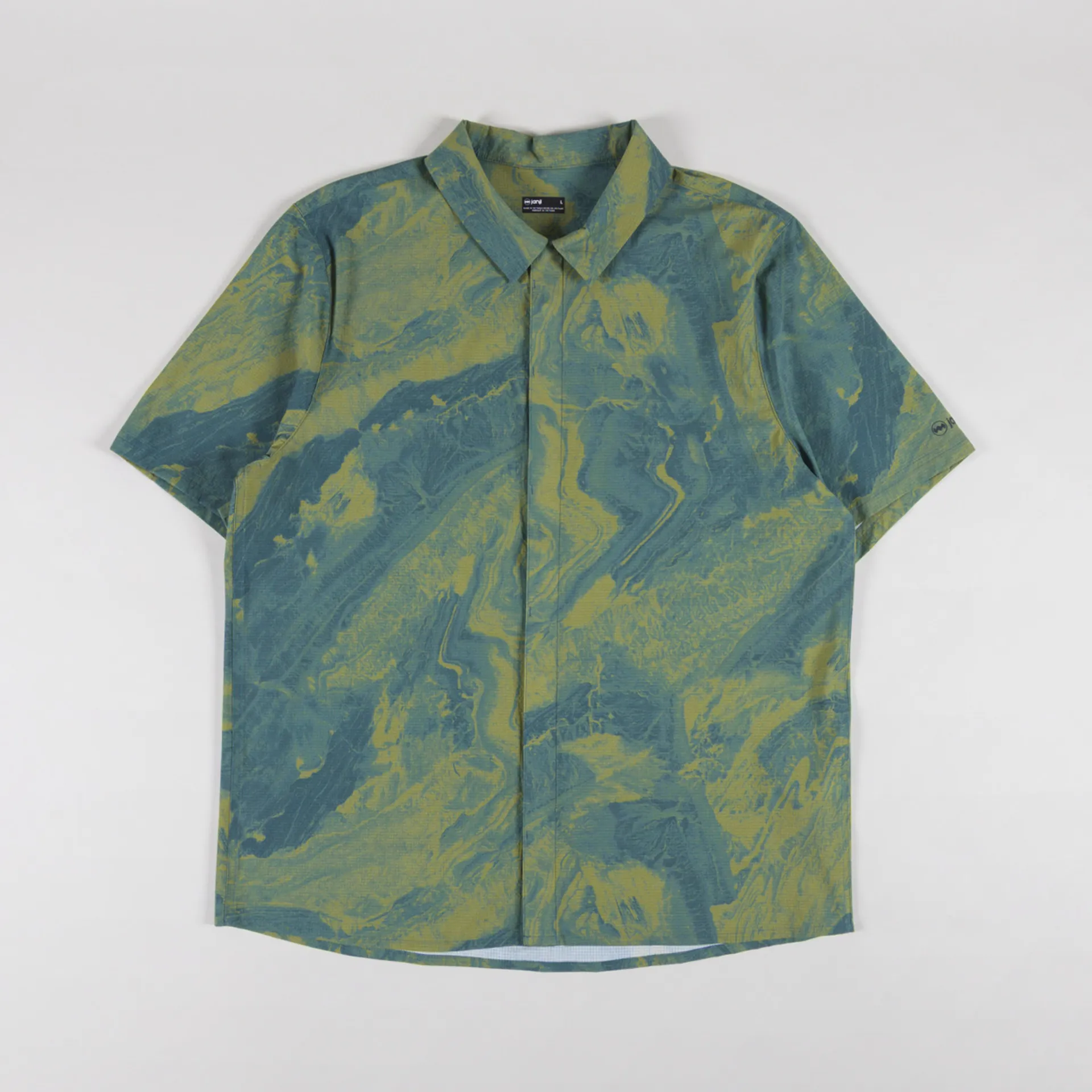 A lightweight shirt from Janji, constructed from quick-drying, breathable stretch fabric with an all-over print. It's cut in a relaxed fit for everyday comfort and features a hidden snap-button placket, a classic collar and a slightly curved hem. The design is complete with a Jani logo to the sleeve.