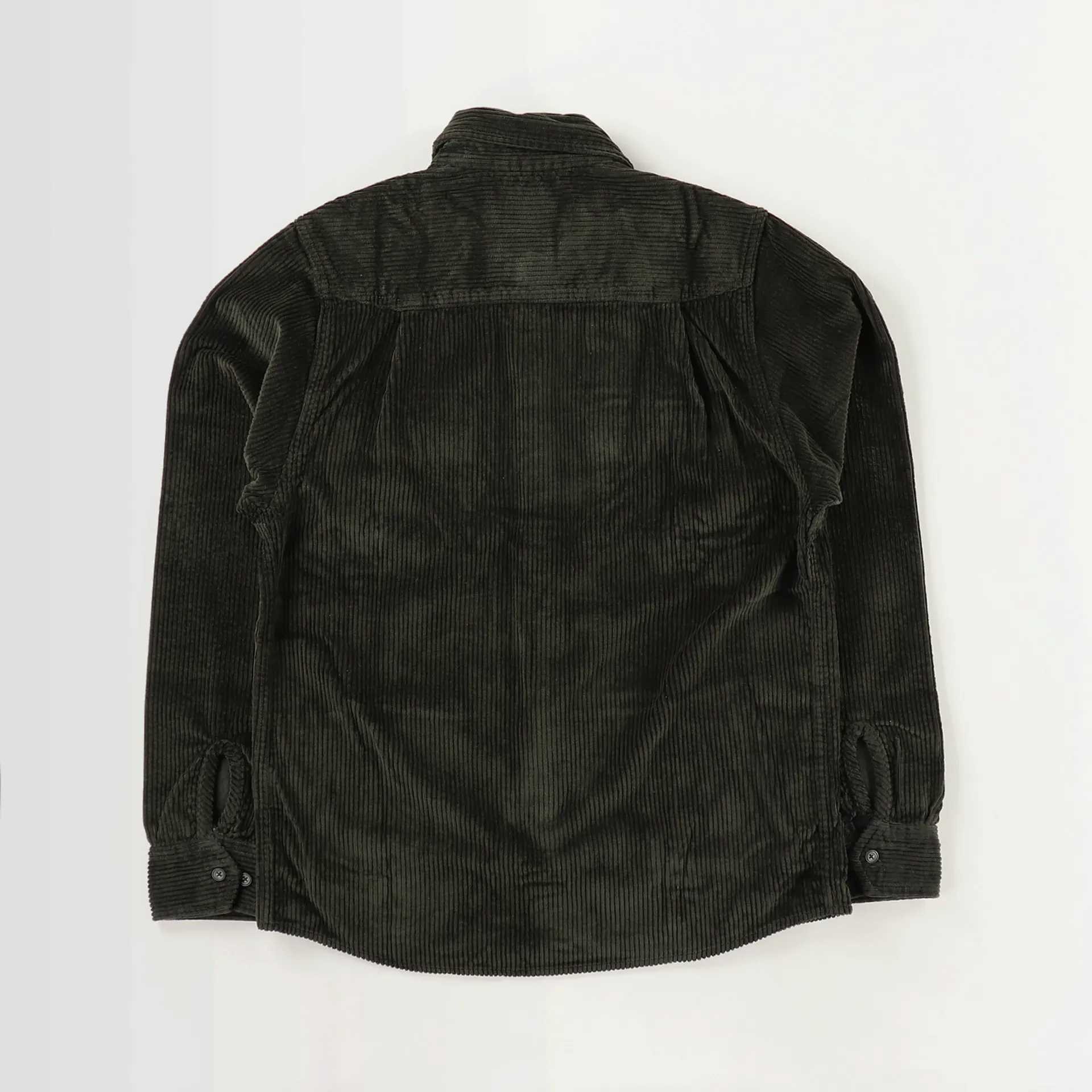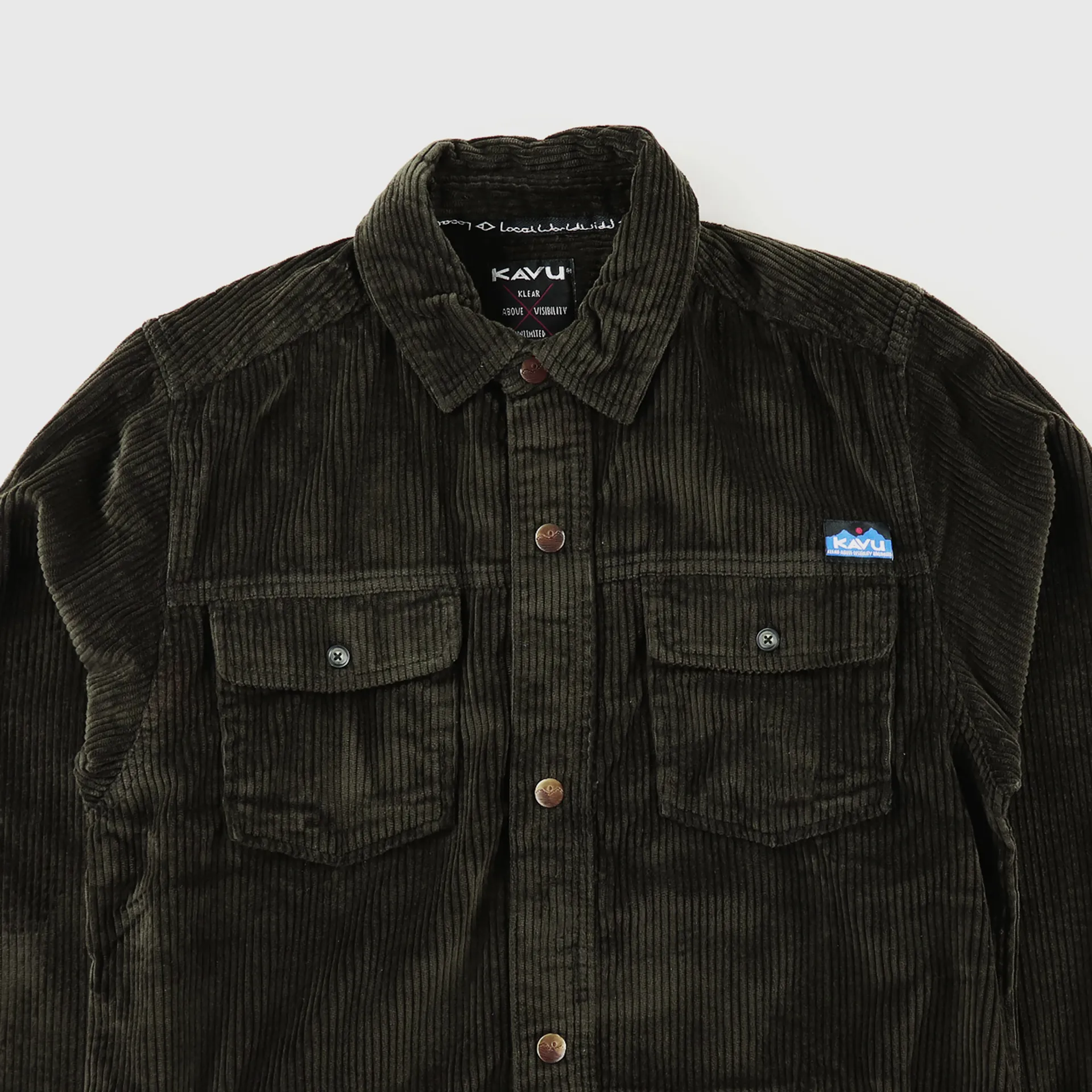 A long sleeve overshirt from Seattle's Kavu made from a super comfortable 100% cotton in a thick wale corduroy for casual outerwear vibes. The shirt hasa  sbnap-up front with embossed buttons and button-up cuffs. It has two patch chest pockets and open handwarmer pockets which are made from a smooth and soft fabric. The shirt has a woven logo patch to the chest.